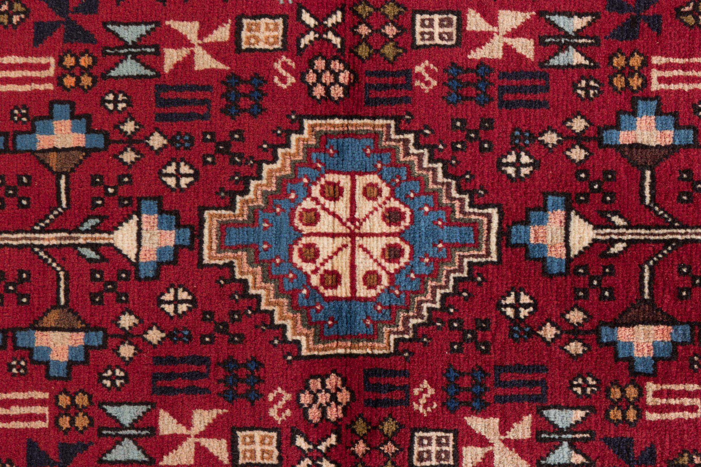 Dette Ghaschghai tiltrekker seg oppmerksomhet. Fargene og mønstrene gjenspeiler livet til Ghaschghai-Nomadene , disse levde hovedsaklig i byen Schiras. La et stykke iransk kultur gi liv i dine egne fire vegger og la deg bli fasinert av den flotte kvaliteten.