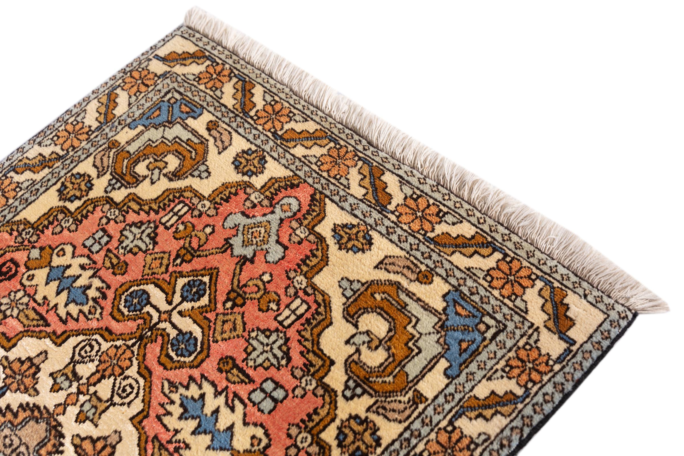 Teppenummer: 29789900133 Størrelse: 101x66 cm Tykkelse: ca. 10 mm Knuter: 128 000 - 160 000 / m² Bearbeiding: Knyttet for hånd Søm: Ull med silke Kjede: Bomull Opprinnelse: Persia / Iran Alder: Nytt Vekt: ca. 2 kg Antall på lager: Unikt - Kun 1 stk i lager