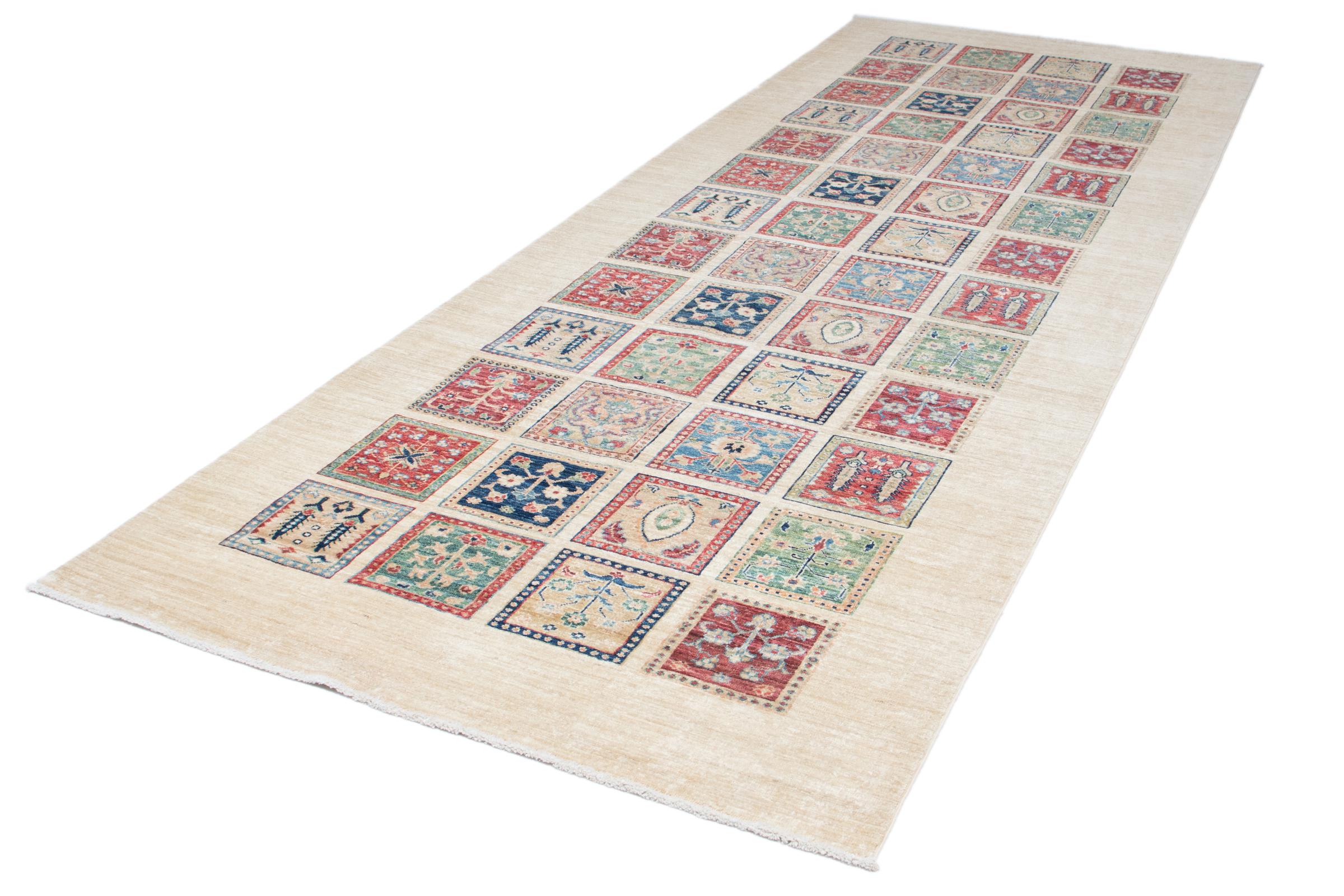 Dette Arijana Bakhtiari teppet henter naturen inn i ditt hus. Hagedesign og de flotteste materialer begeistrer fra første sekund. Håndknyttet kvalitet fra Pakistan som du vil elske når du holder det i hånden.