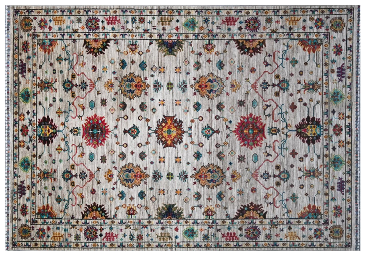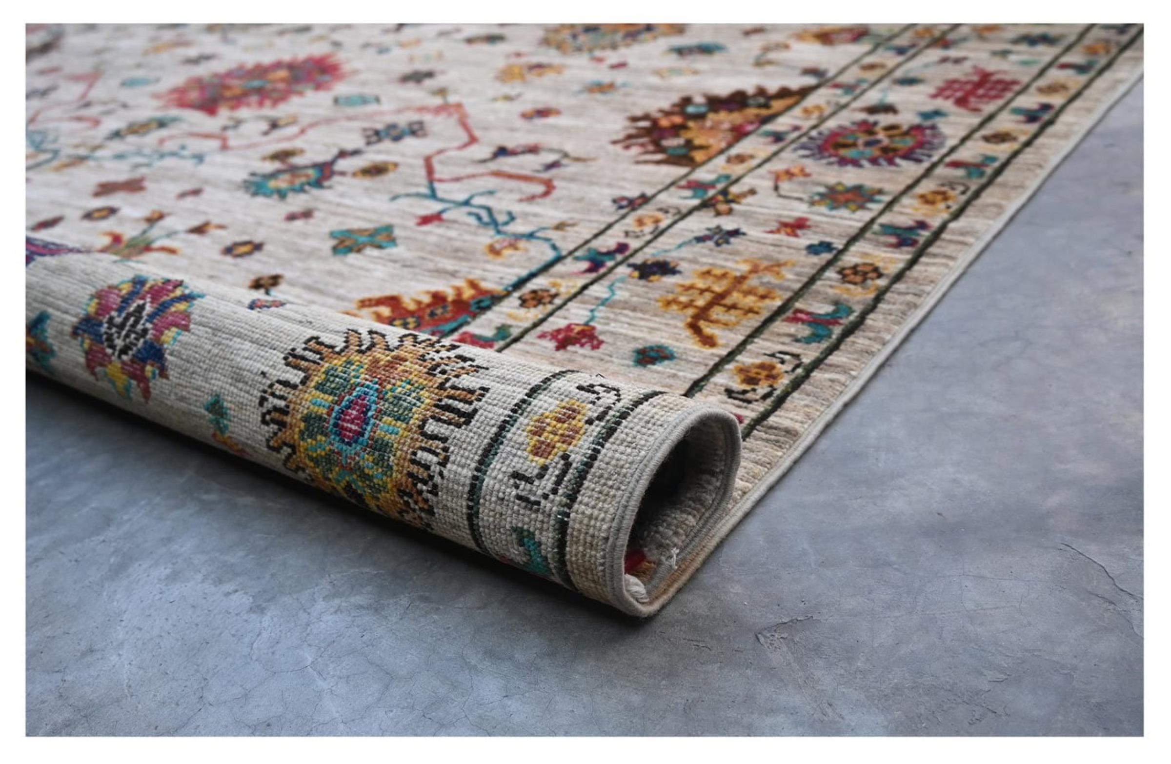 Dette teppet består av håndspunnet saueull av høyeste kvalitet. Spesielt i Iran (tidligere Persia), Afghanistan og Pakistan blir ull spunnet for hånd før teppet faktisk er knyttet. Ull har bevist seg som et naturlig og ekstremt slitesterkt materiale gjennom århundrer. Blant annet har den smussavvisende og varmeisolerende egenskaper. Samtidig er ull uten sammenligning myk og fører med seg en naturlig glans.