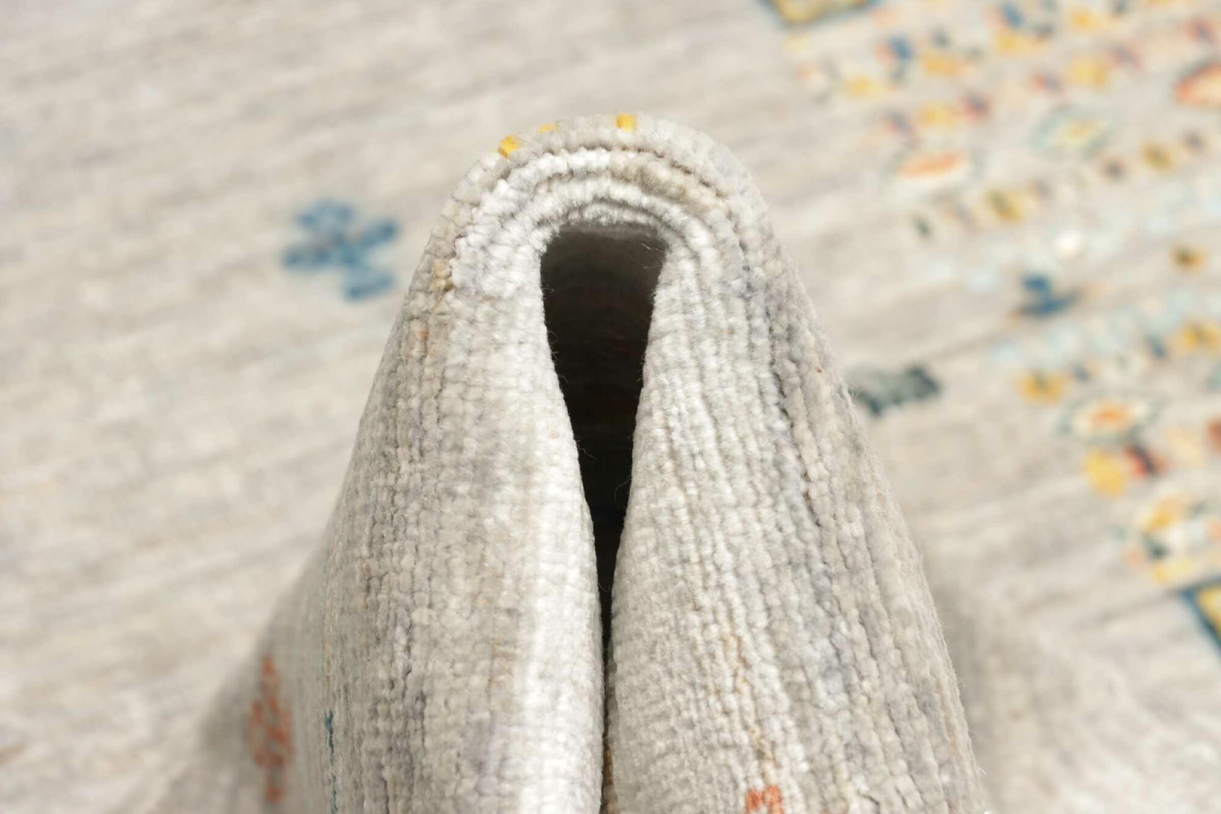 Dette teppet består av håndspunnet saueull av høyeste kvalitet. Spesielt i Iran (tidligere Persia), Afghanistan og Pakistan blir ull spunnet for hånd før teppet faktisk er knyttet. Ull har bevist seg som et naturlig og ekstremt slitesterkt materiale gjennom århundrer. Blant annet har den smussavvisende og varmeisolerende egenskaper. Samtidig er ull uten sammenligning myk og fører med seg en naturlig glans.