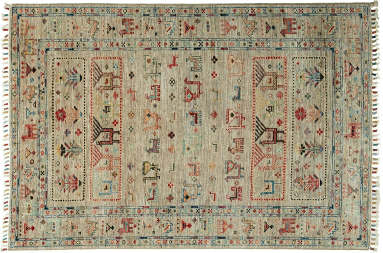 Dette teppet består av håndspunnet saueull av høyeste kvalitet. Spesielt i Iran (tidligere Persia), Afghanistan og Pakistan blir ull spunnet for hånd før teppet faktisk er knyttet. Ull har bevist seg som et naturlig og ekstremt slitesterkt materiale gjennom århundrer. Blant annet har den smussavvisende og varmeisolerende egenskaper. Samtidig er ull uten sammenligning myk og fører med seg en naturlig glans.