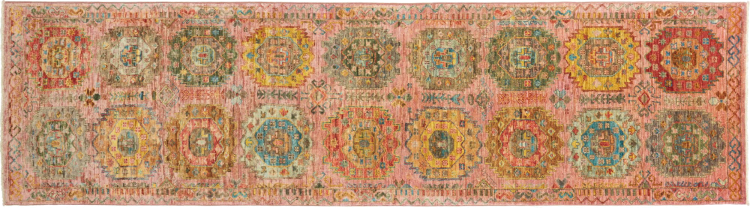Teppenummer: 248184001716223 Størrelse: 286x77 cm Tykkelse: ca. 5 mm Knuter: 128 000 - 160 000 / m² Bearbeiding: Knyttet for hånd Søm: Håndspunnet Ull Kjede: Bomull Opprinnelse: Pakistan Alder: Nytt Vekt: ca. 8 kg Antall på lager: Unikt - Kun 1 stk i lager