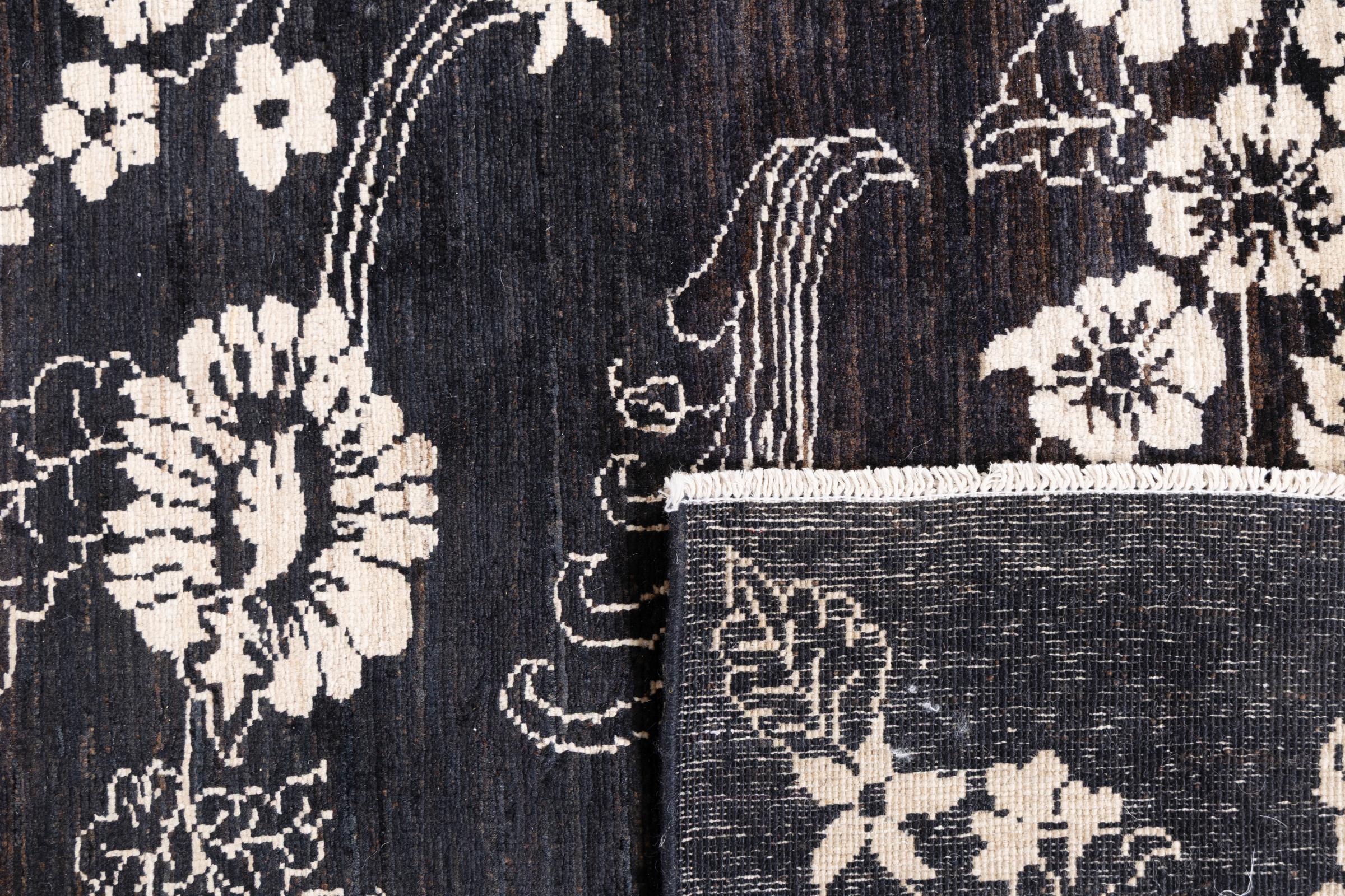 Dette teppet består av håndspunnet saueull av høyeste kvalitet. Spesielt i Iran (tidligere Persia), Afghanistan og Pakistan blir ull spunnet for hånd før teppet faktisk er knyttet. Ull har bevist seg som et naturlig og ekstremt slitesterkt materiale gjennom århundrer. Blant annet har den smussavvisende og varmeisolerende egenskaper. Samtidig er ull uten sammenligning myk og fører med seg en naturlig glans.
