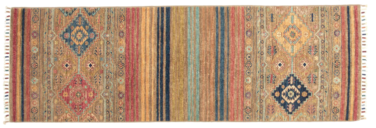 Teppenummer: 28658300819114 Størrelse: 178x62 cm Tykkelse: ca. 5 mm Knuter: 128 000 - 160 000 / m² Bearbeiding: Knyttet for hånd Søm: Håndspunnet Ull Kjede: Bomull Opprinnelse: Pakistan Alder: Nytt Vekt: ca. 4 kg Antall på lager: Unikt - Kun 1 stk i lager