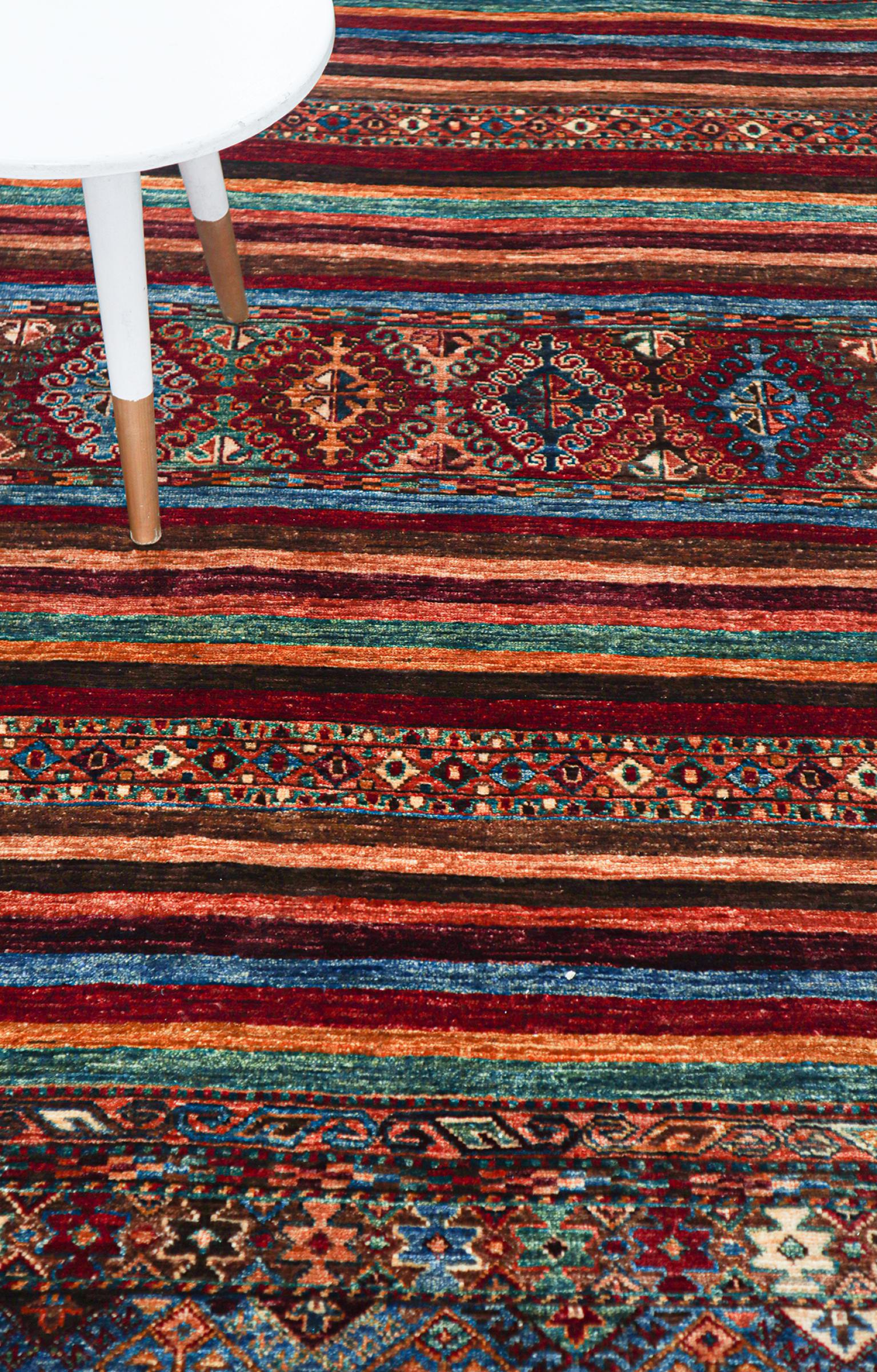 Dette Arijana Shaal teppet er laget av flotteste håndverkskunst i Paktistan. Det har høy kvalitet og lover mye glede. Det stripete mønsteret gir myer avveksling og er spennende. Det ble inspirert av Moharamati-Dessin. Om du synes monochrome tepper er for kjedelige, så blir du helt sikkert fornøyd med dette Arijana Shaal teppet.