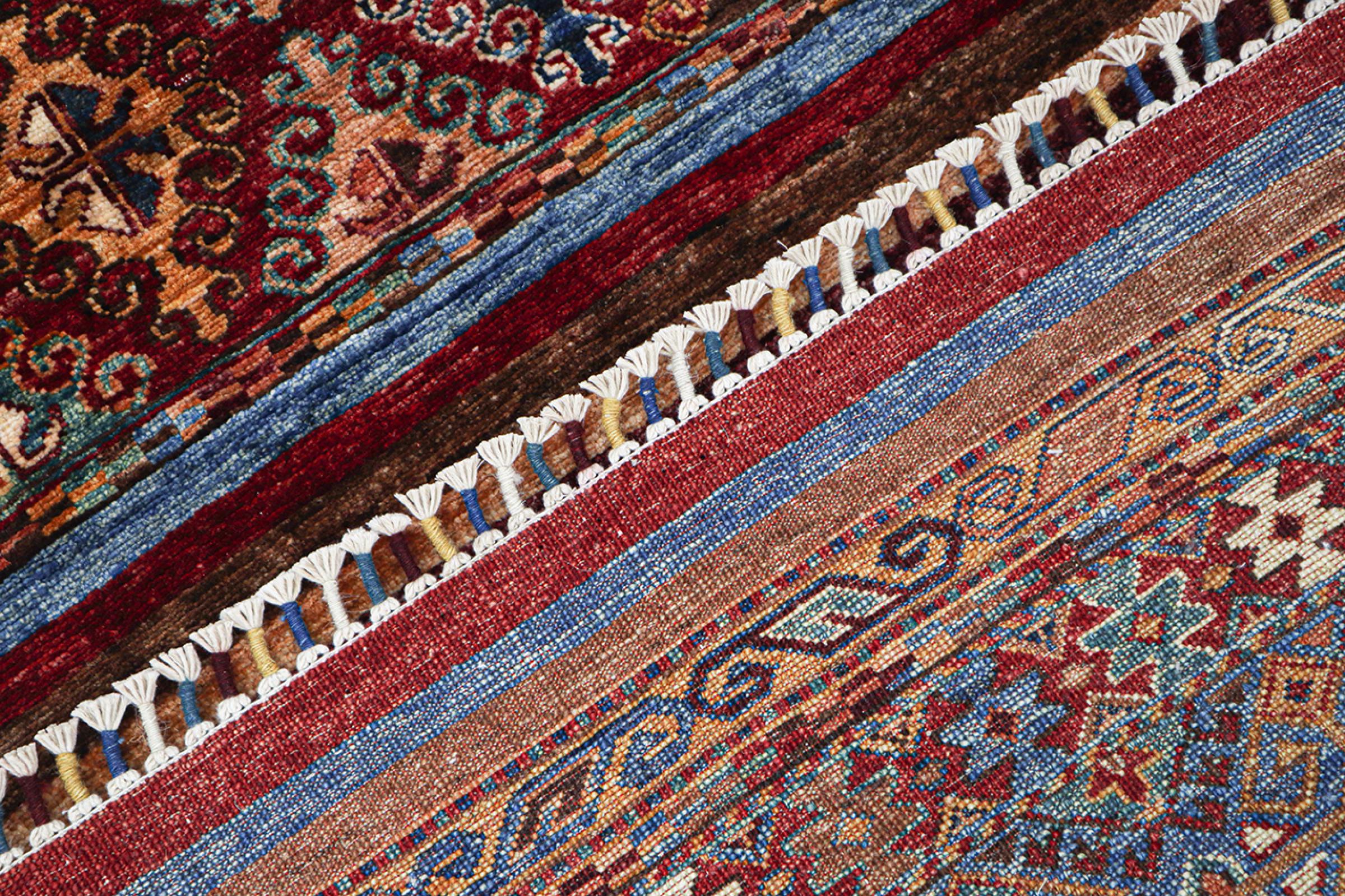 Dette teppet består av håndspunnet saueull av høyeste kvalitet. Spesielt i Iran (tidligere Persia), Afghanistan og Pakistan blir ull spunnet for hånd før teppet faktisk er knyttet. Ull har bevist seg som et naturlig og ekstremt slitesterkt materiale gjennom århundrer. Blant annet har den smussavvisende og varmeisolerende egenskaper. Samtidig er ull uten sammenligning myk og fører med seg en naturlig glans.