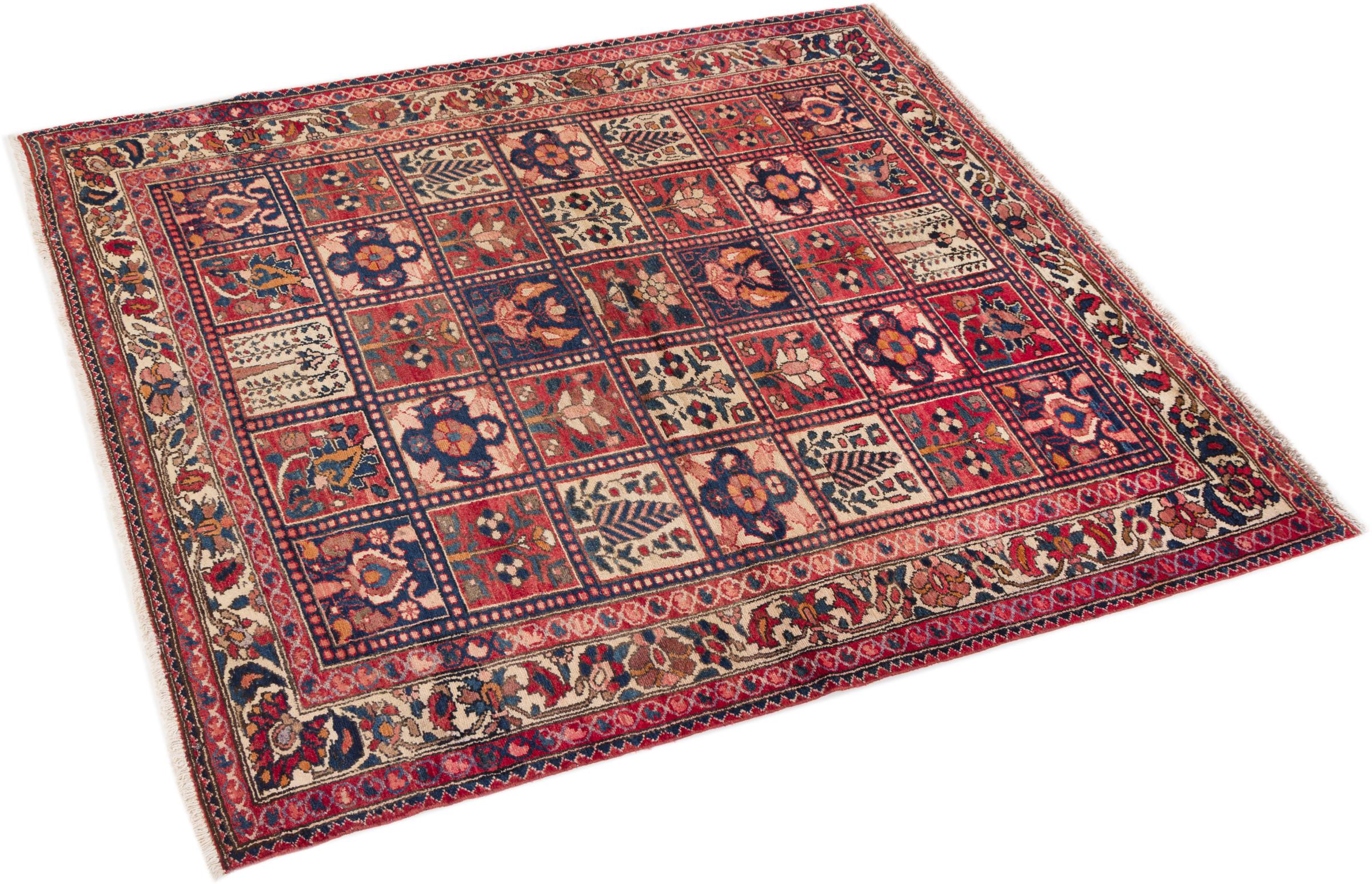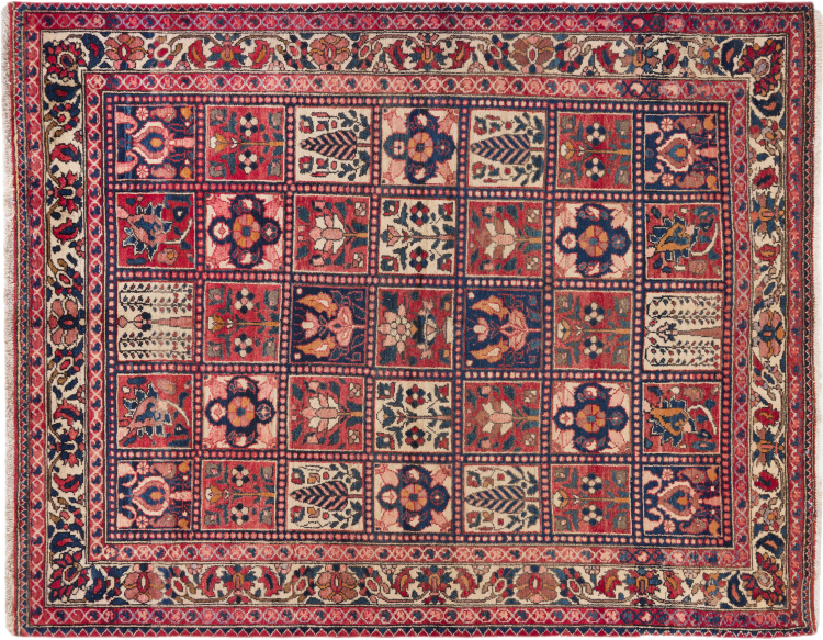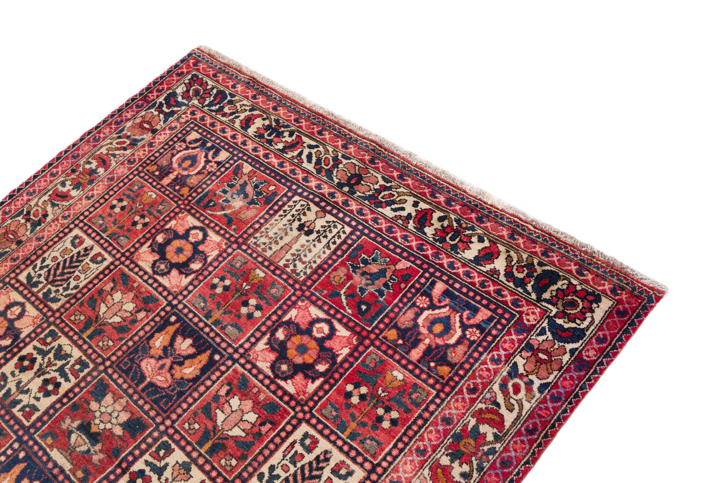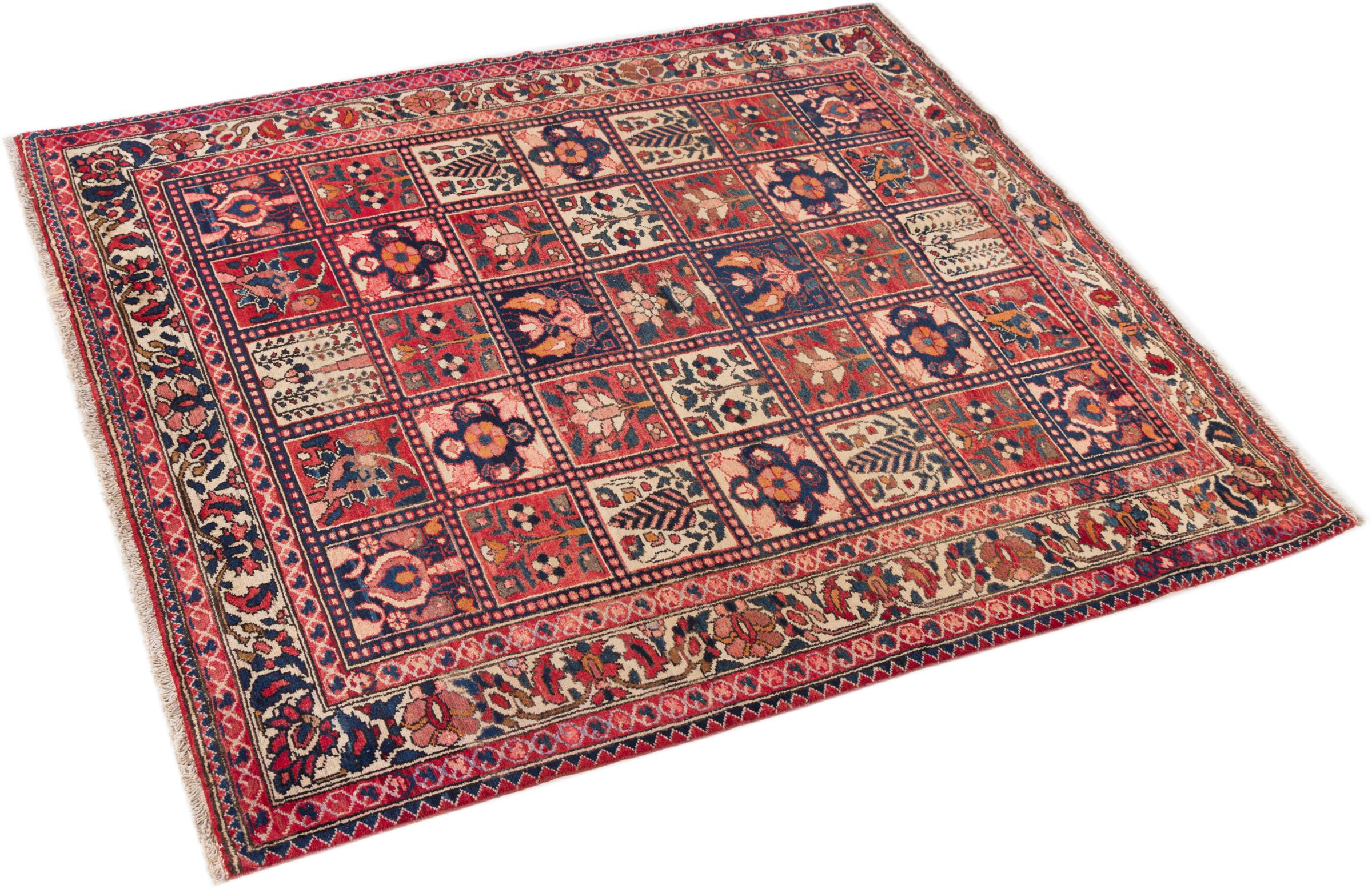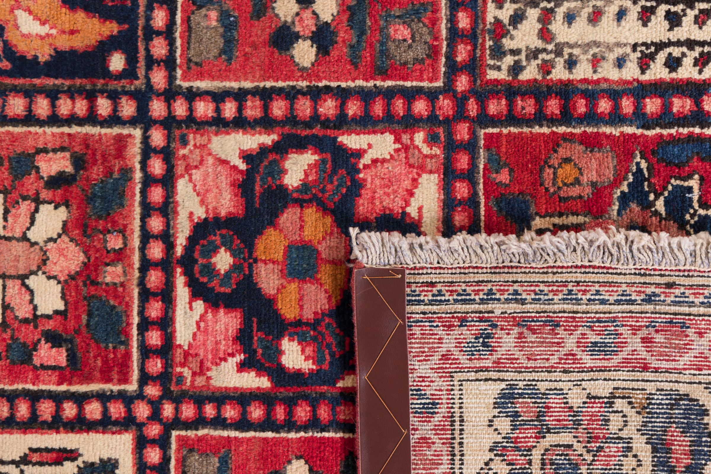 Denne persiske Bakhtiar ble håndknyttet av nomader fra Bakhtiari-stammen. Dette persiske teppet leker med fargene på Orienten i vakre mønstre. Utformingen av ornamentene er inspirert av persiske hager. Den såkalte tradisjonelle hagedesignen har blitt veldig populær i den vestlige verden gjennom årene. Den høye knutetettheten, i kombinasjon med det sterke garnet, lover langvarig glede av persisk teppekunst.