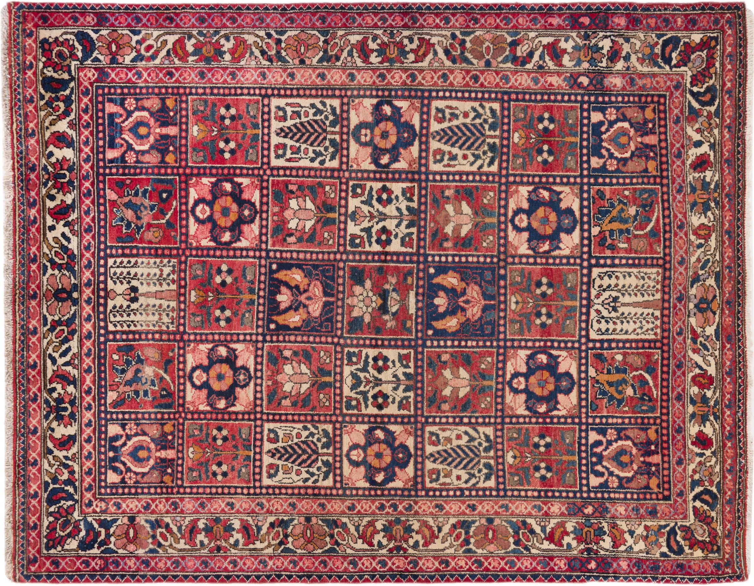 Teppenummer: 296110004046 Størrelse: 207x163 cm Tykkelse: ca. 12 mm Knuter: 200 000 - 250 000 / m² Bearbeiding: Knyttet for hånd Søm: Håndspunnet Ull Kjede: Bomull Opprinnelse: Persia / Iran Alder: Gammelt/halv-antikt, eldre enn 50 år Vekt: ca. 12 kg Også kjent som Baktjar Antall på lager: Unikt - Kun 1 stk i lager