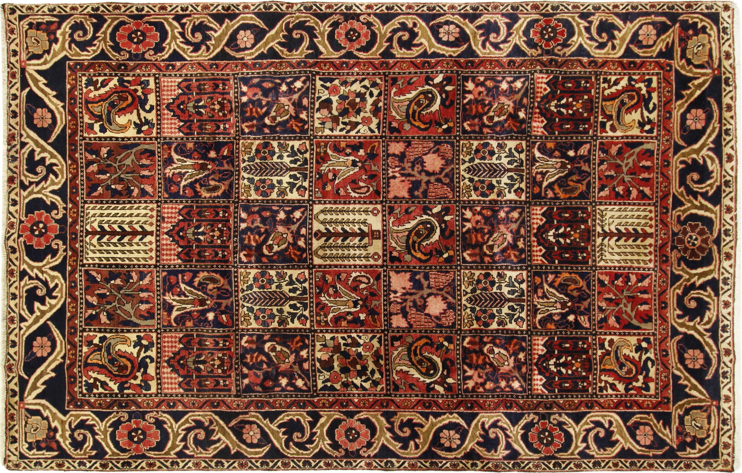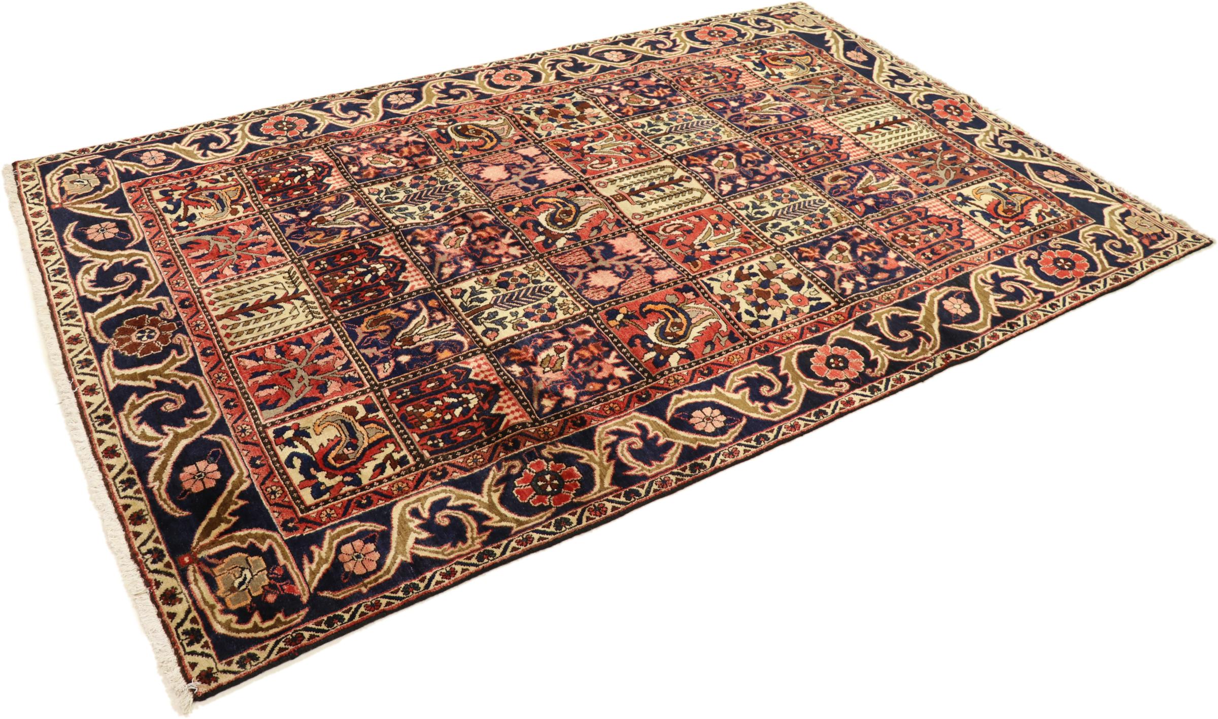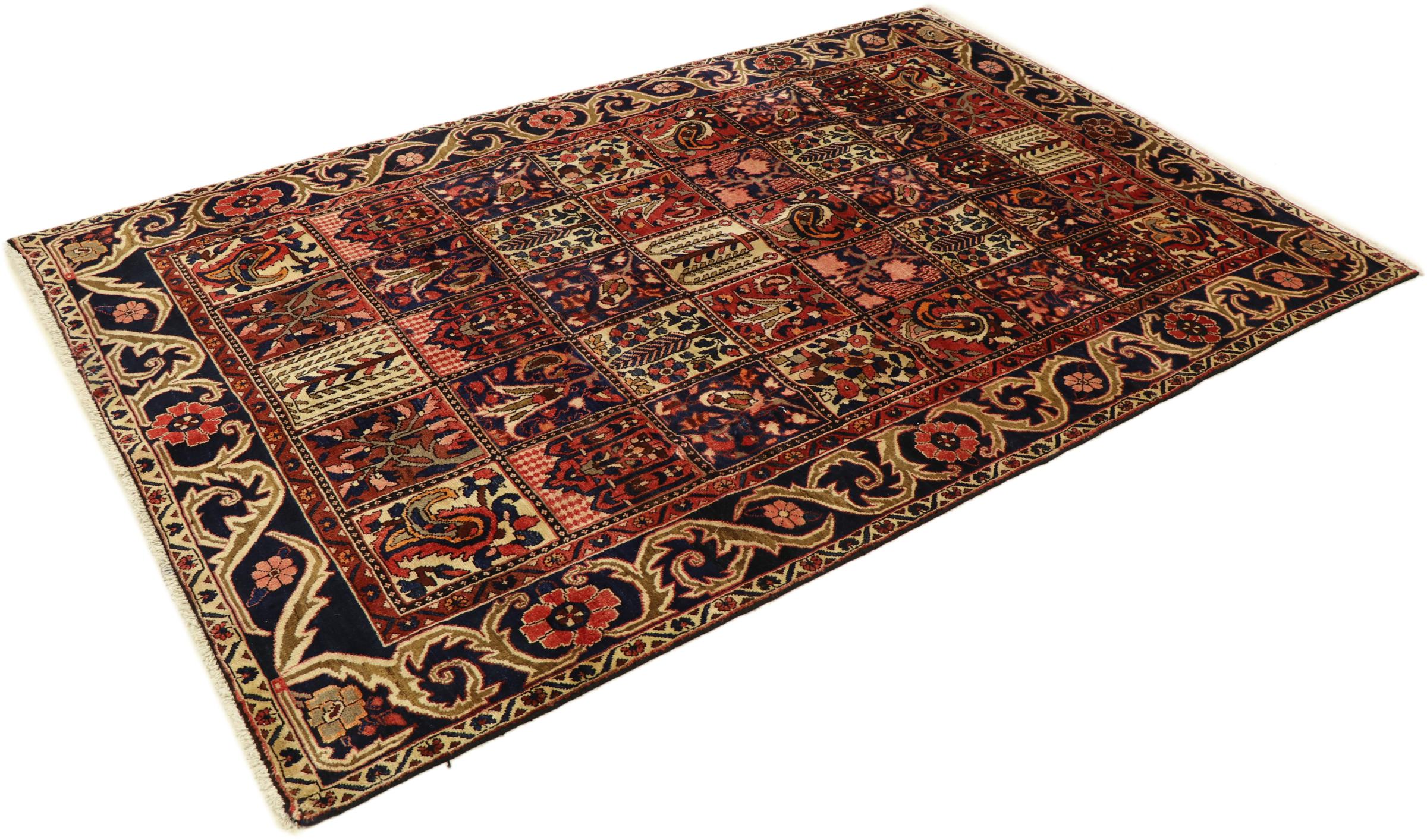 Denne persiske Bakhtiar ble håndknyttet av nomader fra Bakhtiari-stammen. Dette persiske teppet leker med fargene på Orienten i vakre mønstre. Utformingen av ornamentene er inspirert av persiske hager. Den såkalte tradisjonelle hagedesignen har blitt veldig populær i den vestlige verden gjennom årene. Den høye knutetettheten, i kombinasjon med det sterke garnet, lover langvarig glede av persisk teppekunst.