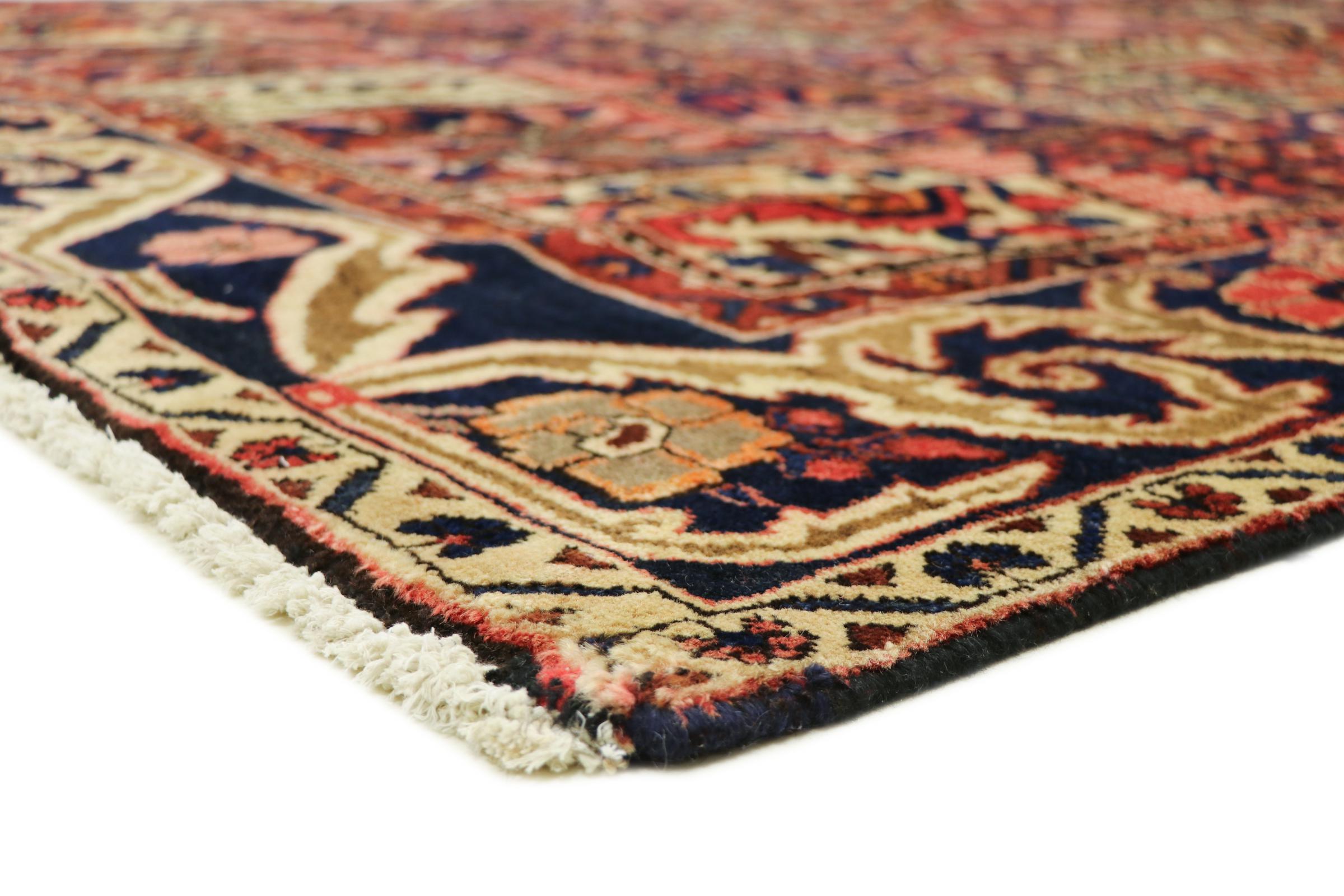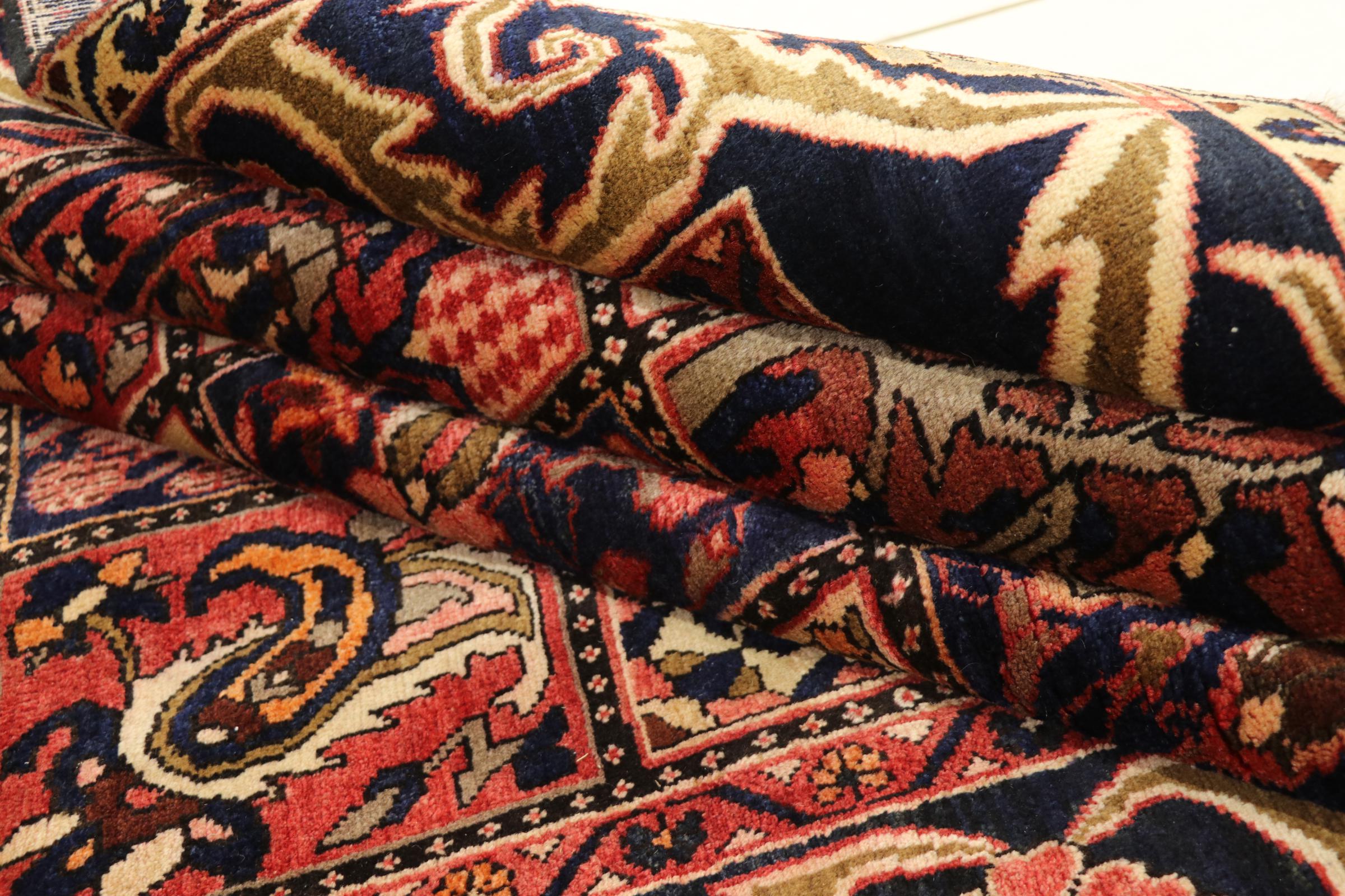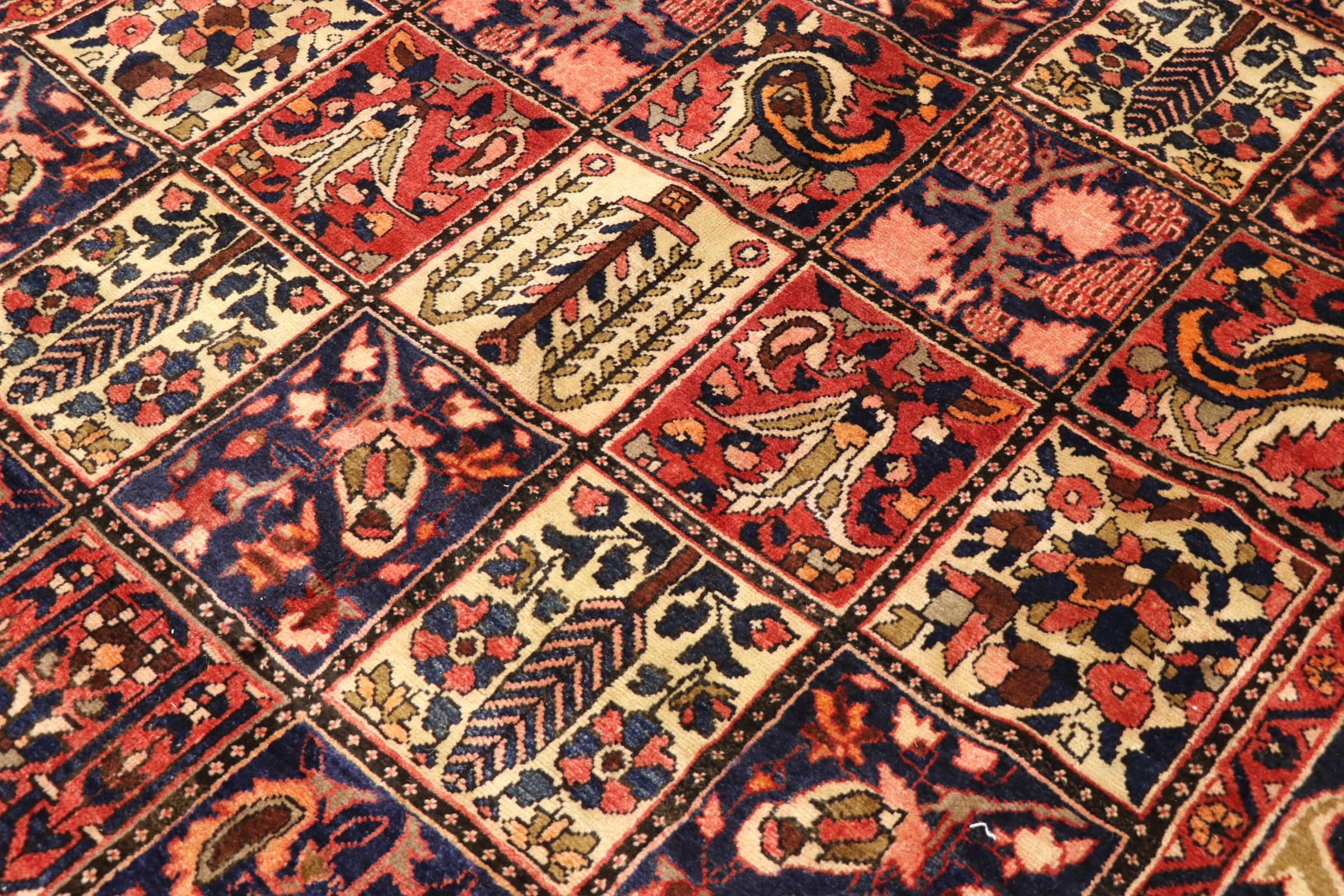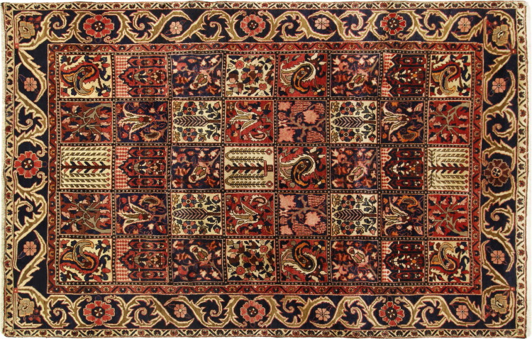 Denne persiske Bakhtiar ble håndknyttet av nomader fra Bakhtiari-stammen. Dette persiske teppet leker med fargene på Orienten i vakre mønstre. Utformingen av ornamentene er inspirert av persiske hager. Den såkalte tradisjonelle hagedesignen har blitt veldig populær i den vestlige verden gjennom årene. Den høye knutetettheten, i kombinasjon med det sterke garnet, lover langvarig glede av persisk teppekunst.