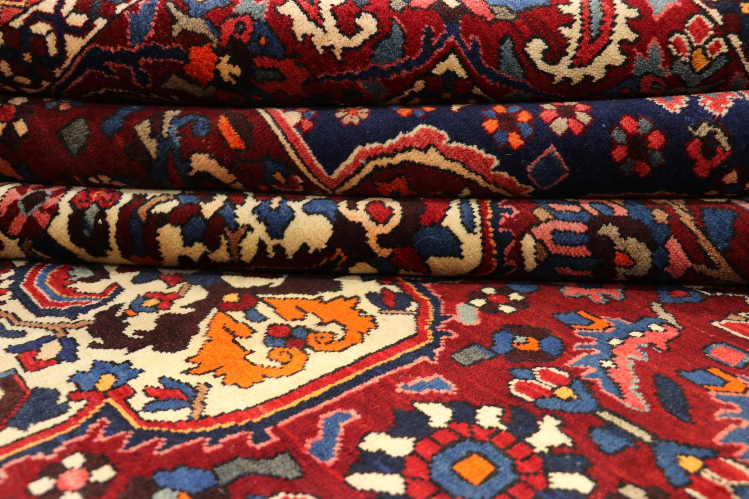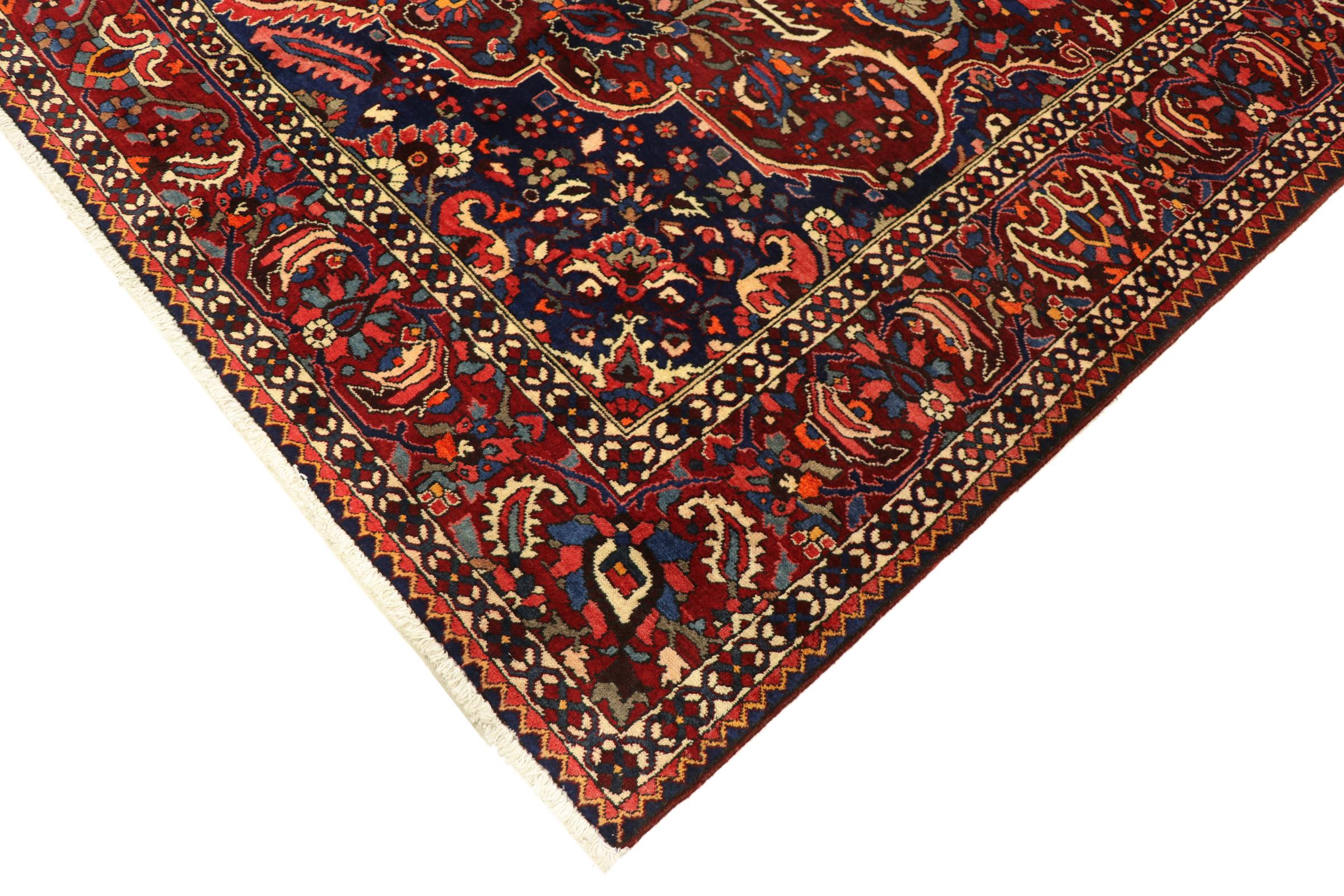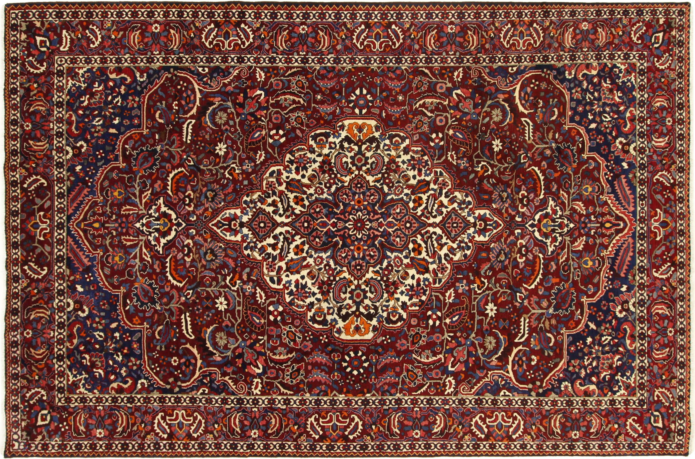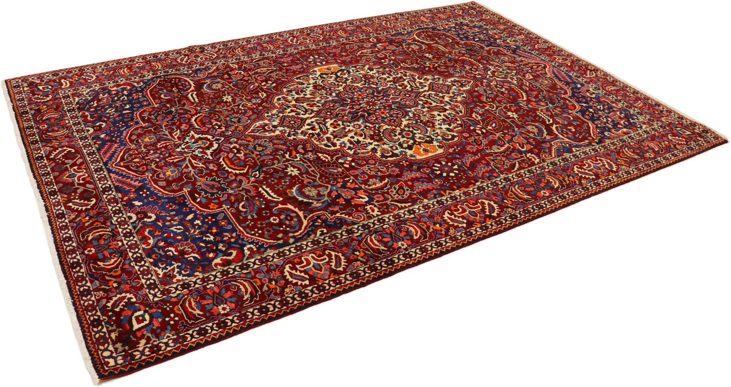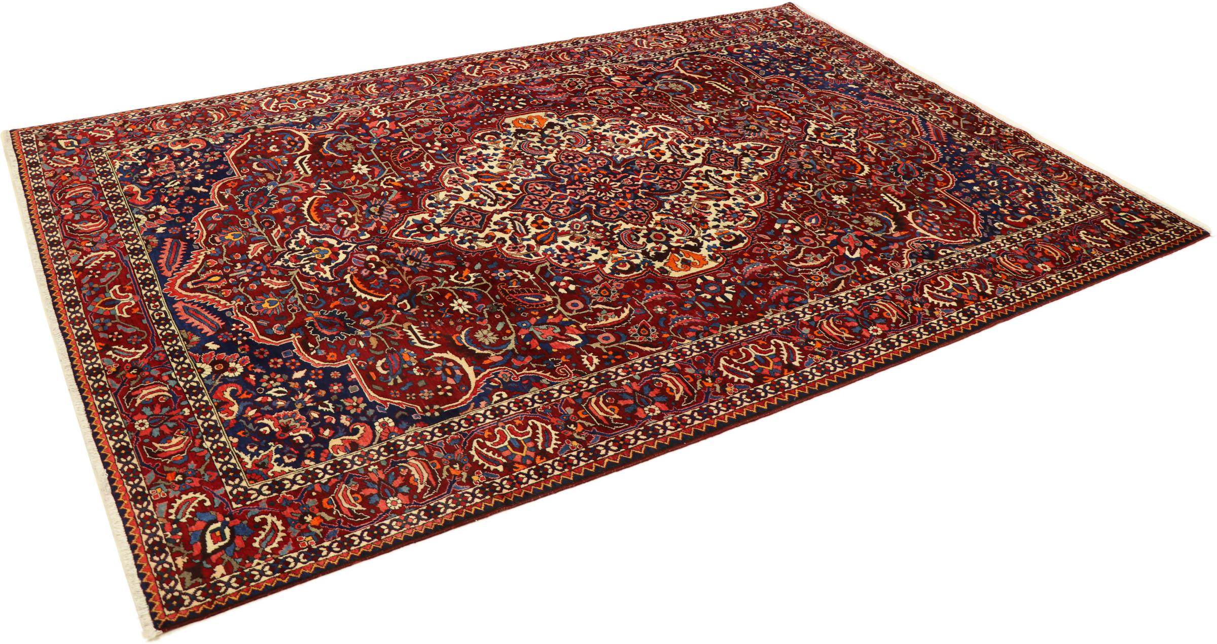 Denne persiske Bakhtiar ble håndknyttet av nomader fra Bakhtiari-stammen. Dette persiske teppet leker med fargene på Orienten i vakre mønstre. Utformingen av ornamentene er inspirert av persiske hager. Den såkalte tradisjonelle hagedesignen har blitt veldig populær i den vestlige verden gjennom årene. Den høye knutetettheten, i kombinasjon med det sterke garnet, lover langvarig glede av persisk teppekunst.