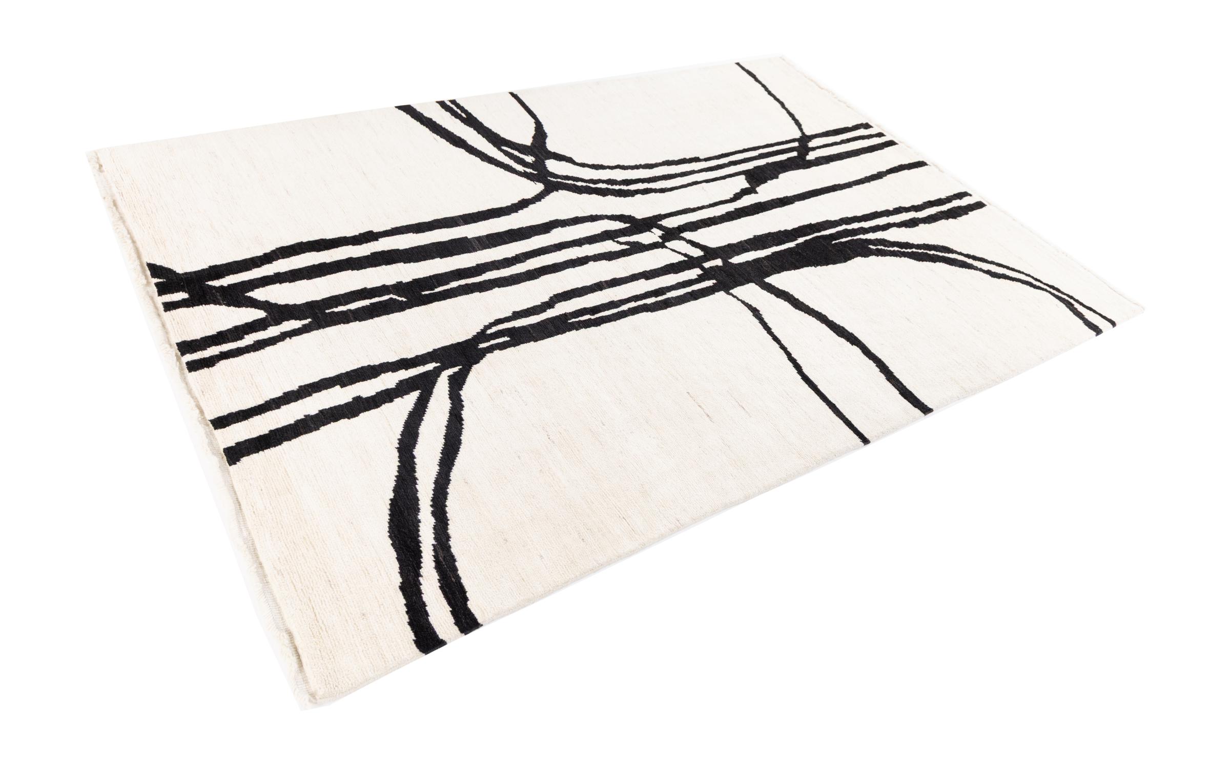 Berber Ela Design-tepper er håndknyttet av naturlig ull av høy kvalitet. Inspirert av to kulturer og innflytelsen fra organiske, naturlige former, ble dette teppet laget som en del av en hel kolleksjon. Et slikt unikt stykke gir hjemmet ditt et spesielt individuelt preg og danner midtpunktet i interiøret ditt. Dette teppet ble laget av erfarne teppevevere over en periode på måneder, resultatet er et unikt design av utmerket kvalitet.