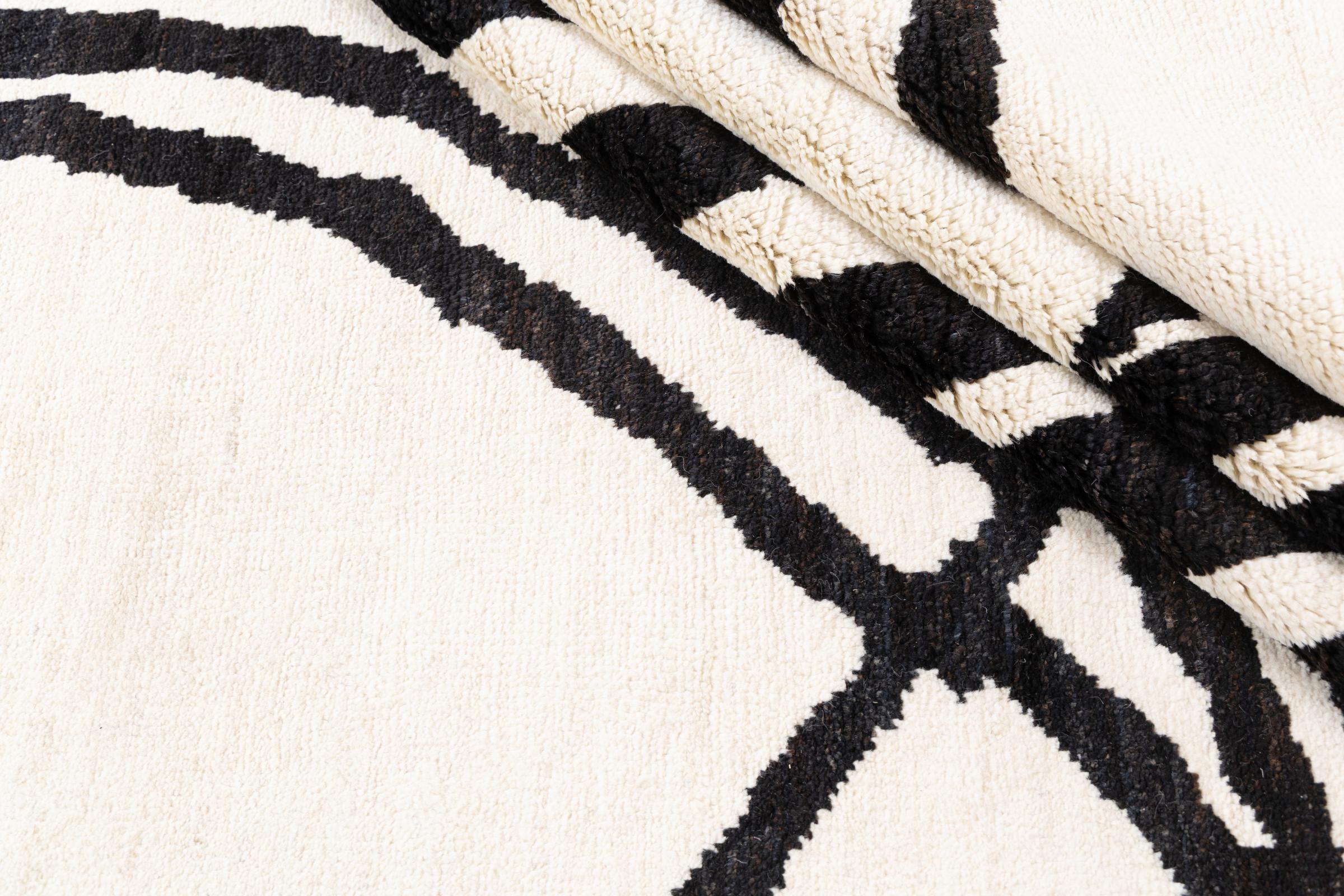 Berber Ela Design-tepper er håndknyttet av naturlig ull av høy kvalitet. Inspirert av to kulturer og innflytelsen fra organiske, naturlige former, ble dette teppet laget som en del av en hel kolleksjon. Et slikt unikt stykke gir hjemmet ditt et spesielt individuelt preg og danner midtpunktet i interiøret ditt. Dette teppet ble laget av erfarne teppevevere over en periode på måneder, resultatet er et unikt design av utmerket kvalitet.