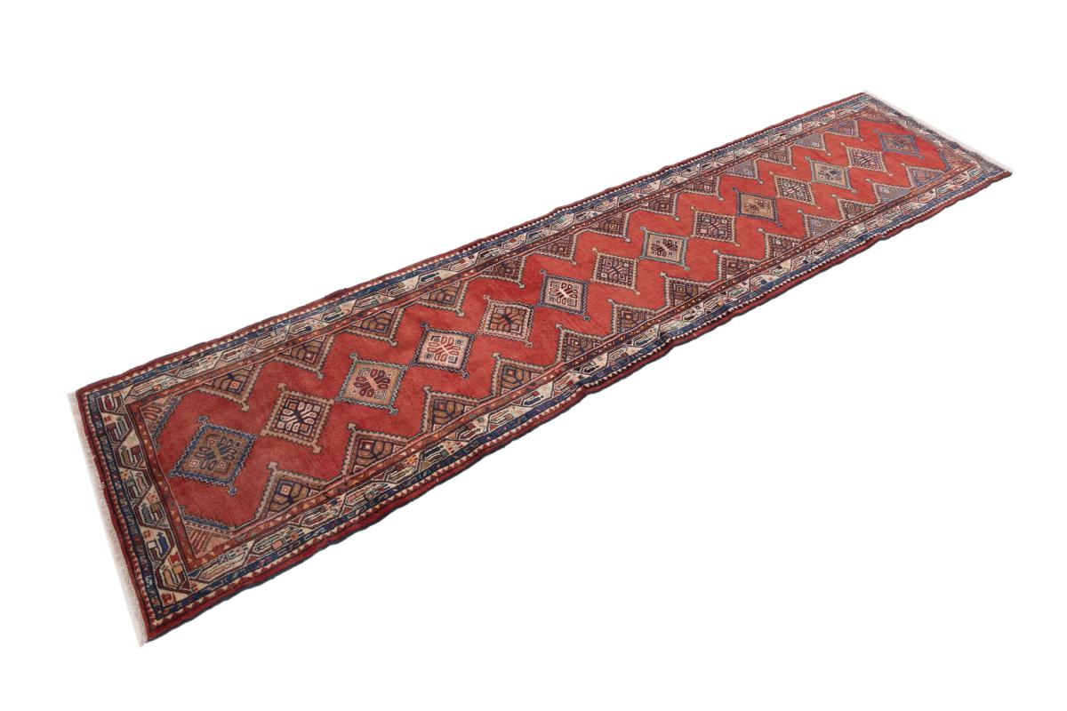 Teppenummer: 281864001320450 Størrelse: 374x81 cm Tykkelse: ca. 5 mm Knuter: 200 000 - 250 000 / m² Bearbeiding: Knyttet for hånd Søm: Håndspunnet Ull Kjede: Bomull Opprinnelse: Persia / Iran Alder: ca. 20-30 år (nytt) Vekt: ca. 11 kg Antall på lager: Unikt - Kun 1 stk i lager