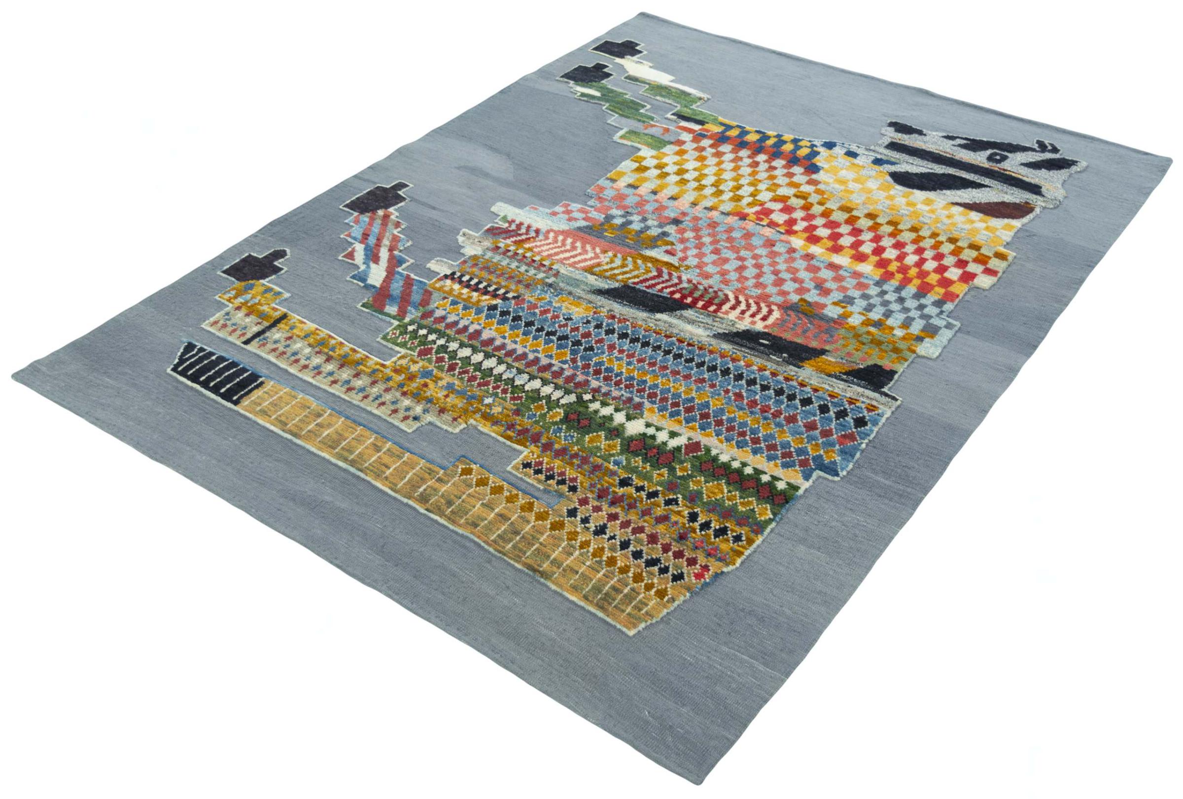 Denne Eylisian er en spesielt høykvalitets, moderne, flatvevd design kelim. Dens håndspunnede/naturlige ull ble håndvevd i henhold til moderne design ved bruk av tradisjonell persisk teknikk. Den robuste, langvarige kvaliteten gjør den til et populært, moderne og tidløst blikkfang i hjemmet ditt.