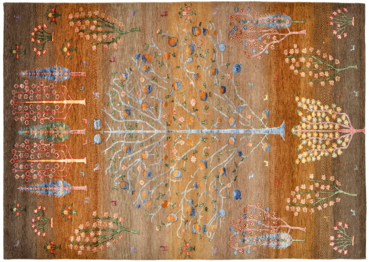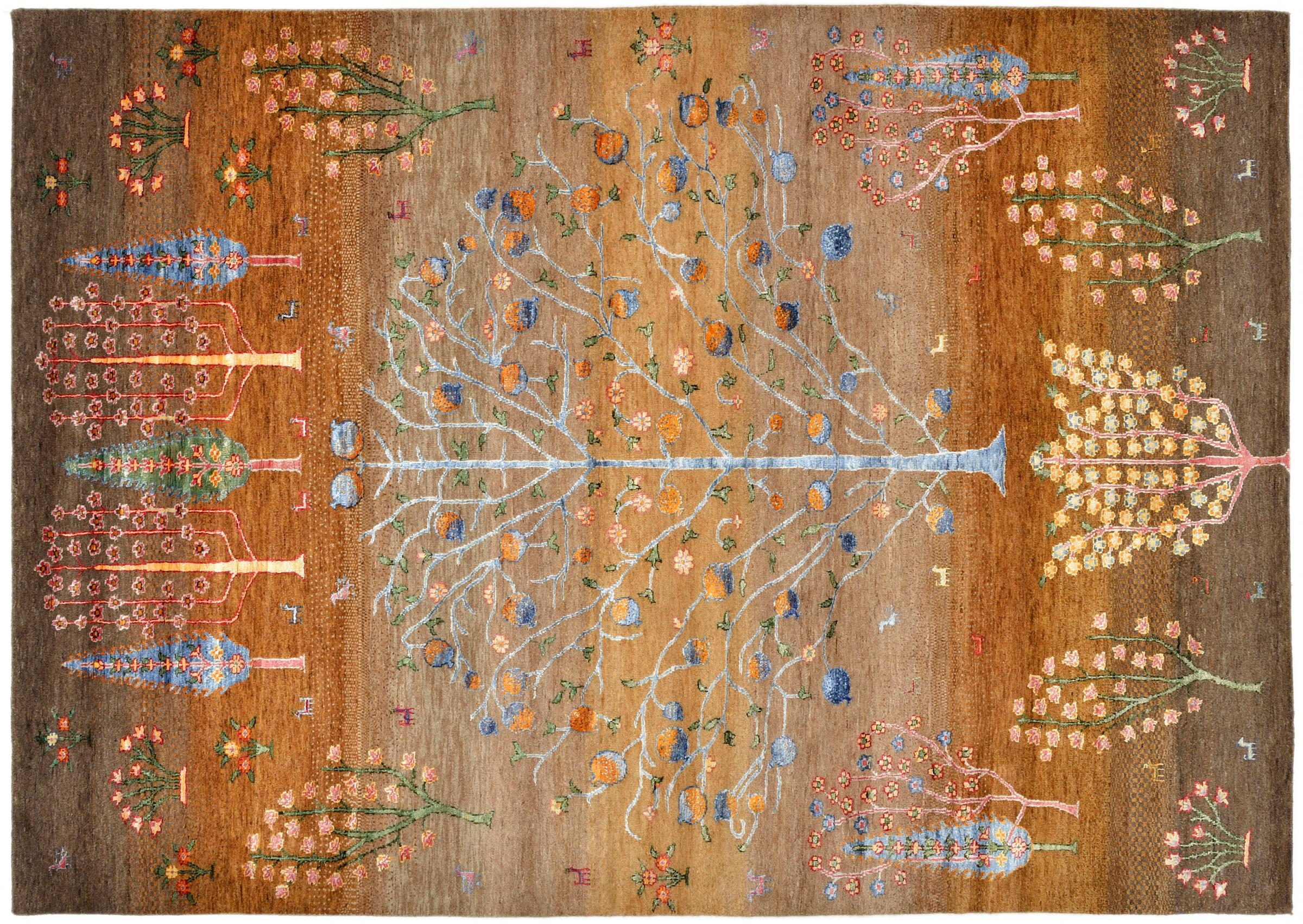 Dette vakre Gabbeh-teppet var håndknyttet i India. Indiske Gabbeh-tepper er laget av myk saueull, er hyggelige på føttene og har varmeisolerende egenskaper. De fleste av designene er enkle og tidløse moderne. De ble inspirert av nomadefolk som lot veldig enkle motiver fra omgivelsene passere inn i teppene. Indiske Gabbeh-tepper stemmer ikke helt med kvaliteten på en persisk Gabbeh, men de har et veldig godt pris-ytelsesforhold. Dette gjør dem ideelle som et håndknyttet inngangsnivåteppe.