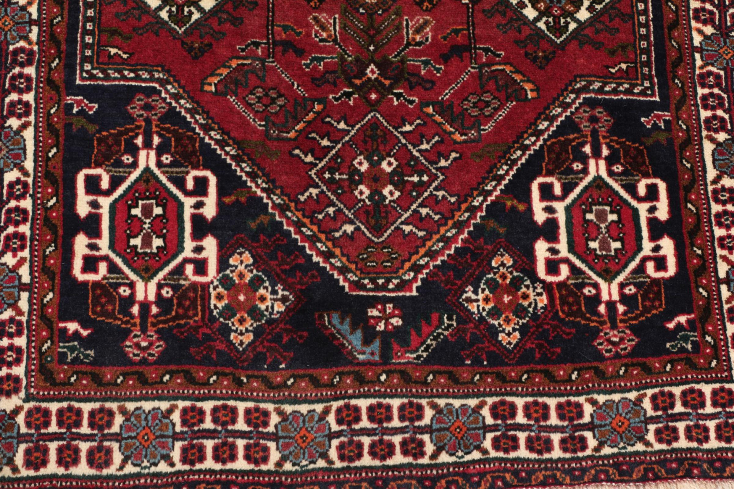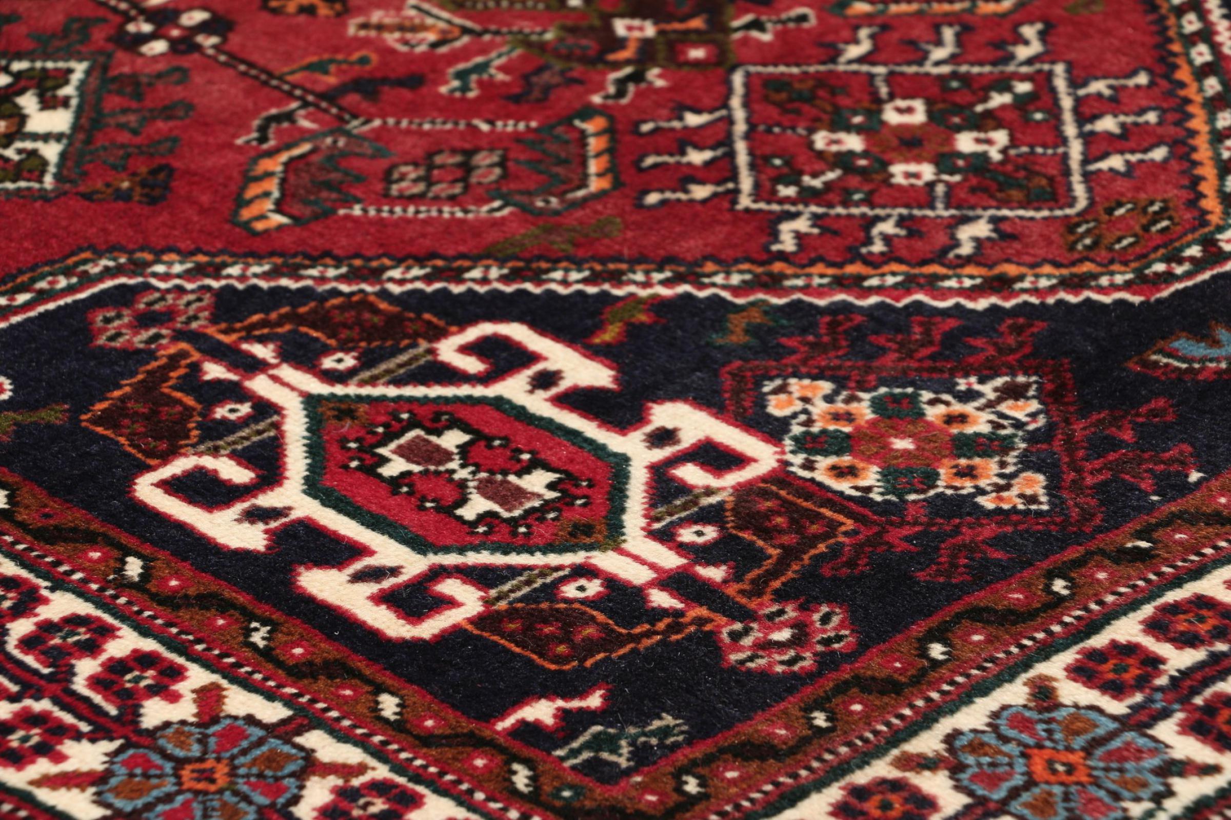 Dette Ghaschghai tiltrekker seg oppmerksomhet. Fargene og mønstrene gjenspeiler livet til Ghaschghai-Nomadene , disse levde hovedsaklig i byen Schiras. La et stykke iransk kultur gi liv i dine egne fire vegger og la deg bli fasinert av den flotte kvaliteten.