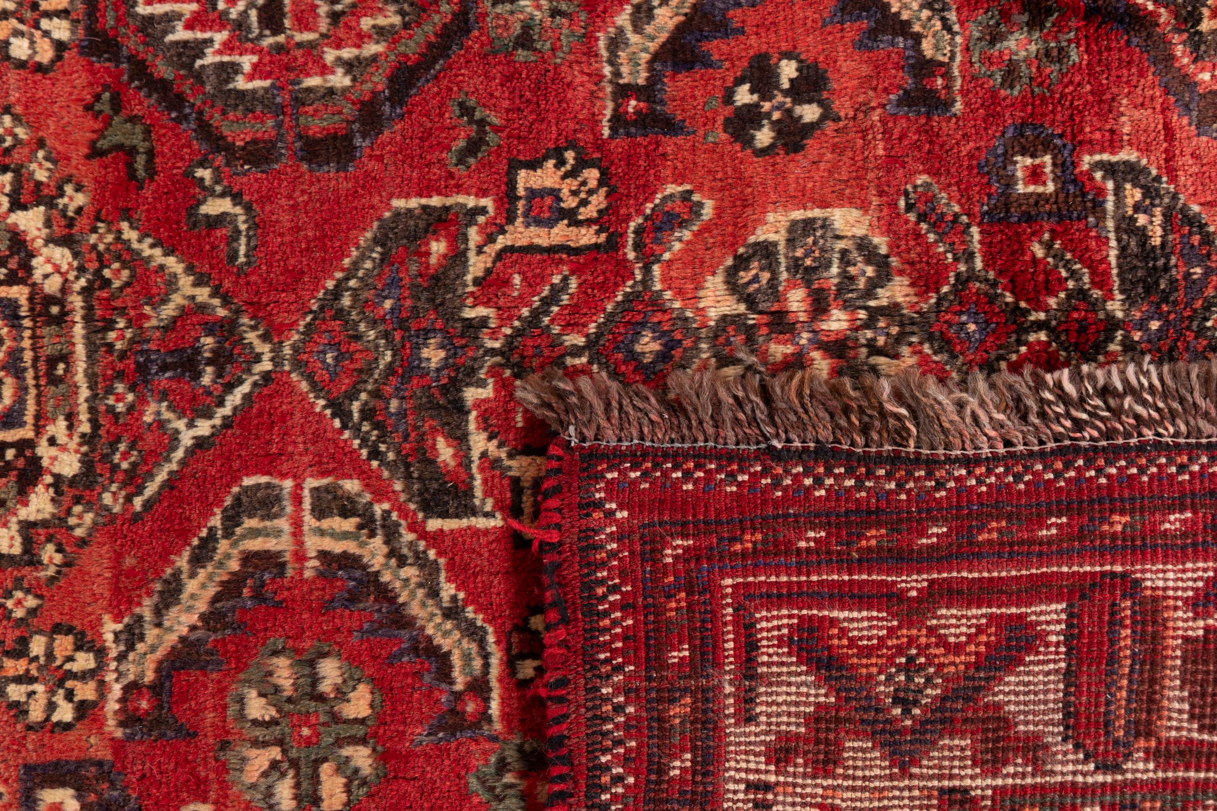 Dette Ghaschghai tiltrekker seg oppmerksomhet. Fargene og mønstrene gjenspeiler livet til Ghaschghai-Nomadene , disse levde hovedsaklig i byen Schiras. La et stykke iransk kultur gi liv i dine egne fire vegger og la deg bli fasinert av den flotte kvaliteten.