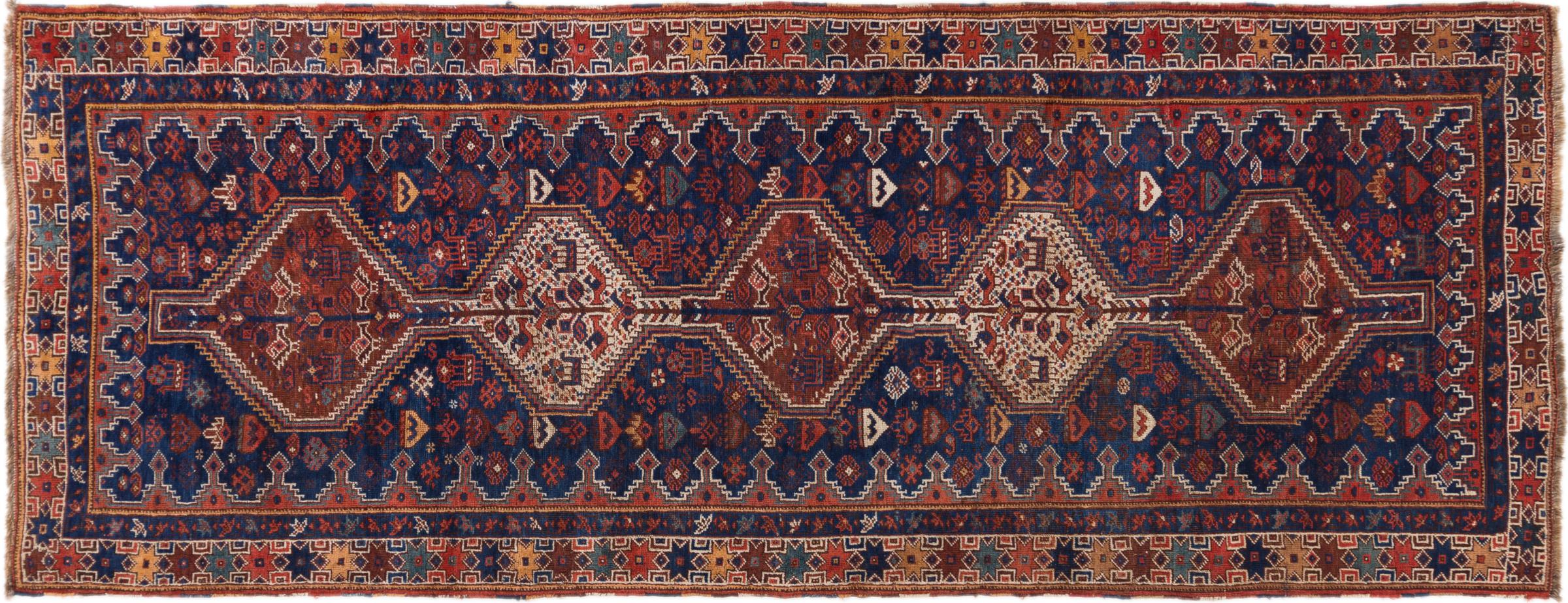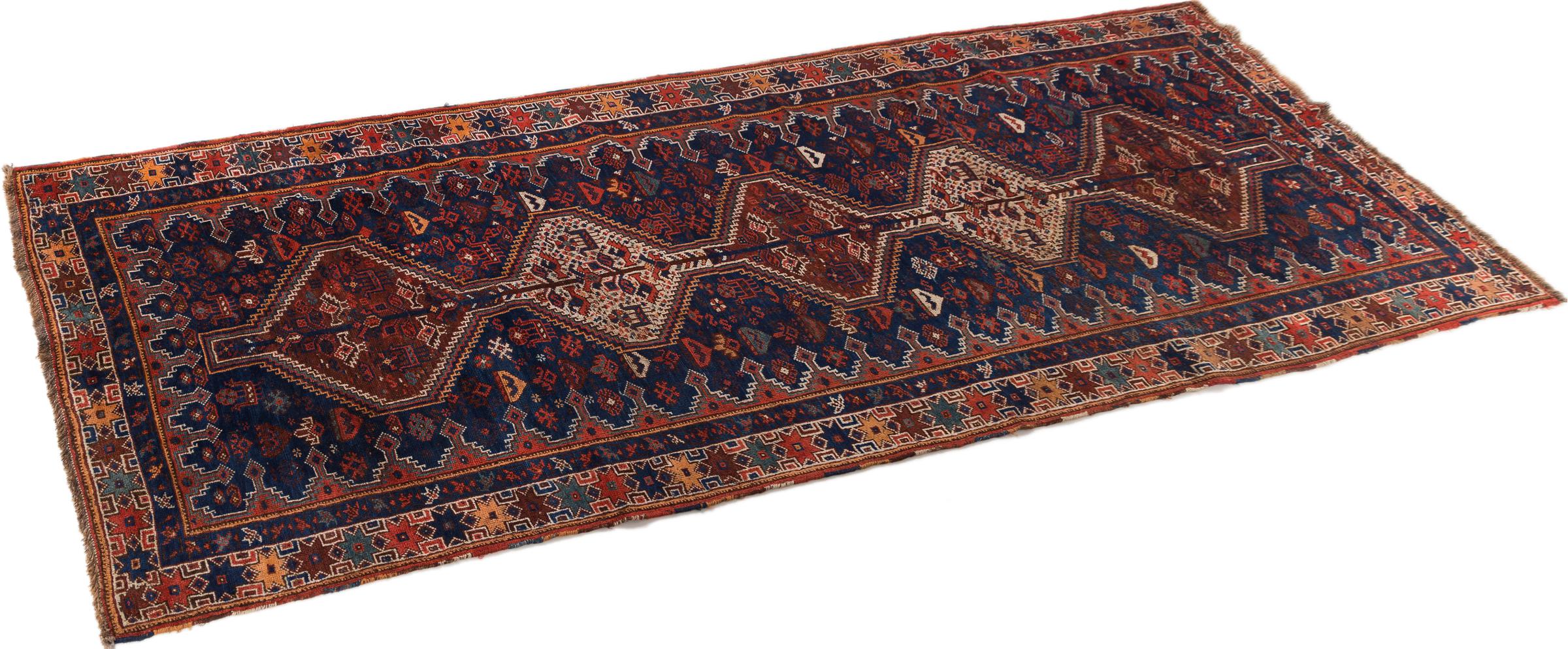 Teppenummer: 298424004632 Størrelse: 295x110 cm Tykkelse: ca. 12 mm Knuter: 200 000 - 250 000 / m² Bearbeiding: Knyttet for hånd Søm: Håndspunnet Ull Kjede: Ull Tilstand / Bevaring Teppet har tydelige bruksspor og er ujvent brukt Opprinnelse: Persia / Iran Alder: Gammelt/halv-antikt, eldre enn 50 år Vekt: ca. 11 kg Også kjent som Qashqai, Gaschgai, Gashghai, Kashgai Antall på lager: Unikt - Kun 1 stk i lager