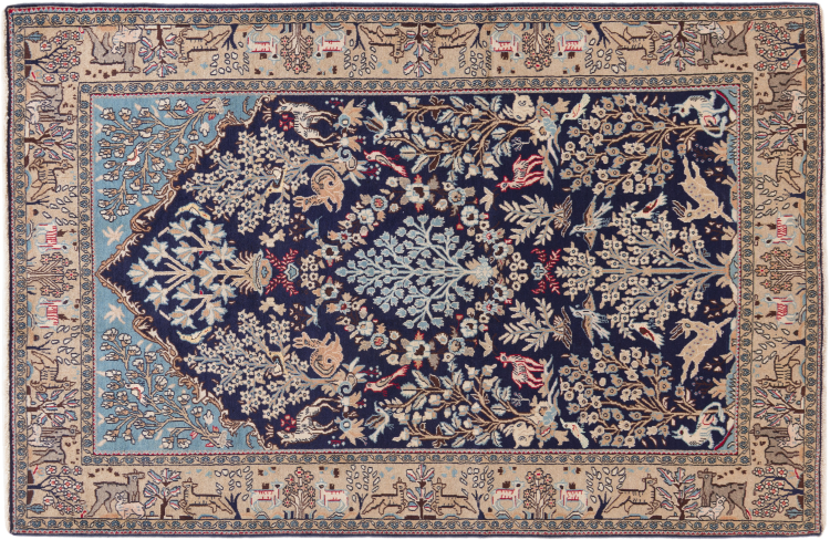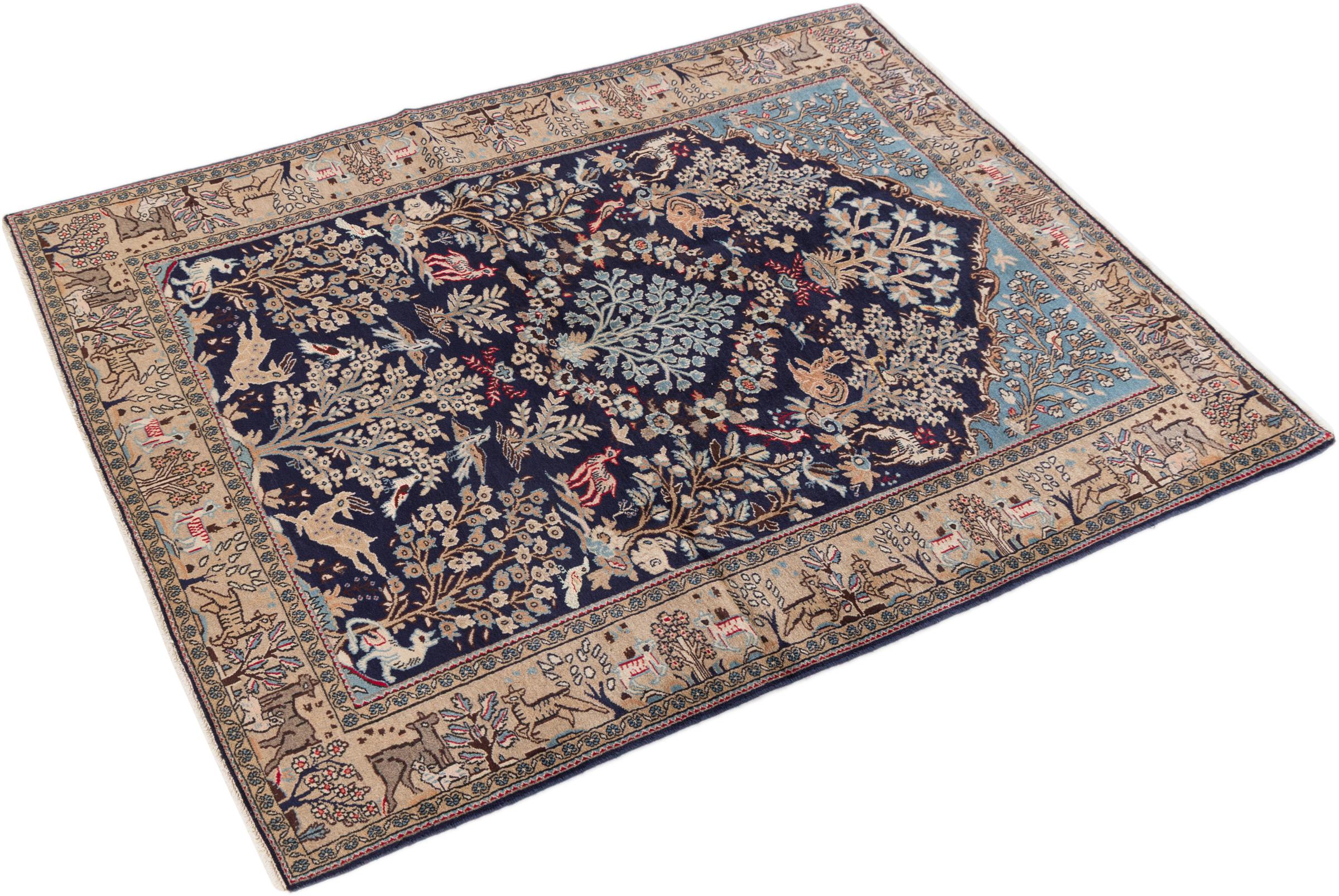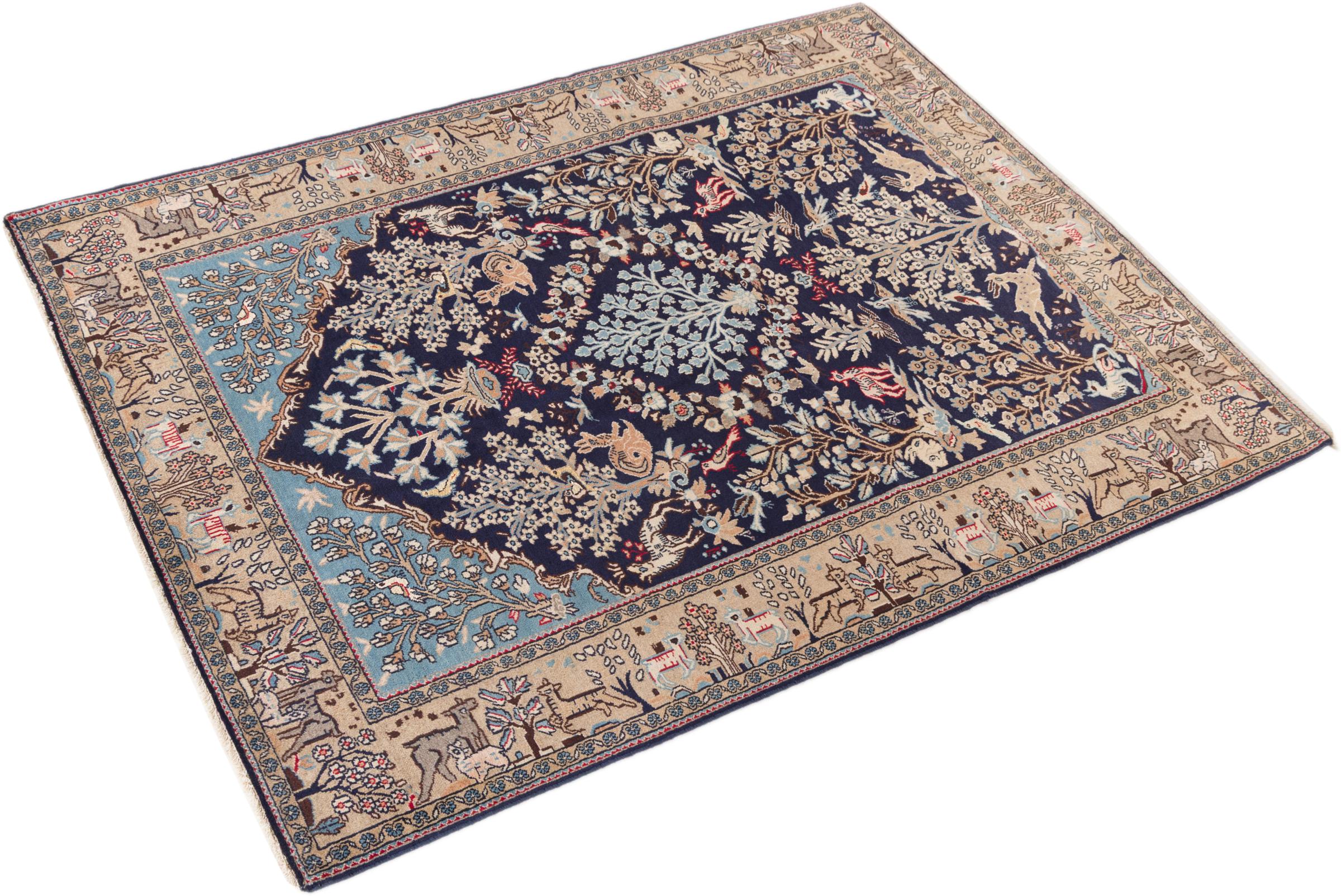 Teppenummer: 29589600679 Størrelse: 207x132 cm Tykkelse: ca. 10 mm Knuter: 360 000 - 400 000 / m² Bearbeiding: Knyttet for hånd Søm: Korkull med silke Kjede: Bomull Opprinnelse: Persia / Iran Alder: Nytt Vekt: ca. 10 kg Antall på lager: Unikt - Kun 1 stk i lager