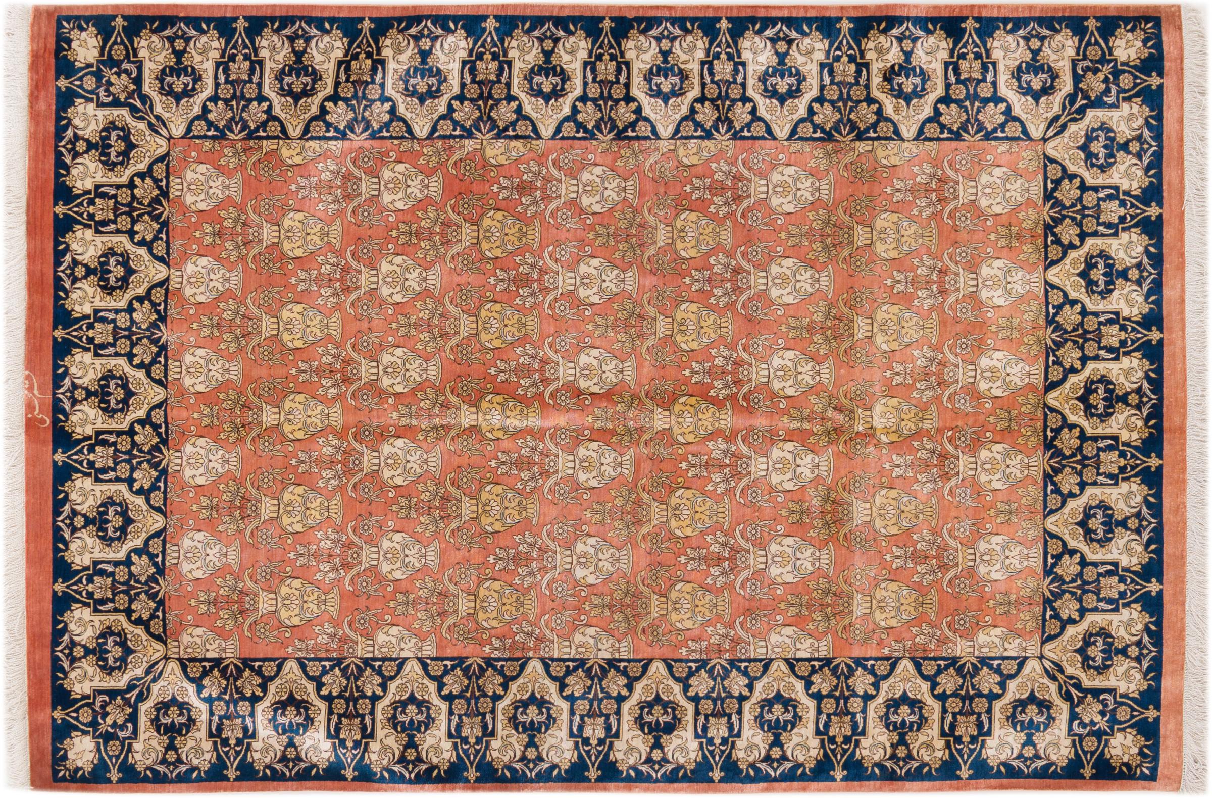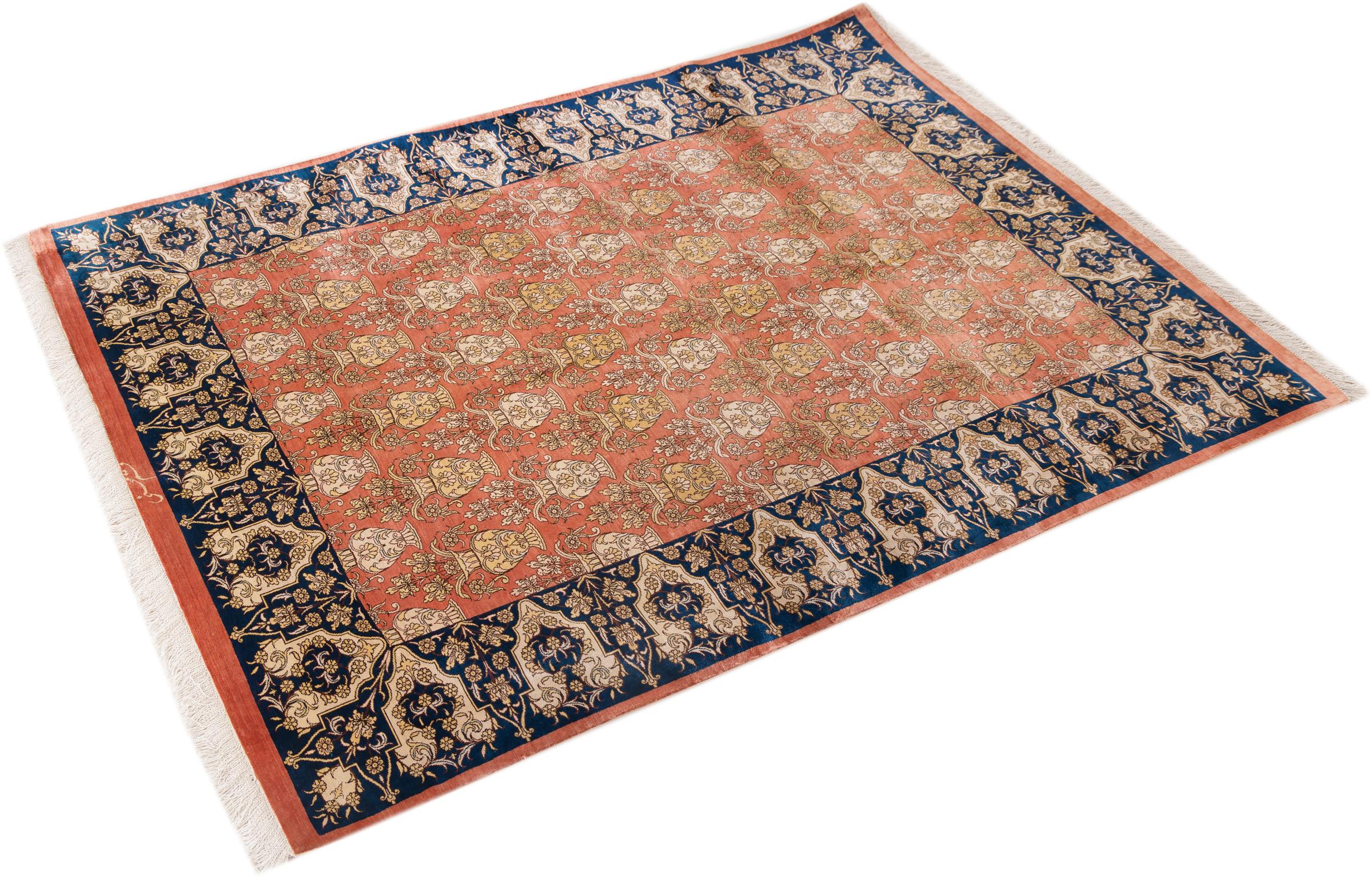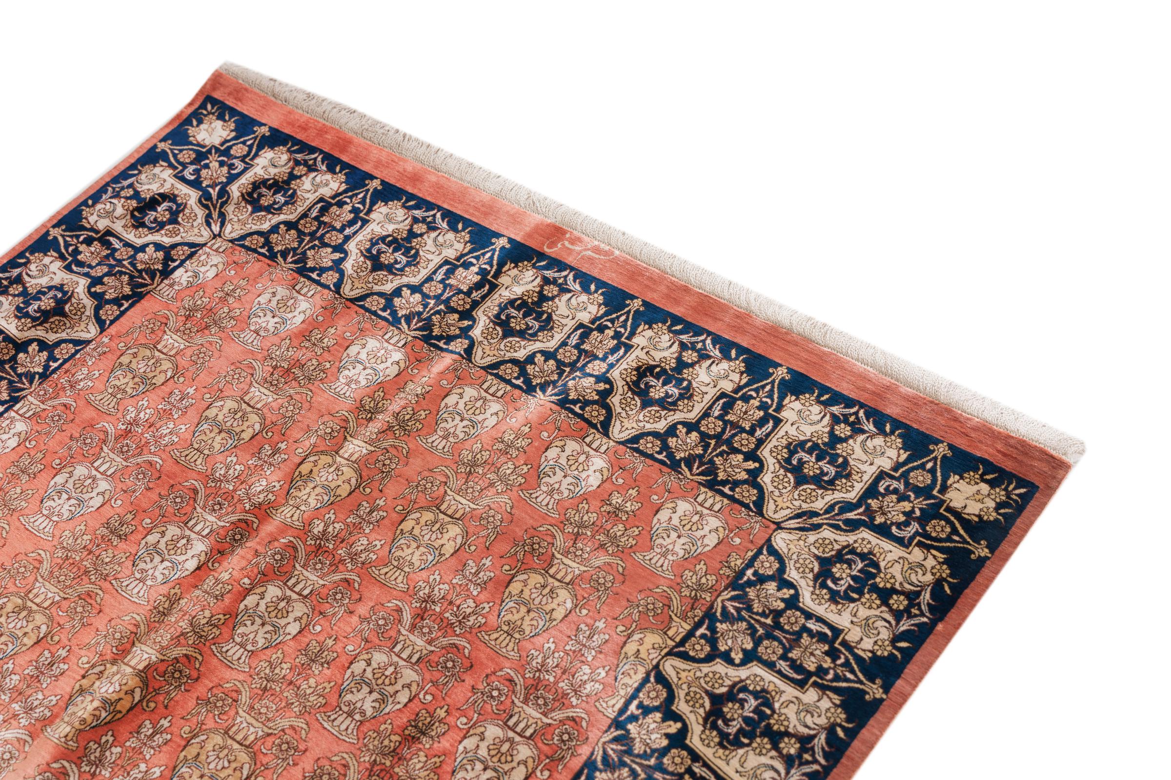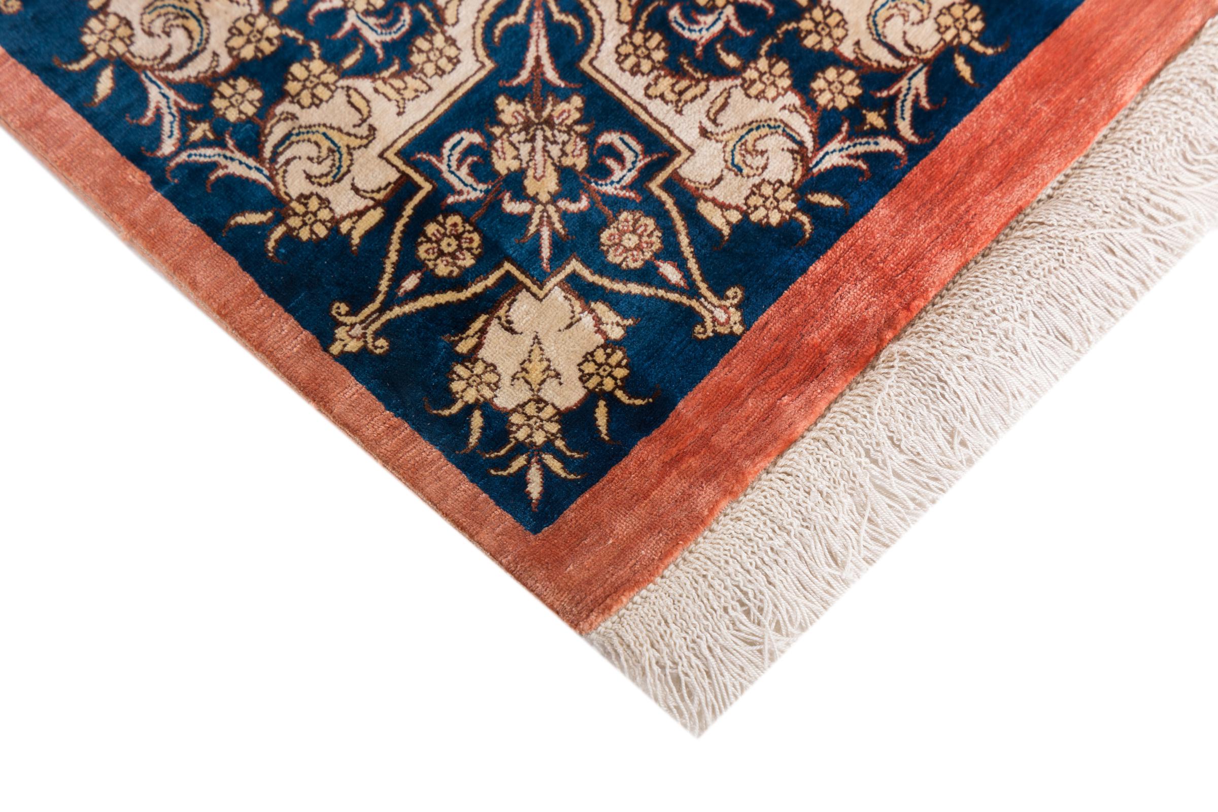 Dette Ghom silketeppe er ren luksus. Mønstrene og natursilken snakker for seg. Perfeksjonisme og orientalsk kunst for ditt hjem. Et silketeppe med Ghom-silke begeistrer enhver teppekspert. Teppet vil stråle og bli midtpunktet i rommet.