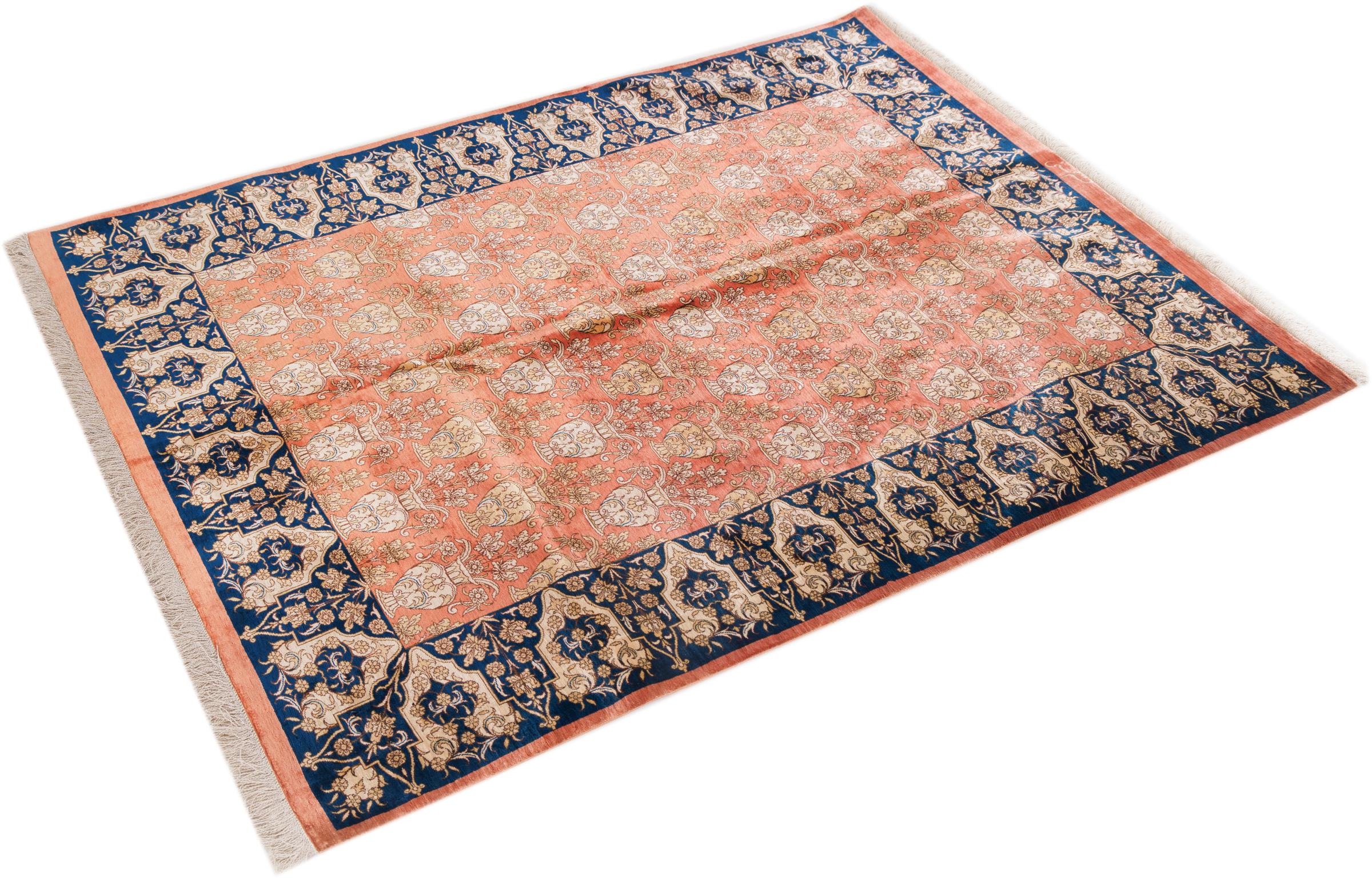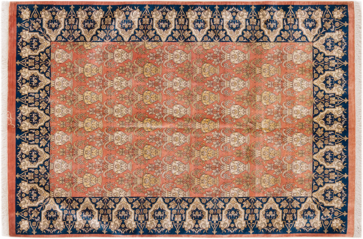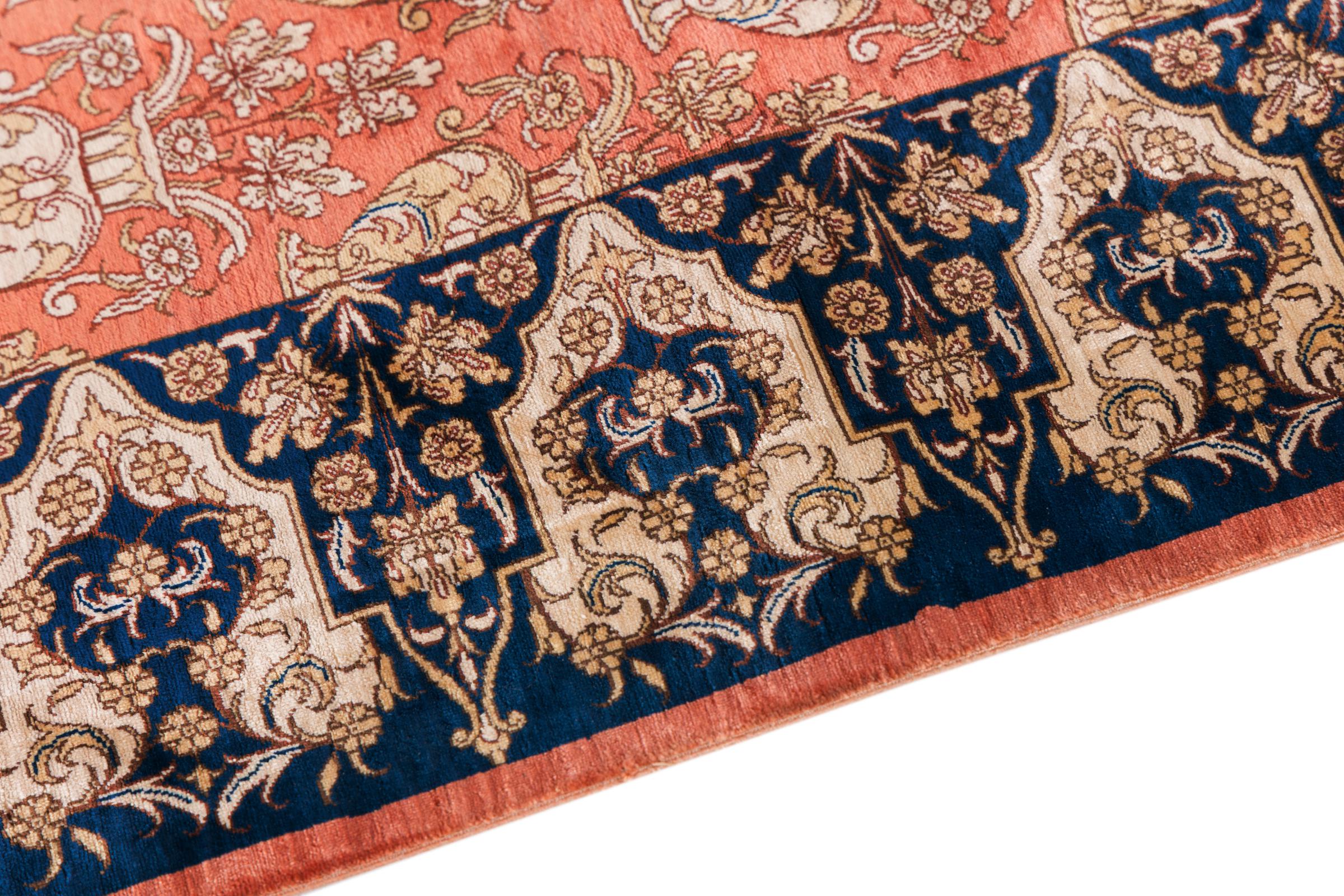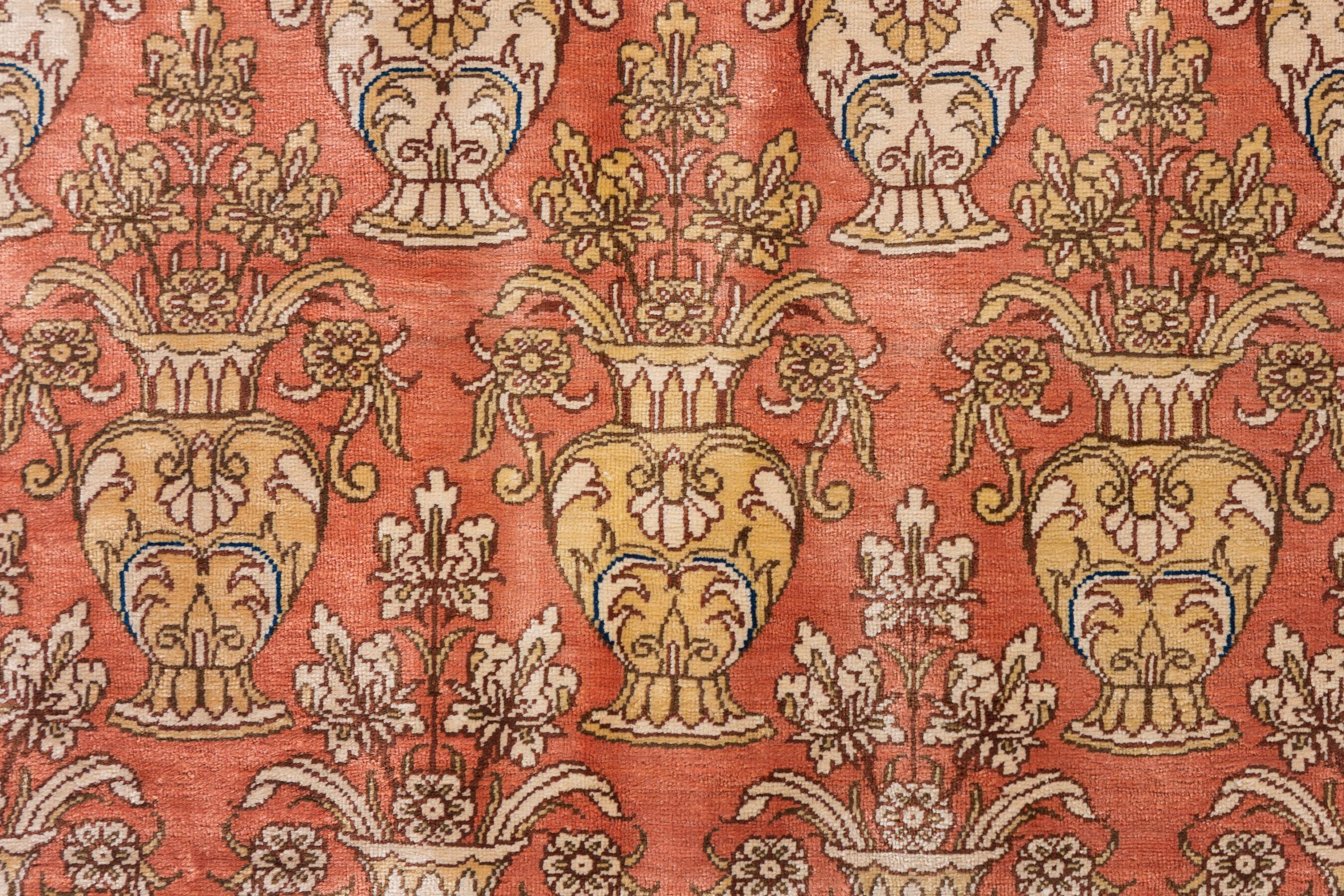 Dette Ghom silketeppe er ren luksus. Mønstrene og natursilken snakker for seg. Perfeksjonisme og orientalsk kunst for ditt hjem. Et silketeppe med Ghom-silke begeistrer enhver teppekspert. Teppet vil stråle og bli midtpunktet i rommet.