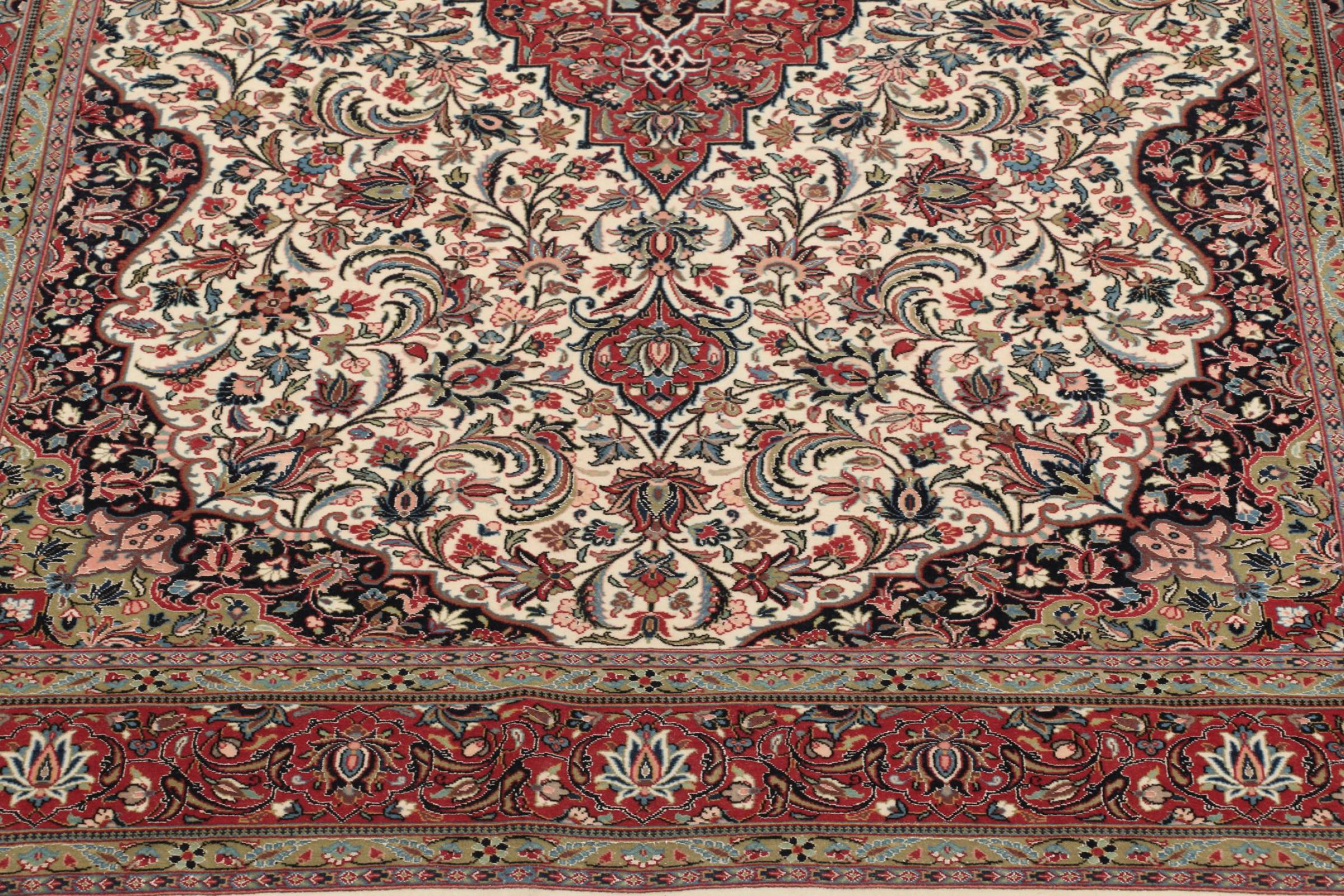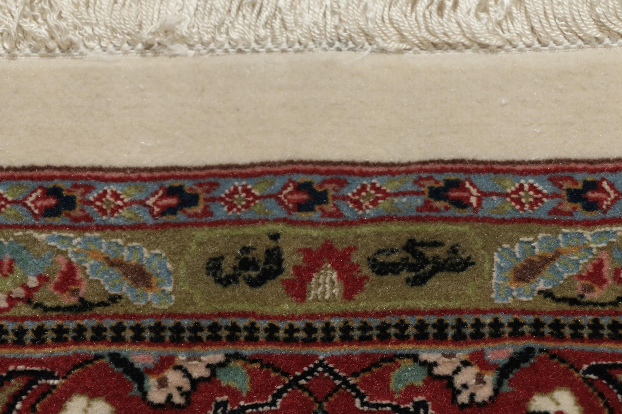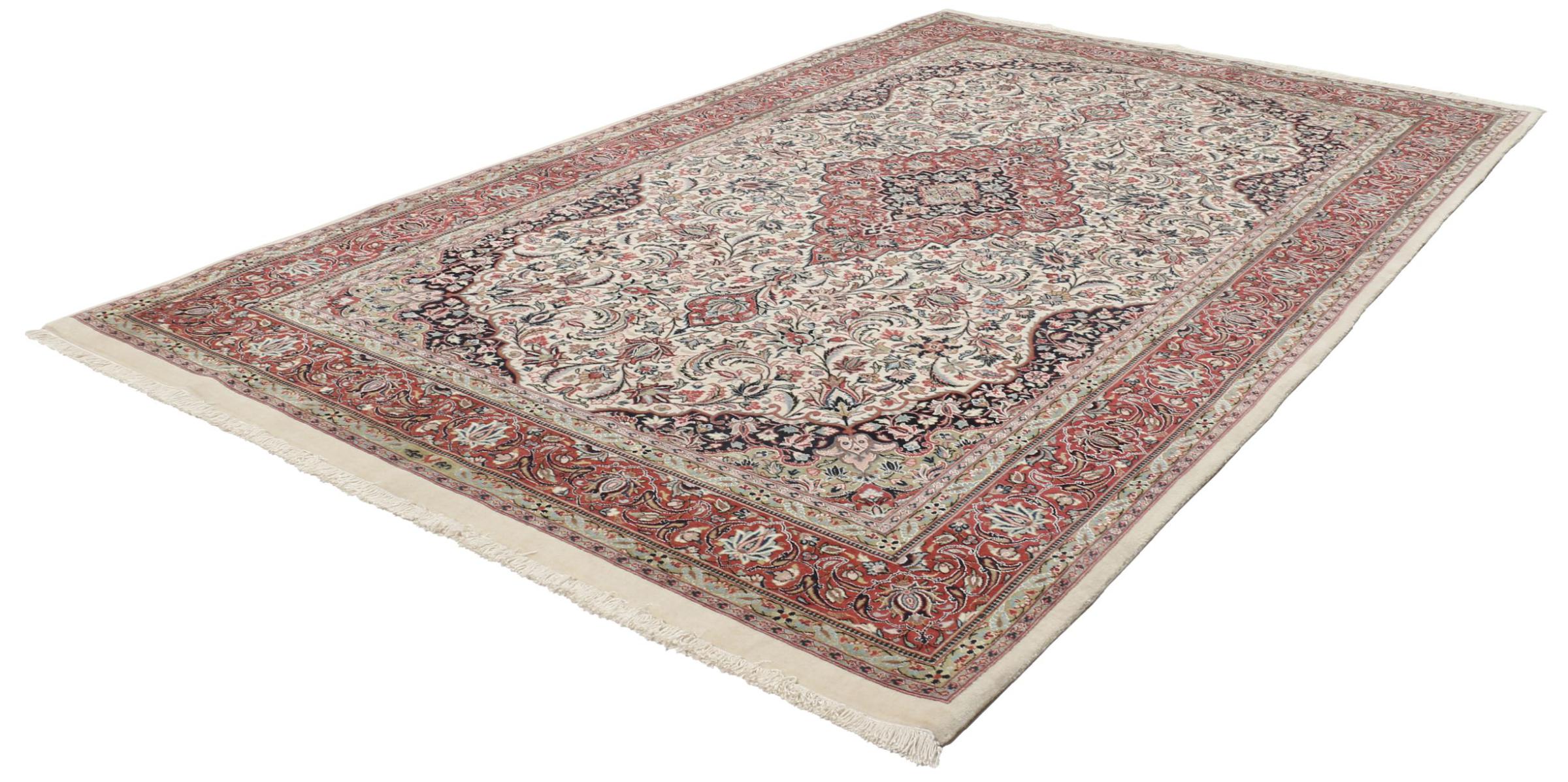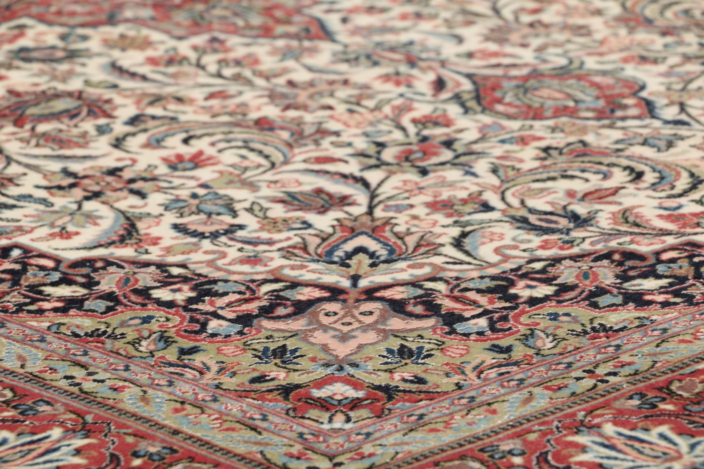Dette Ghom kork teppet er ekte håndtverkskunst. Flooren og kjedene vil overbevise enhver teppekjenner. Dette persiske teppet ble håndknyttet av fineste korkull. Mønstrene og fargene lar ditt hjerte slå høyere, flottere kann et persisk teppe ikke være.