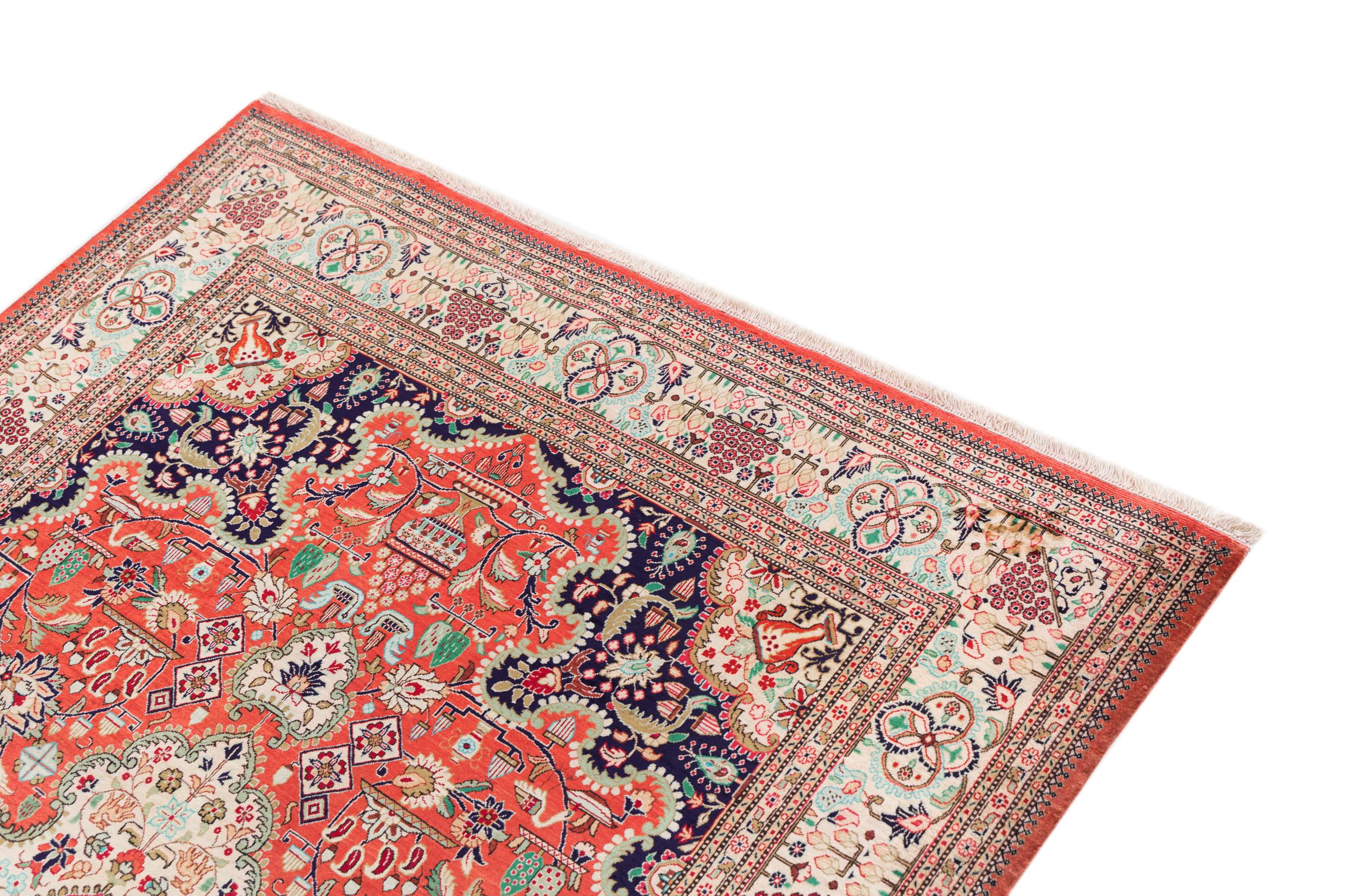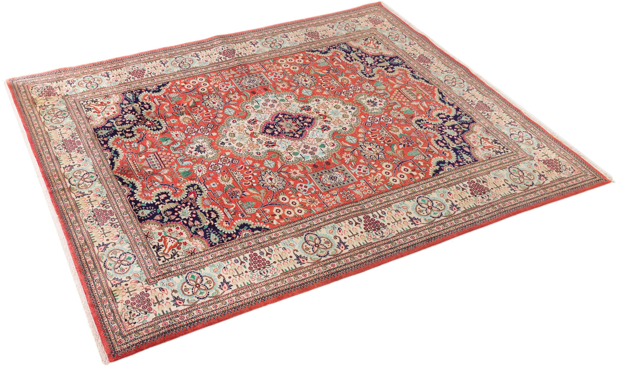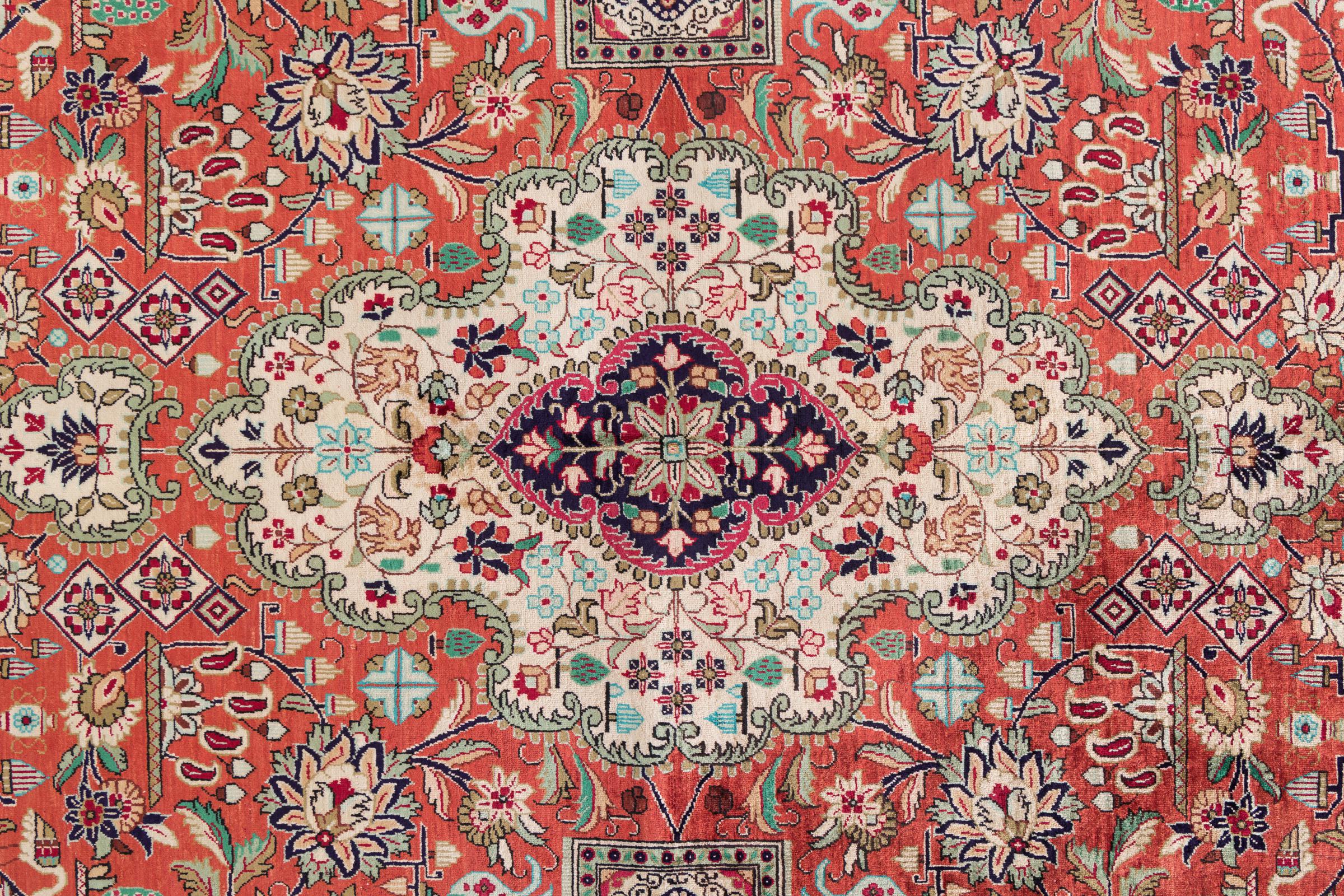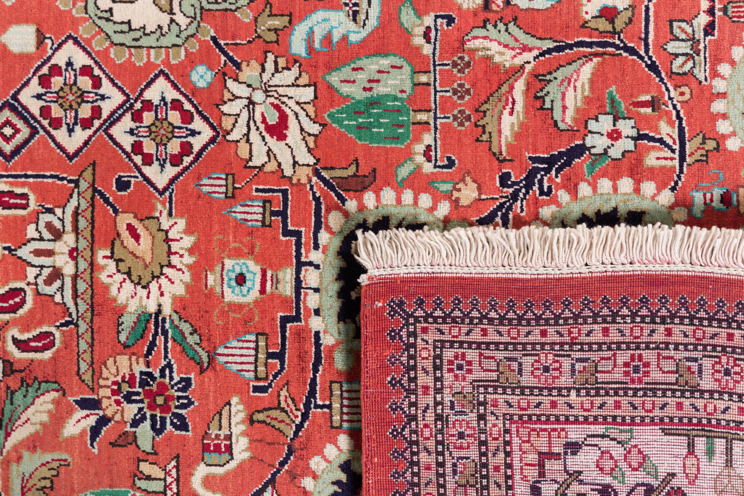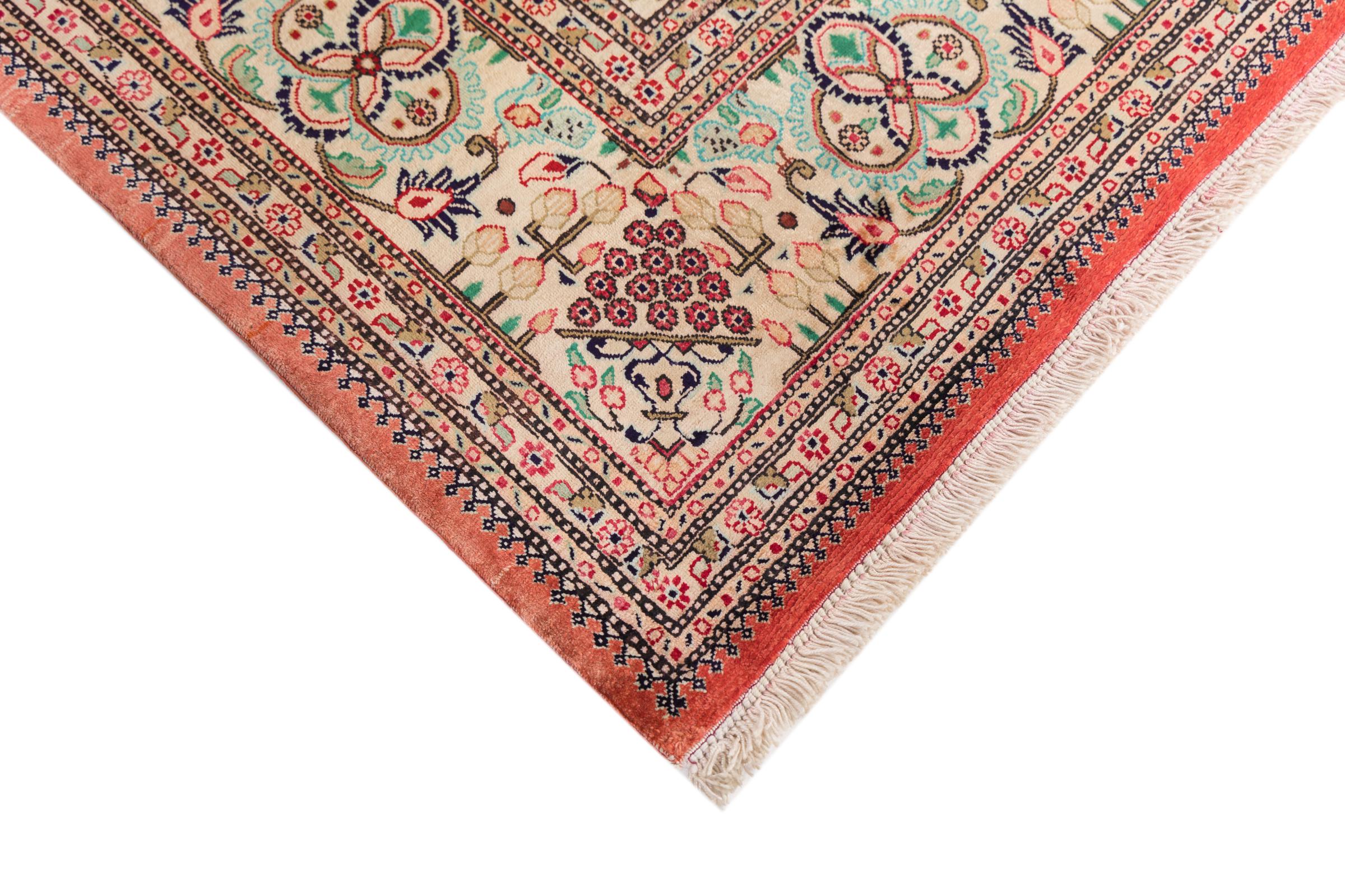 Dette Ghom silketeppe er ren luksus. Mønstrene og natursilken snakker for seg. Perfeksjonisme og orientalsk kunst for ditt hjem. Et silketeppe med Ghom-silke begeistrer enhver teppekspert. Teppet vil stråle og bli midtpunktet i rommet.