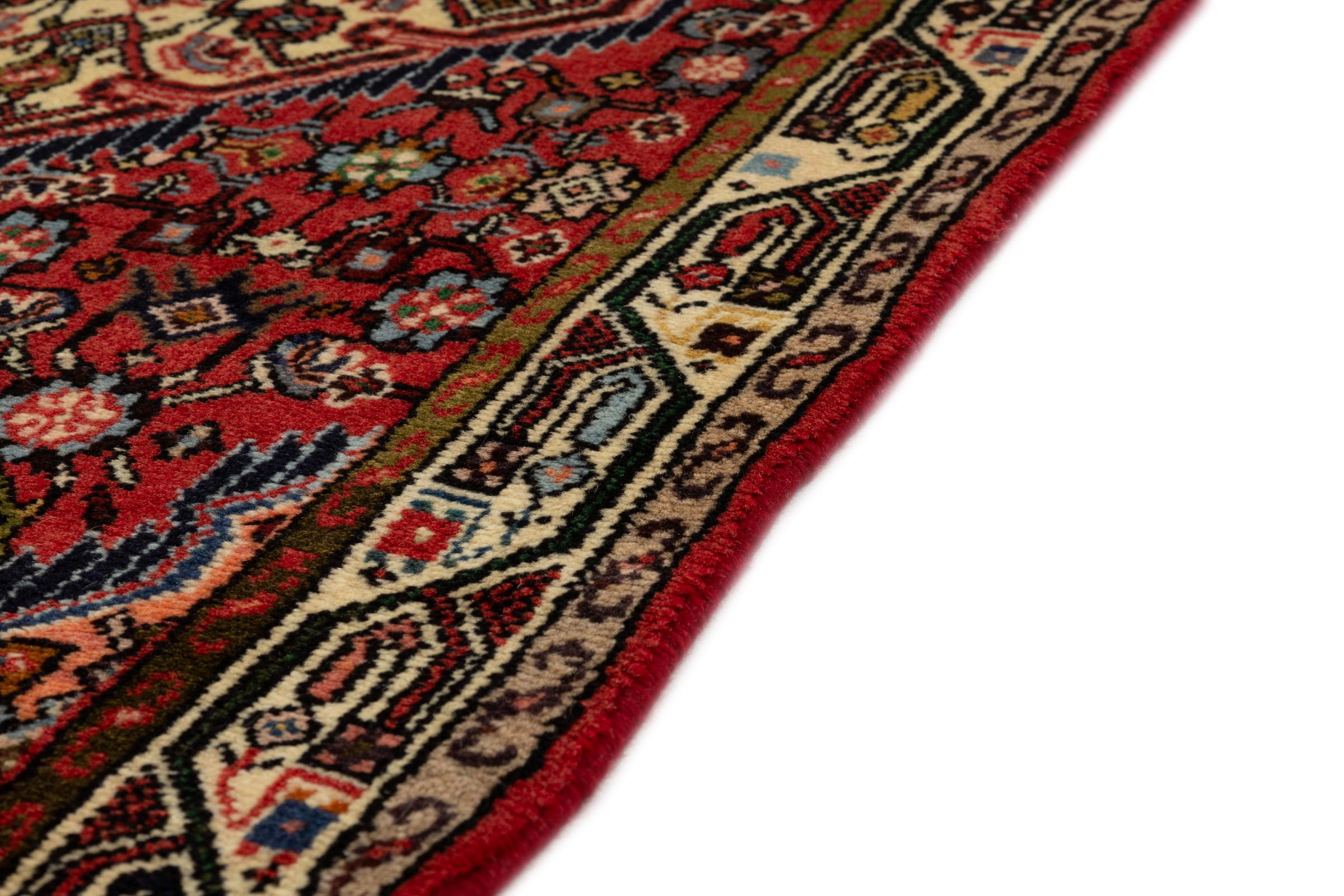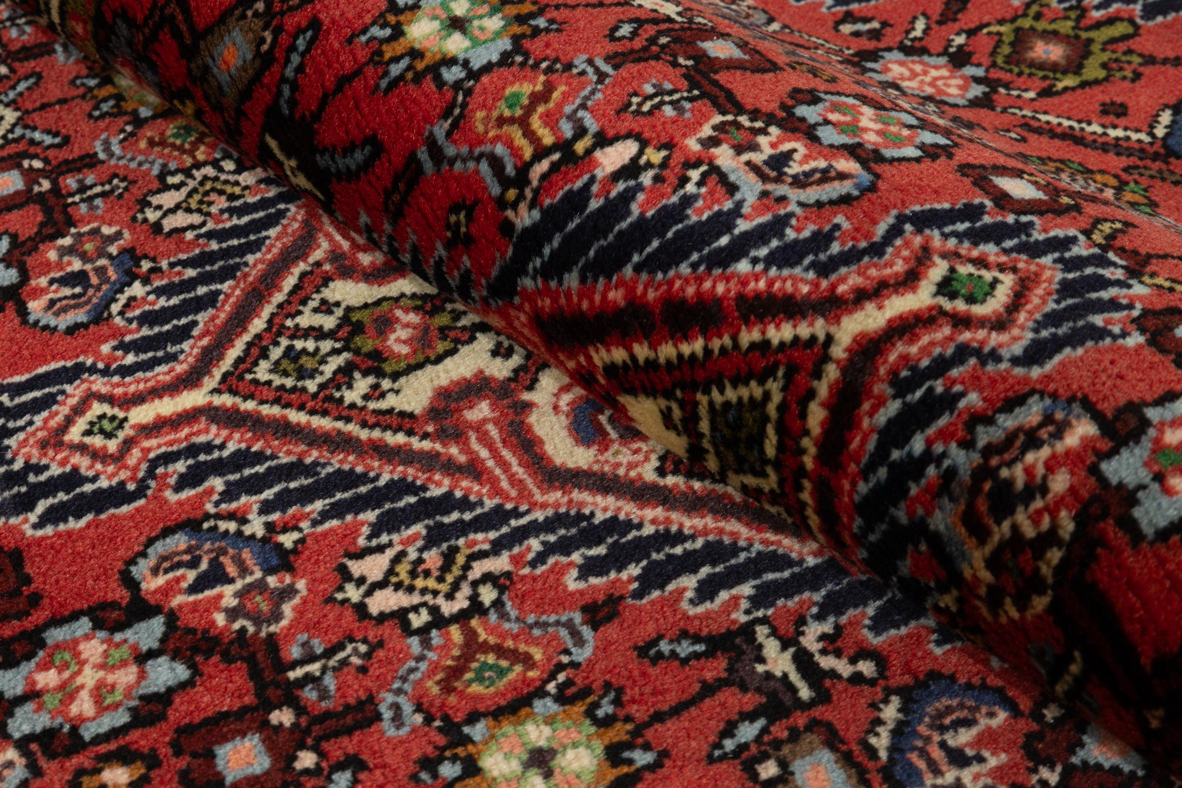 Dette Hamadan teppet vet å begeistre: pris, kvalitet og holdbarheten er en perfekt kombinasjon. På grunn av det slitesterke garnet er dette persiske teppe svært lenge holdbart. Det blir knyttet i byen Hamadan. Typiske persiske mønster gir oss et stykke orientalsk kultur.
