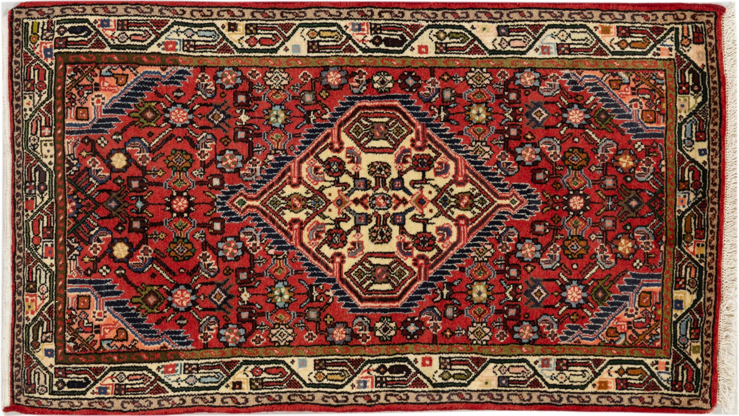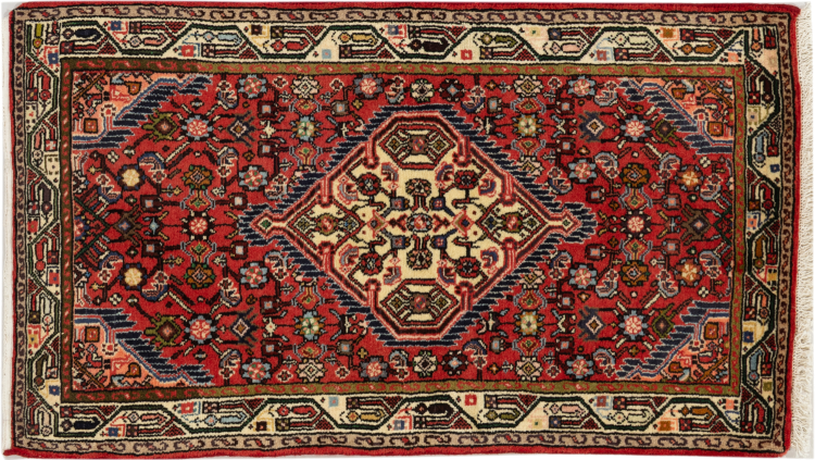 Teppenummer: 297187002017462 Størrelse: 135x74 cm Tykkelse: ca. 8 mm Knuter: 128 000 - 160 000 / m² Bearbeiding: Knyttet for hånd Søm: Ull Kjede: Bomull Opprinnelse: Persia / Iran Alder: ca. 20-30 år (nytt) Vekt: ca. 3 kg Også kjent som Huseinabad Antall på lager: Unikt - Kun 1 stk i lager