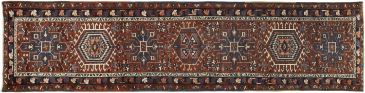 Teppenummer: 233343001927768 Størrelse: 320x80 cm Tykkelse: ca. 6 mm Knuter: 96 000 - 120 000 / m² Bearbeiding: Knyttet for hånd Søm: Håndspunnet Ull Kjede: Bomull Tilstand / Bevaring På enkelte steder kan man finne små bruksspor Opprinnelse: Persia / Iran Alder: Antikt, eldre enn 80 år Vekt: ca. 8 kg Antall på lager: Unikt - Kun 1 stk i lager