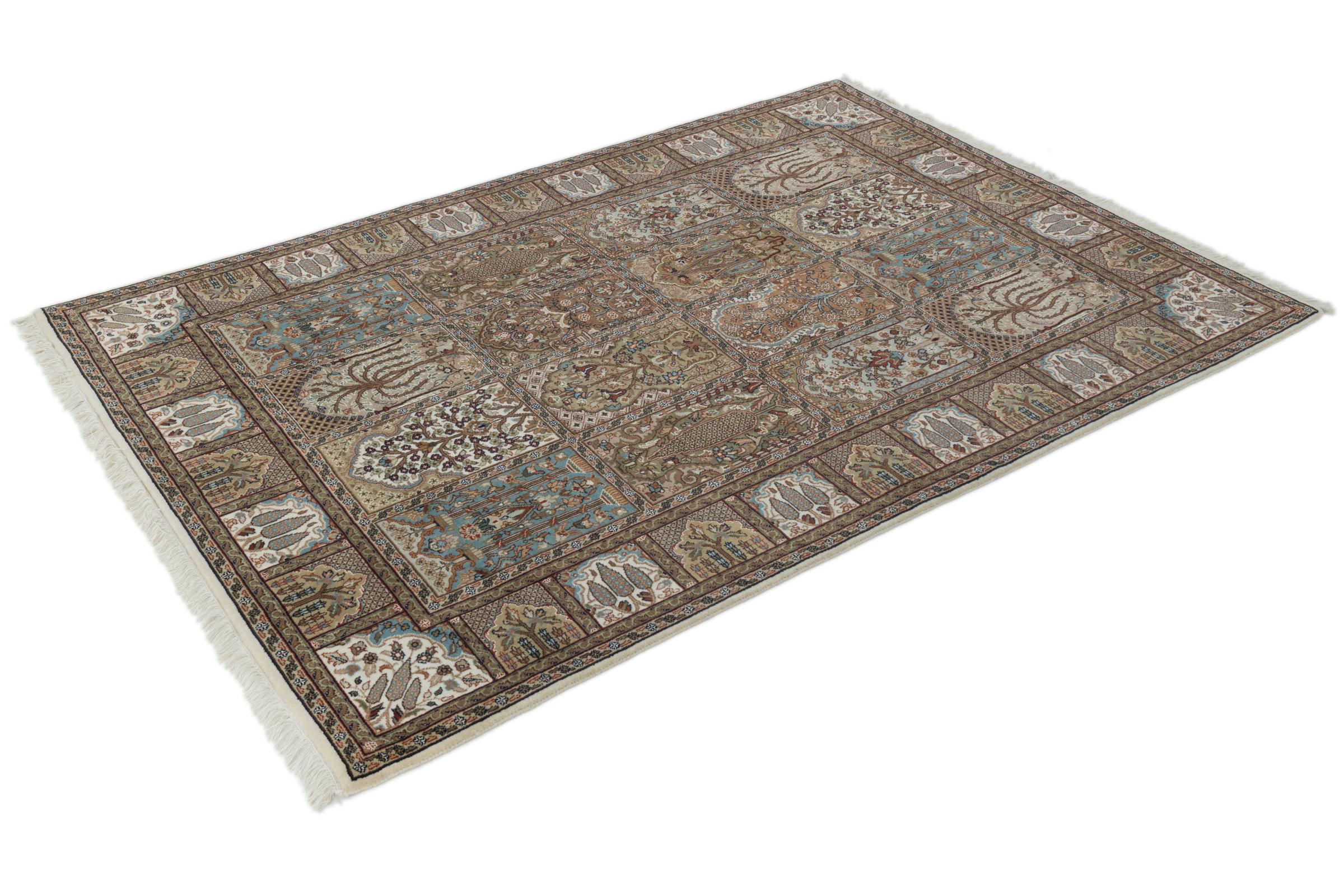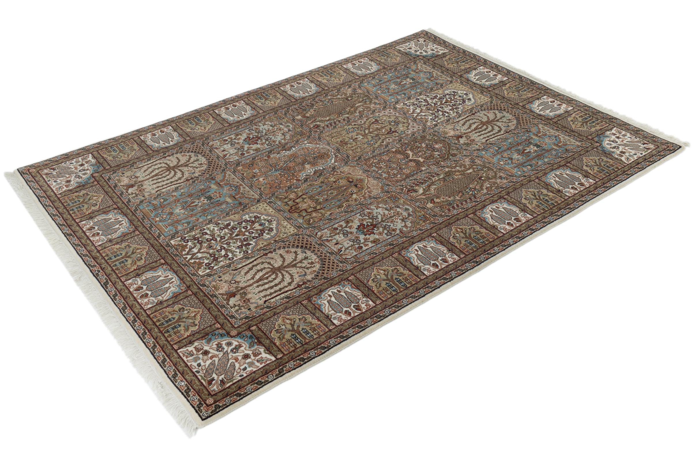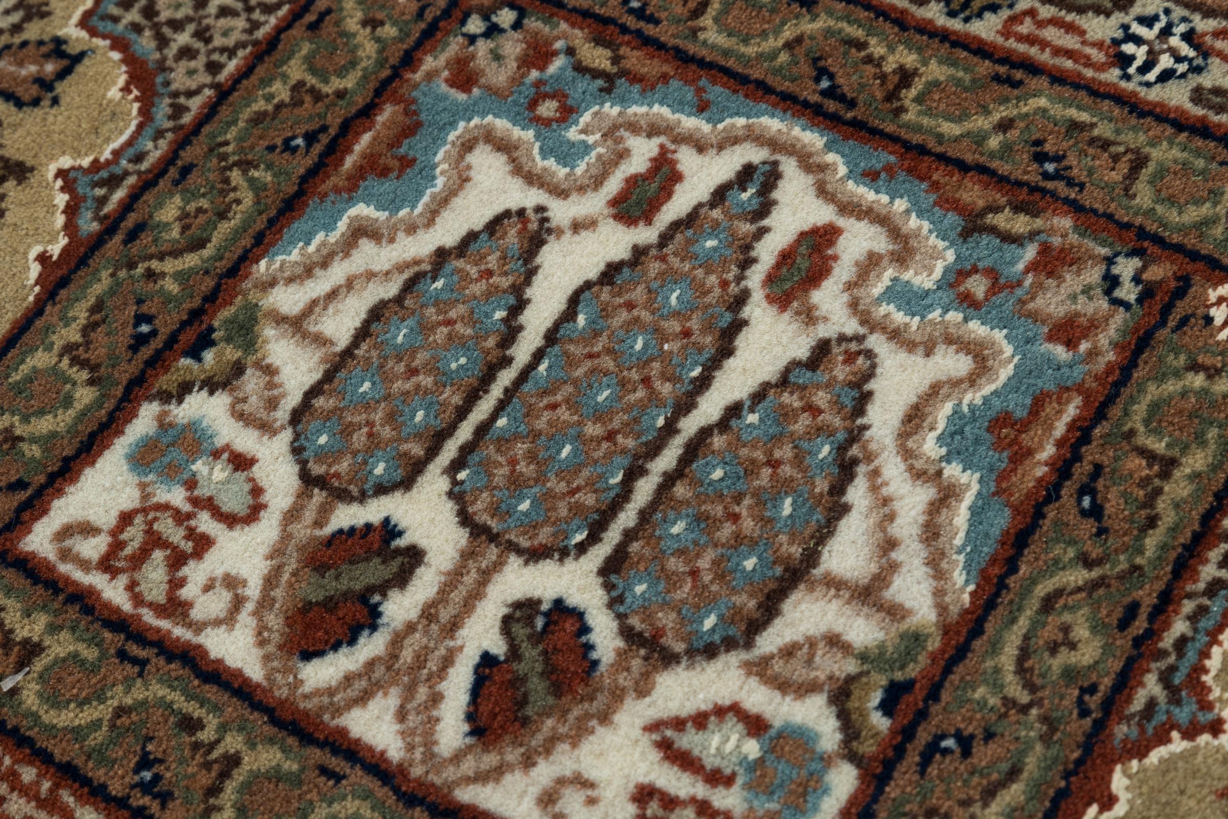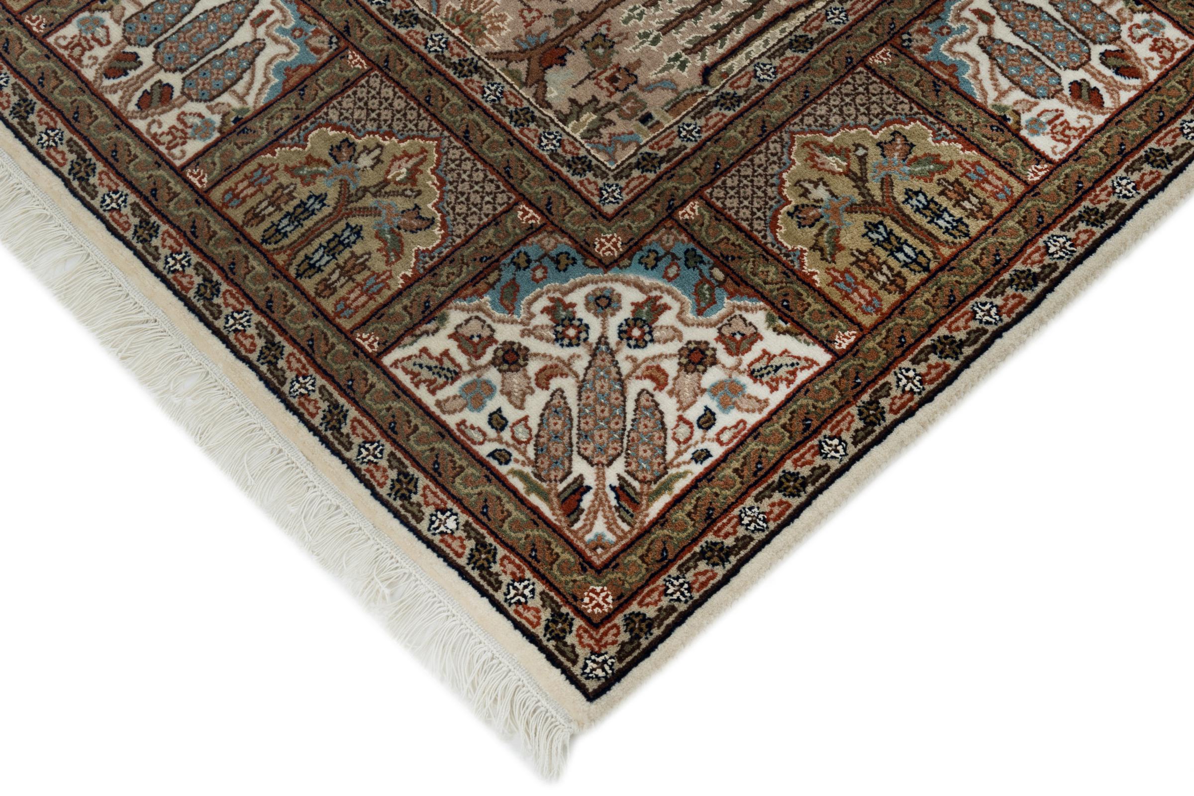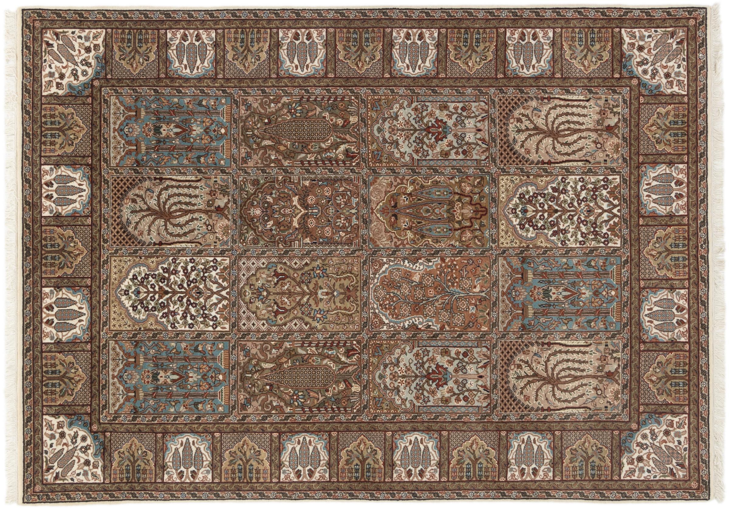 Teppenummer: 263066009904068 Størrelse: 206x144 cm Tykkelse: ca. 15 mm Knuter: 200 000 - 250 000 / m² Bearbeiding: Knyttet for hånd Søm: Håndspunnet Ull Kjede: Bomull Opprinnelse: India Alder: Nytt Vekt: ca. 15 kg Antall på lager: Unikt - Kun 1 stk i lager