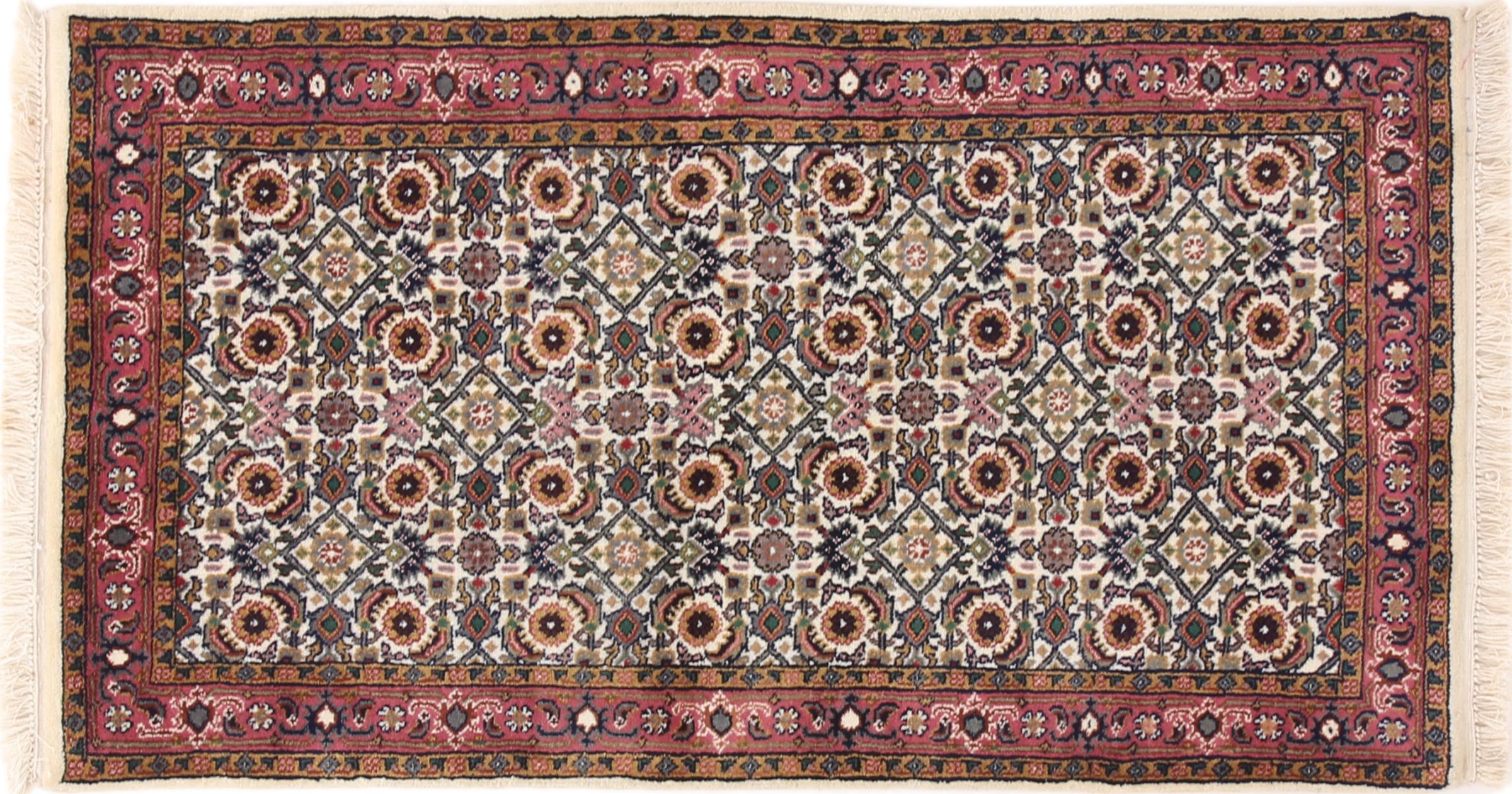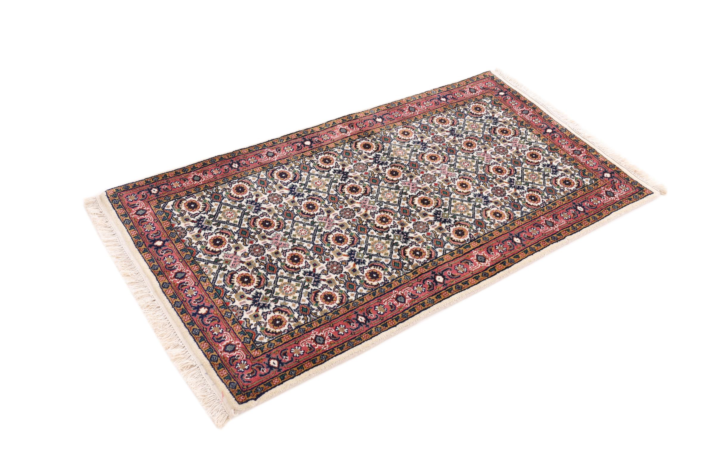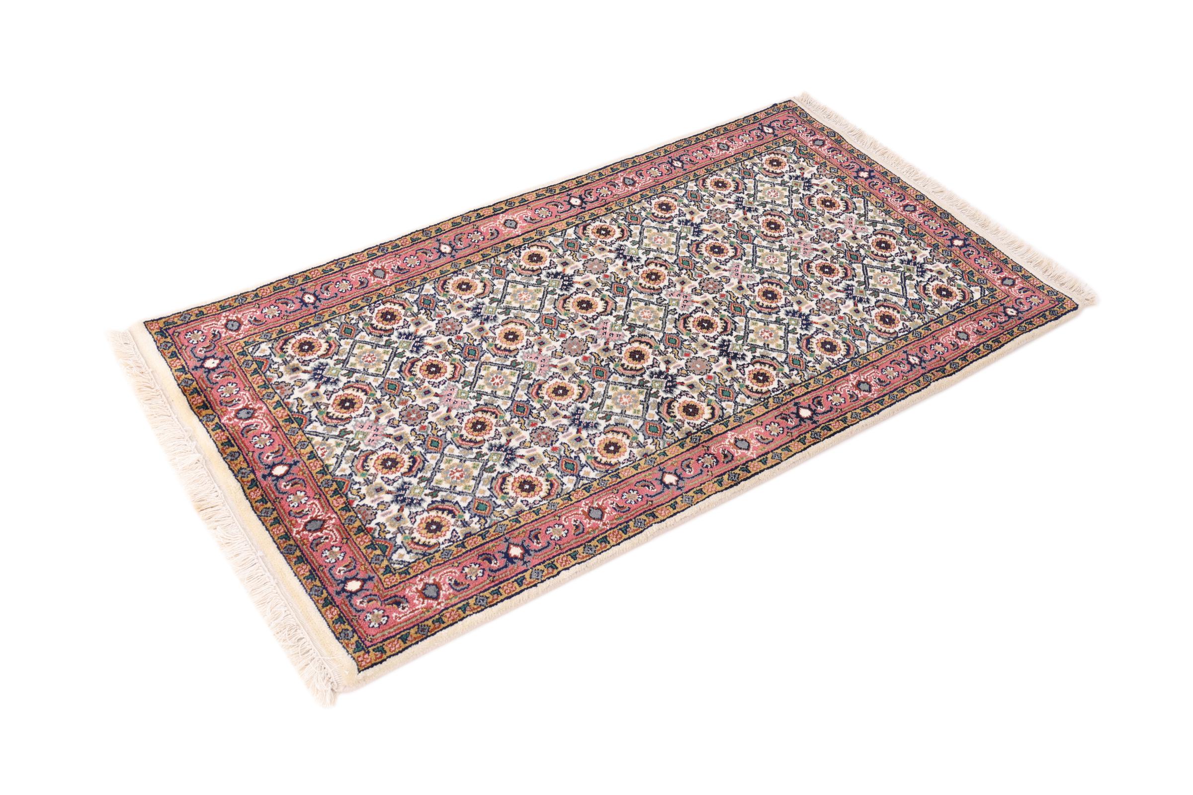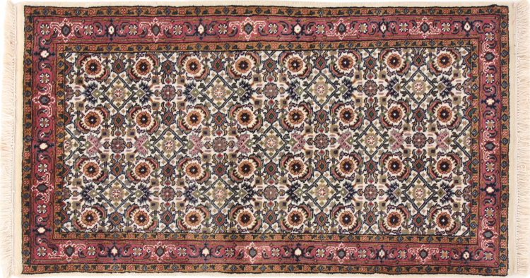 Teppenummer: 197897003487219 Størrelse: 138x73 cm Tykkelse: ca. 12 mm Knuter: 72 000 - 90 000 / m² Bearbeiding: Knyttet for hånd Søm: Håndspunnet Ull Kjede: Bomull Opprinnelse: India Alder: Nytt Vekt: ca. 4 kg Antall på lager: Unikt - Kun 1 stk i lager
