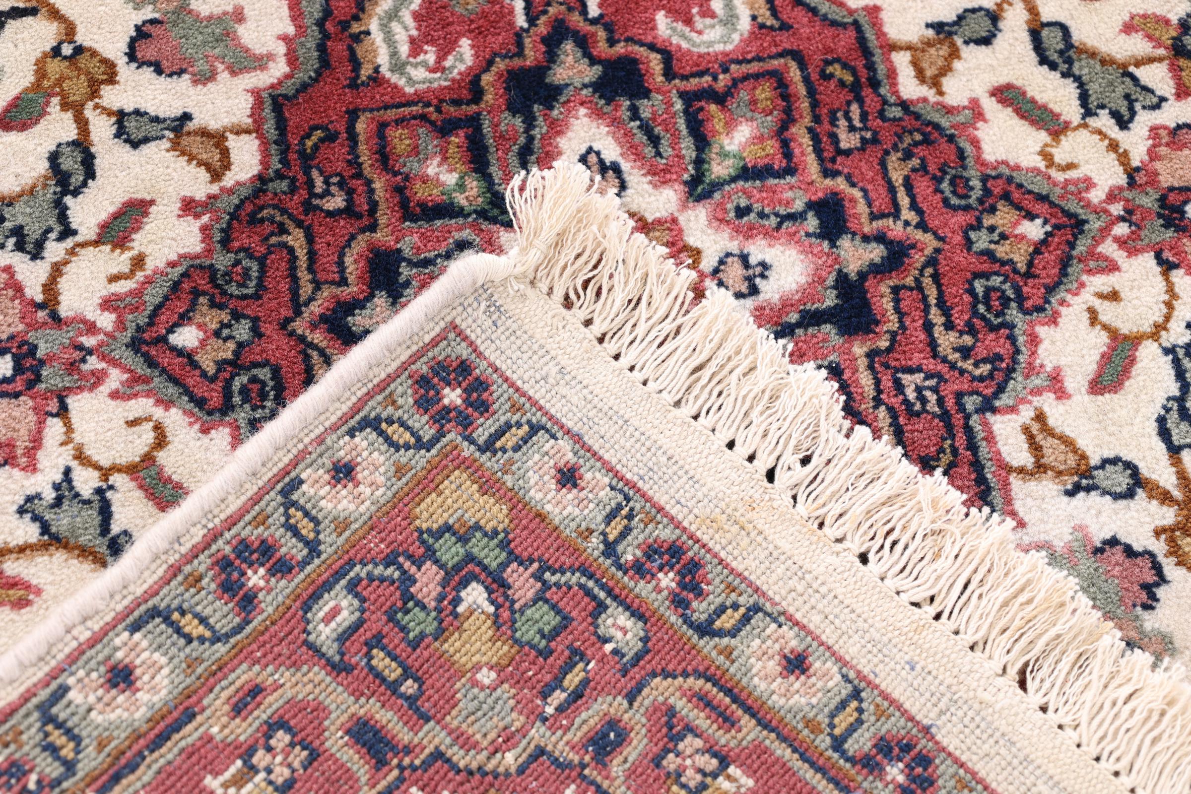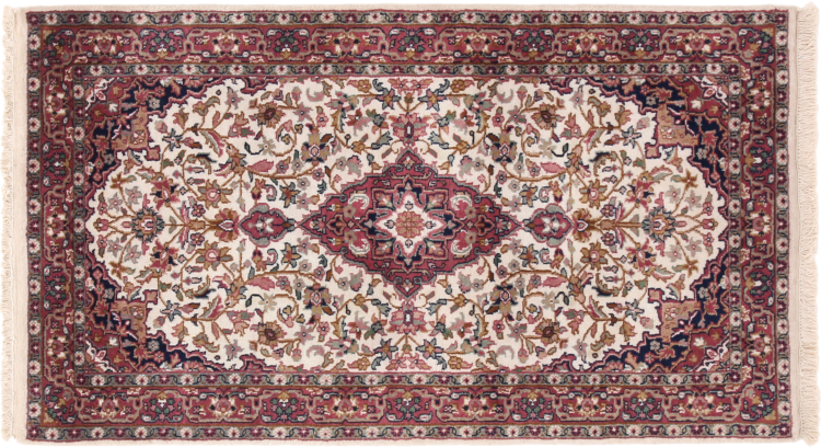 Teppenummer: 197885006486321 Størrelse: 161x89 cm Tykkelse: ca. 12 mm Knuter: 128 000 - 160 000 / m² Bearbeiding: Knyttet for hånd Søm: Håndspunnet Ull Kjede: Bomull Opprinnelse: India Alder: Nytt Vekt: ca. 5 kg Antall på lager: Unikt - Kun 1 stk i lager