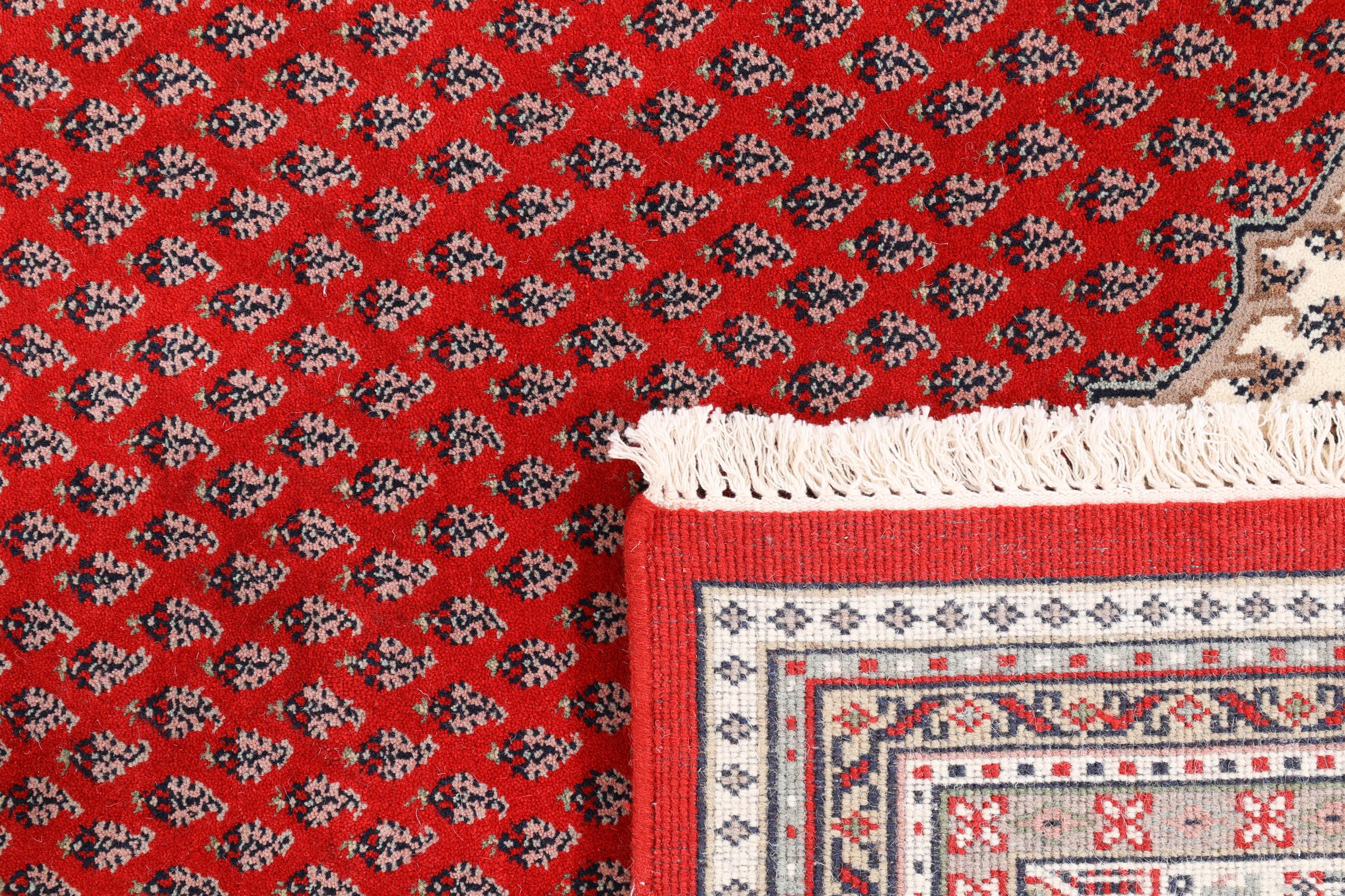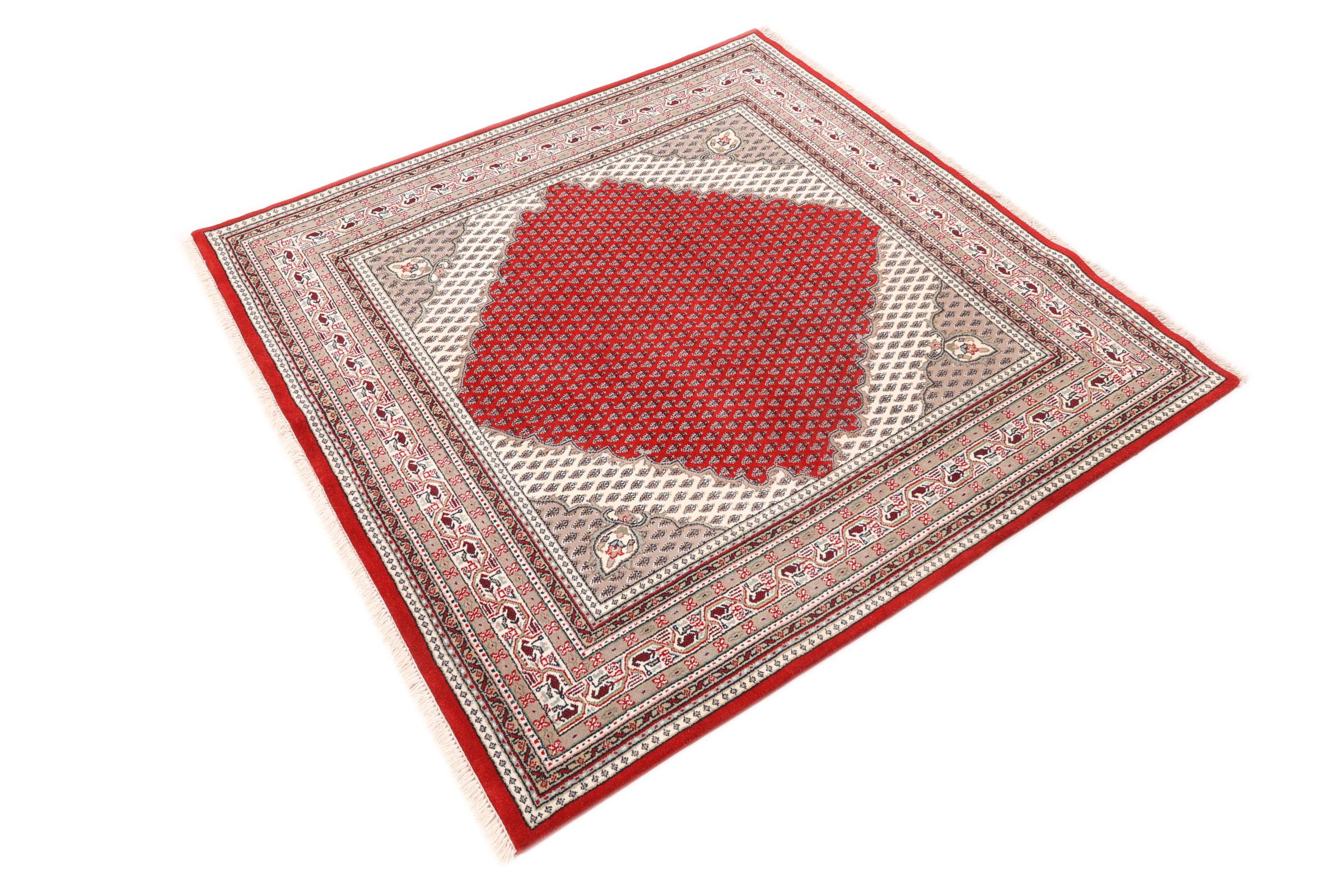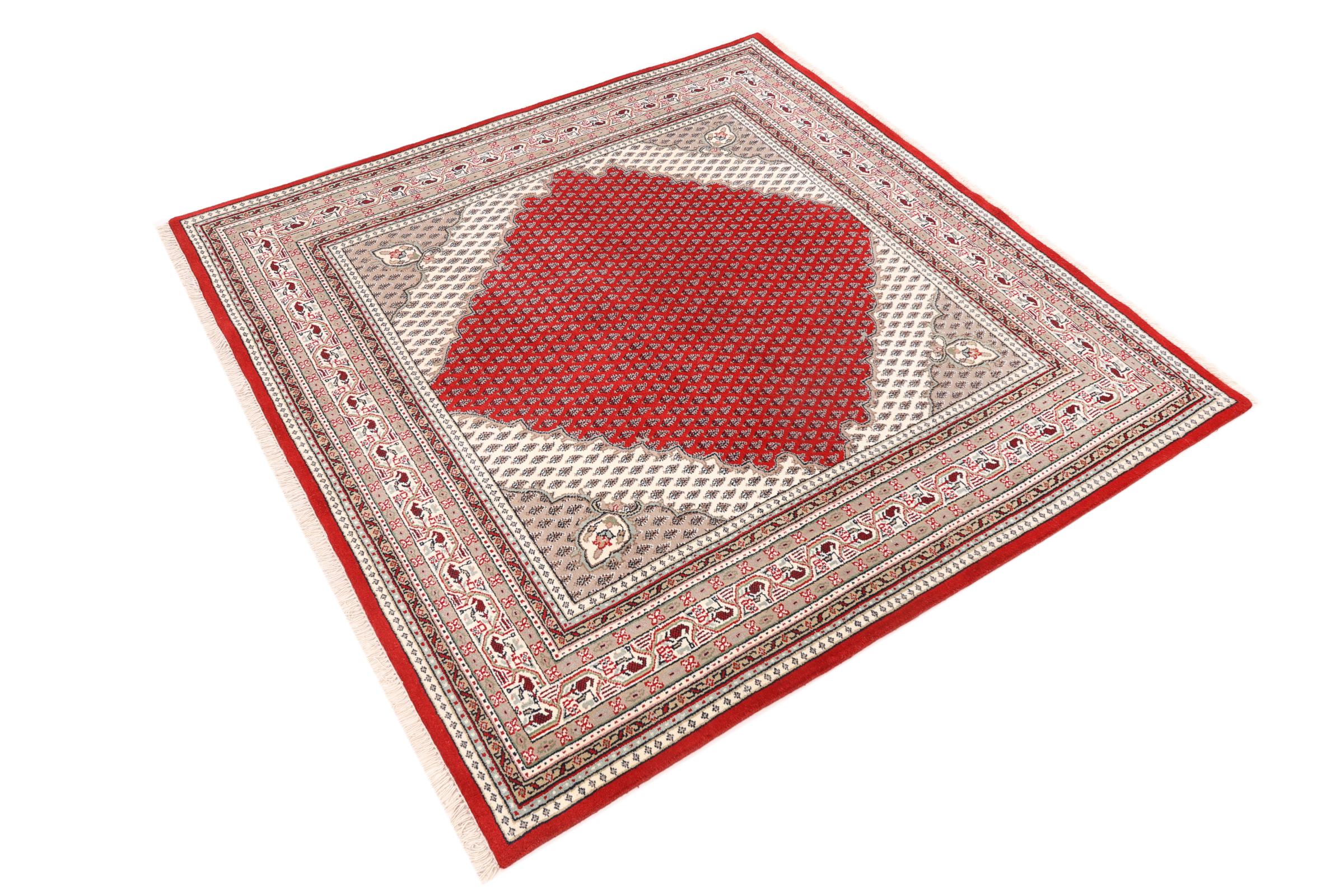 Dette Indo Sarough blir håndknyttet i India. Takket være produksjonsmåten er kvaliteten høy. Dette er et orientalsk teppe til uslåelig pris som er basert på de persiske Sarough teppene.