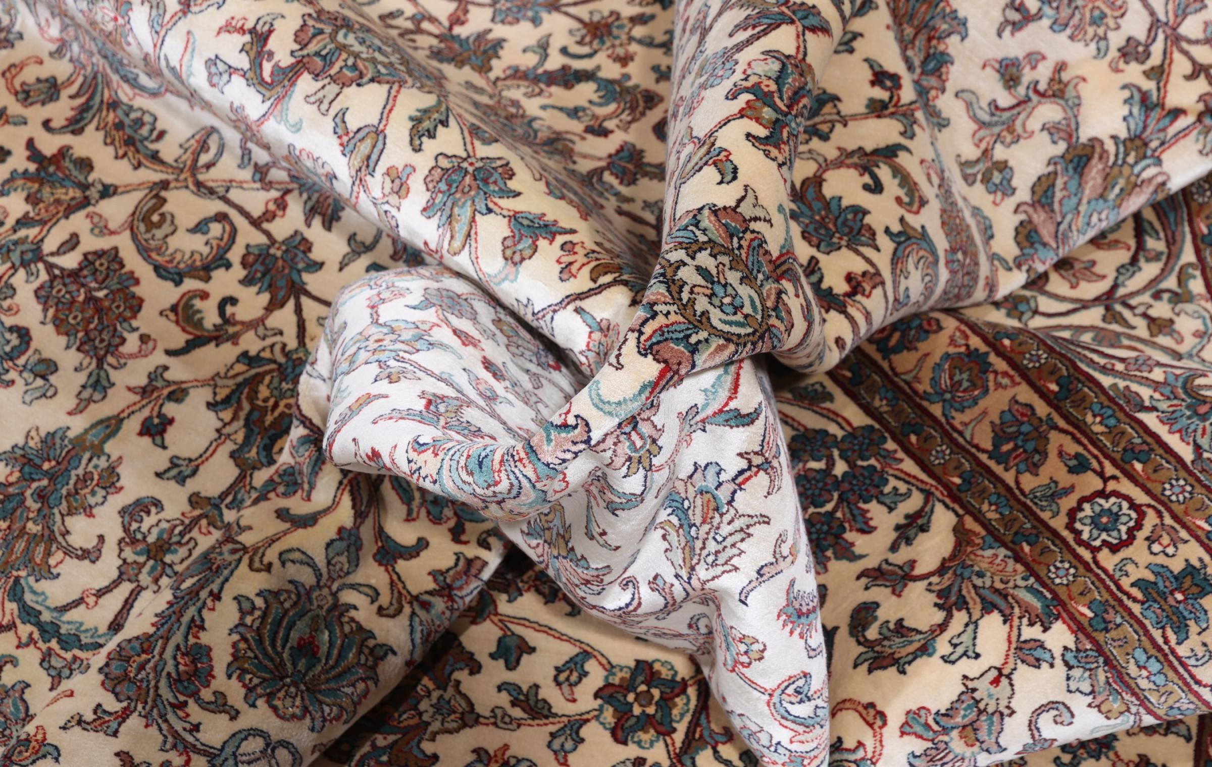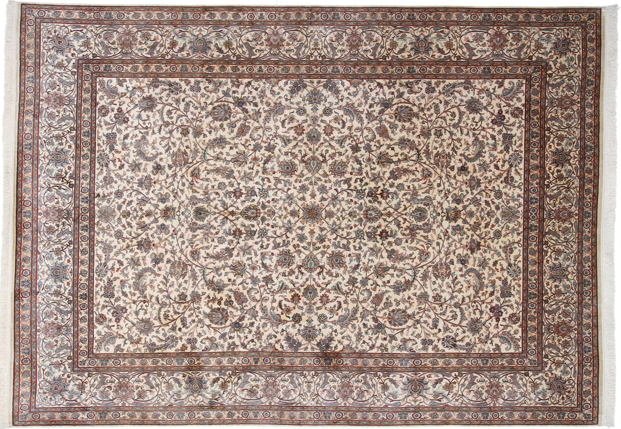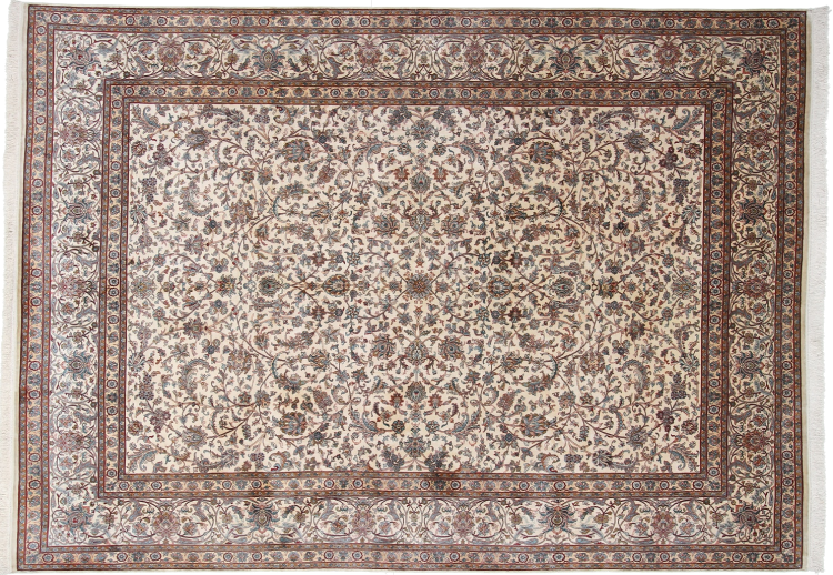 Dette håndknyttede silketeppet fra Kaschmir gjenspeiler ferdighetene til teppeknytteren. De beste matrialiene og flotteste mønstrene blir brukt til å lage et stykke indisk luksus til deg.