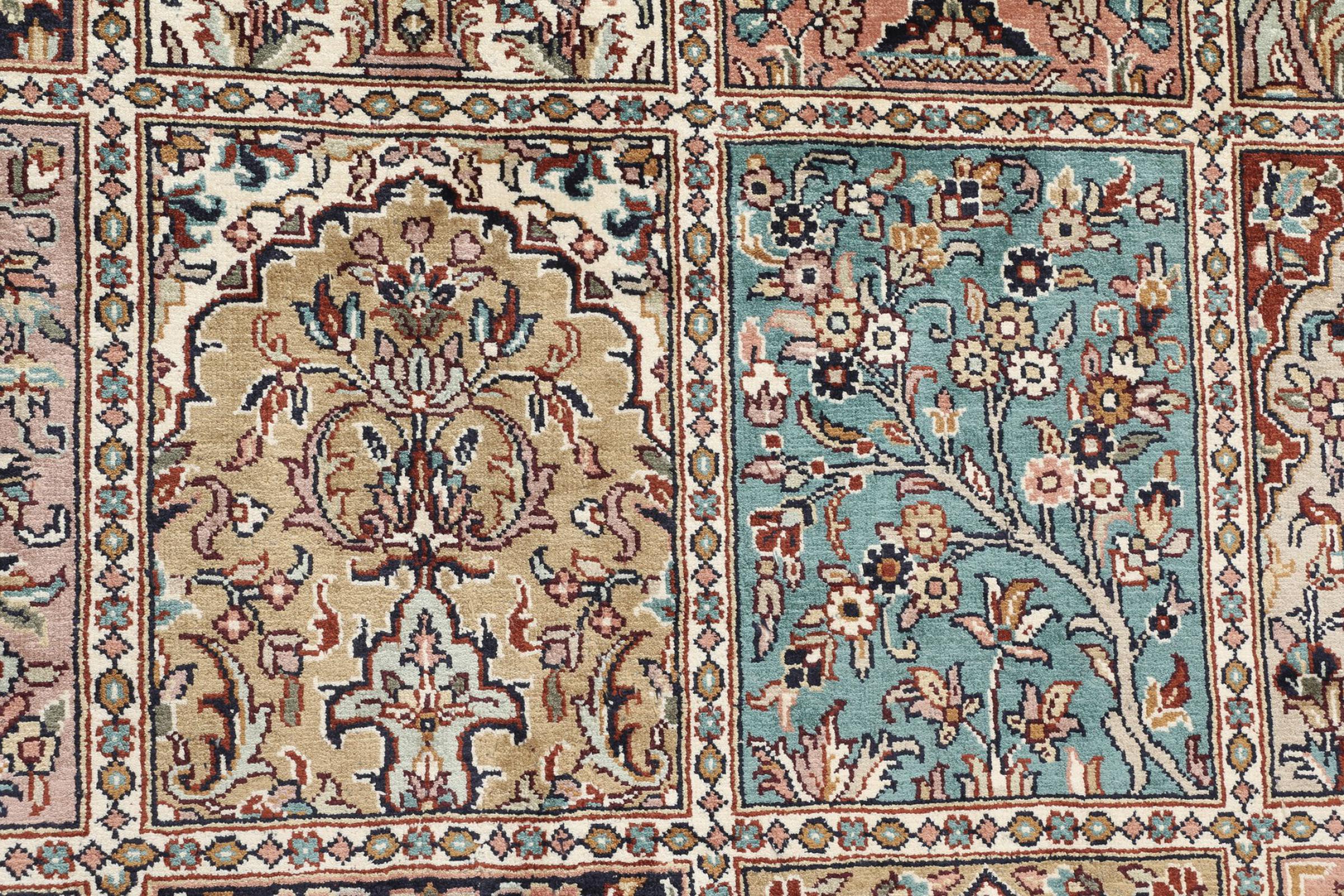 Teppenummer: 309282009145454 Størrelse: 209x151 cm Tykkelse: ca. 5 mm Knuter: 320 000 - 360 000 / m² Bearbeiding: Knyttet for hånd Søm: Silke Kjede: Bomull Opprinnelse: India Alder: Nytt Vekt: ca. 8 kg Antall på lager: Unikt - Kun 1 stk i lager