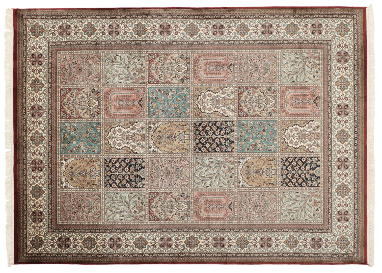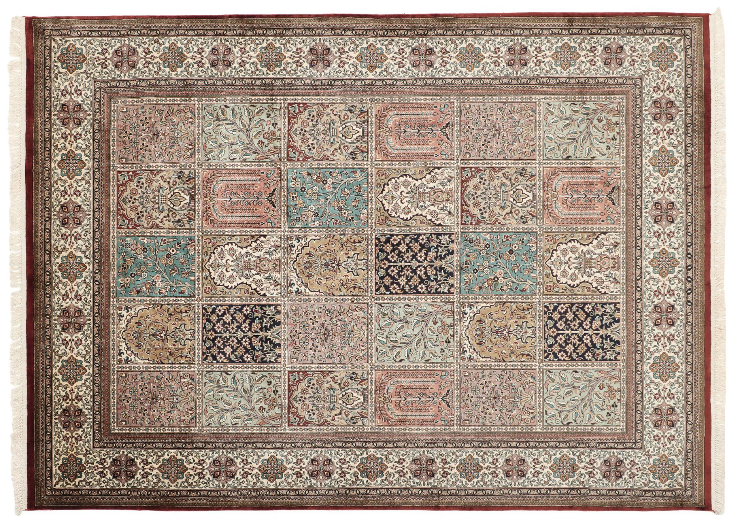 Dette håndknyttede silketeppet fra Kaschmir gjenspeiler ferdighetene til teppeknytteren. De beste matrialiene og flotteste mønstrene blir brukt til å lage et stykke indisk luksus til deg.