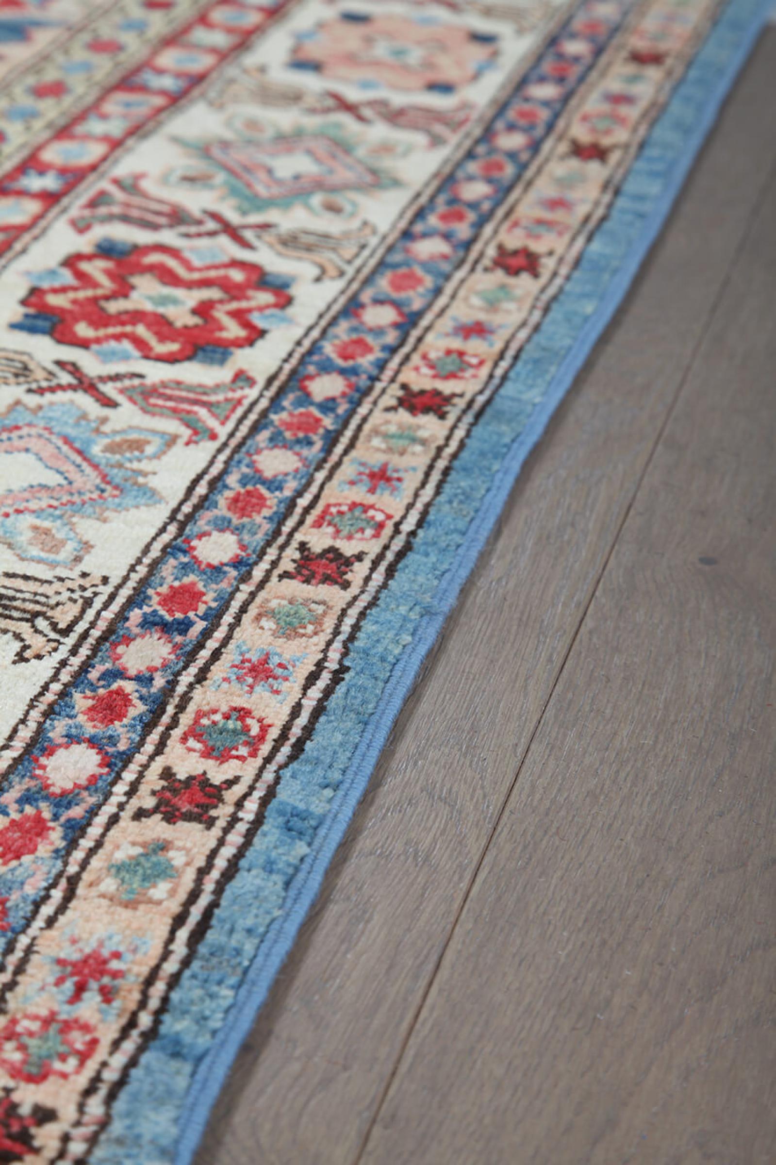Kazak tepper er slitesterke, levende ulltepper kjent for sine unike geometriske mønstre, balanserte farger og eksepsjonelt håndverk. De vil skape en fengslende og kulturelt rik atmosfære i rommet ditt. Opprinnelig fra Kaukasus og en av de eldste typene tepper, er de nå hovedsakelig laget av kasakhere i Afghanistan og Pakistan. Et antikt Kazak teppe kan være svært verdifullt for samlere.