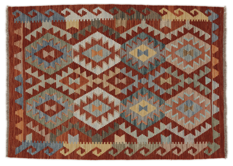 Disse kilim teppene har en avgjørende forskjell til håndknyttede tepper - de er vevd for hånd. De har ikke en høykvalitets haug med ull og er ofte flatere og grovere enn knuter ulltepper. Designet deres er mindre sammensatt, og derfor er de vanligvis mye billigere. En annen fordel er at kilim tepper er mye lettere og kan legges ut foran og bak. Håndvevd kilims kommer opprinnelig fra det tidligere Persia og produseres nå også mye i Afghanistan. De har ganske enkle, enkle mønstre, som skyldes veveteknikken deres.