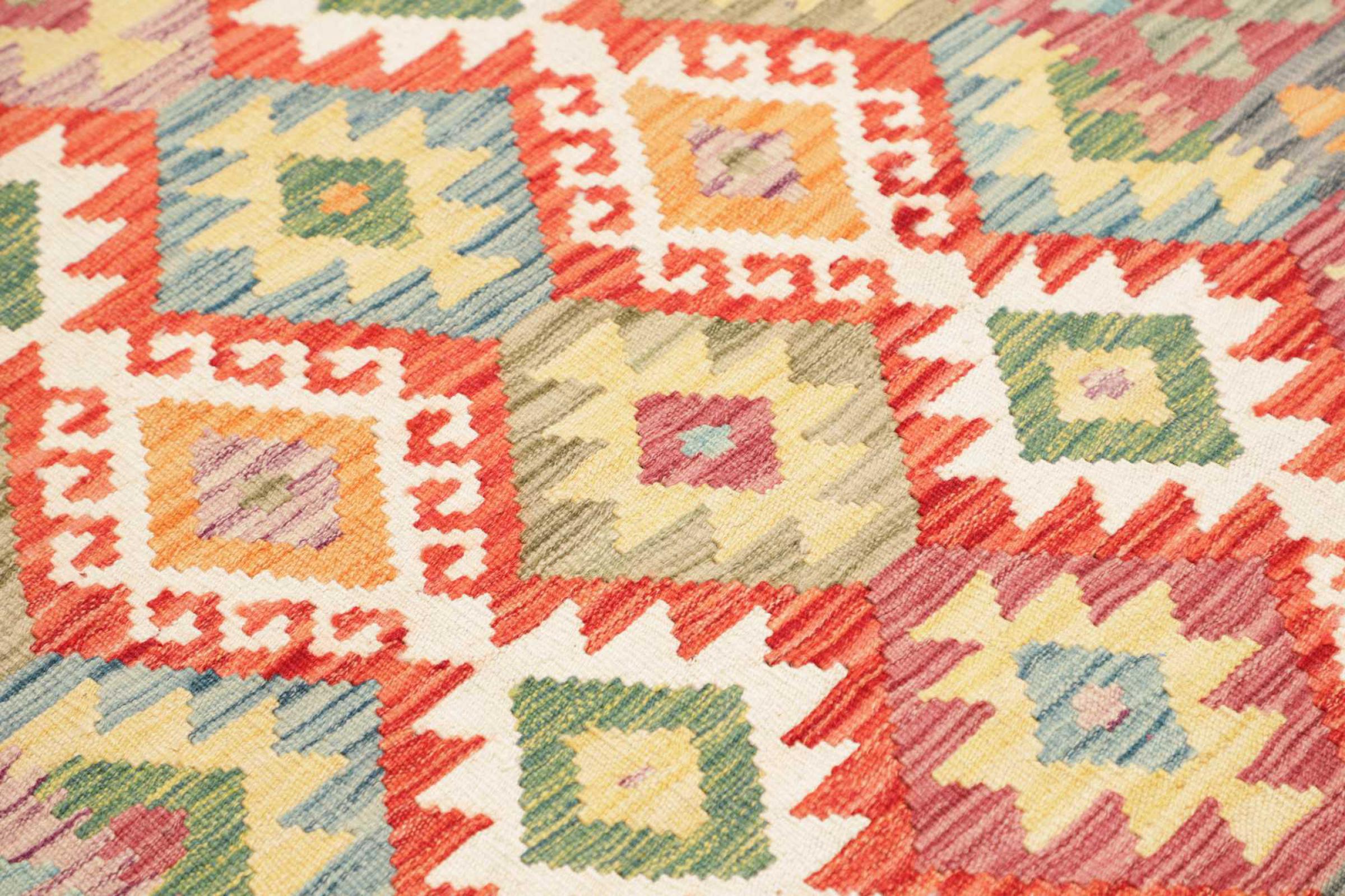 Disse kilim teppene har en avgjørende forskjell til håndknyttede tepper - de er vevd for hånd. De har ikke en høykvalitets haug med ull og er ofte flatere og grovere enn knuter ulltepper. Designet deres er mindre sammensatt, og derfor er de vanligvis mye billigere. En annen fordel er at kilim tepper er mye lettere og kan legges ut foran og bak. Håndvevd kilims kommer opprinnelig fra det tidligere Persia og produseres nå også mye i Afghanistan. De har ganske enkle, enkle mønstre, som skyldes veveteknikken deres.