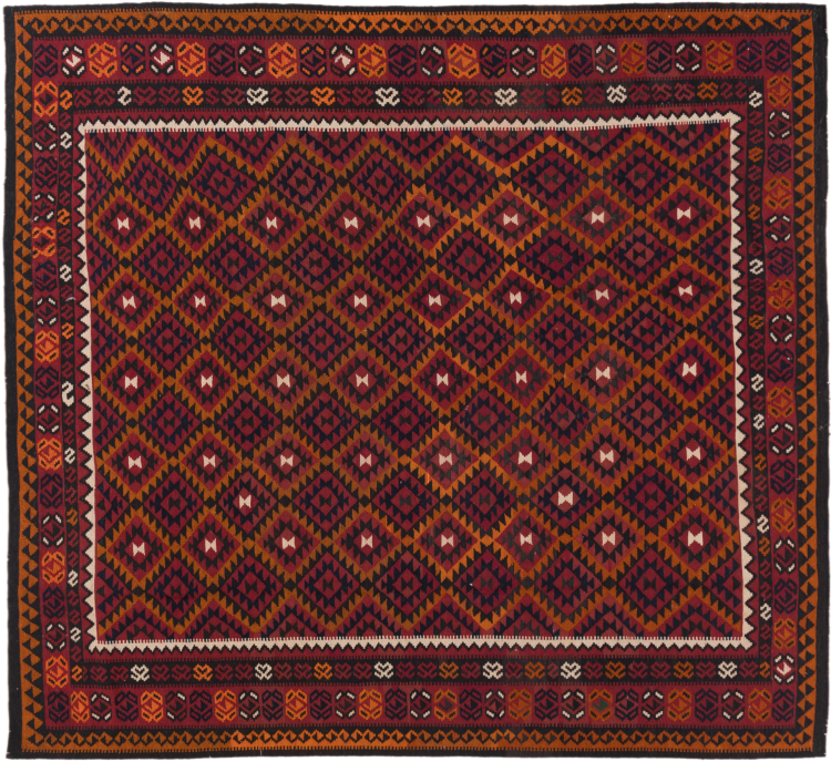 Teppenummer: 295006001619 Størrelse: 235x220 cm Tykkelse: ca. 3 mm Bearbeiding: Handwoven Søm: Håndspunnet Ull Kjede: Ull Opprinnelse: Afghanistan Alder: Gammelt/halv-antikt, eldre enn 50 år Vekt: ca. 8 kg Antall på lager: Unikt - Kun 1 stk i lager