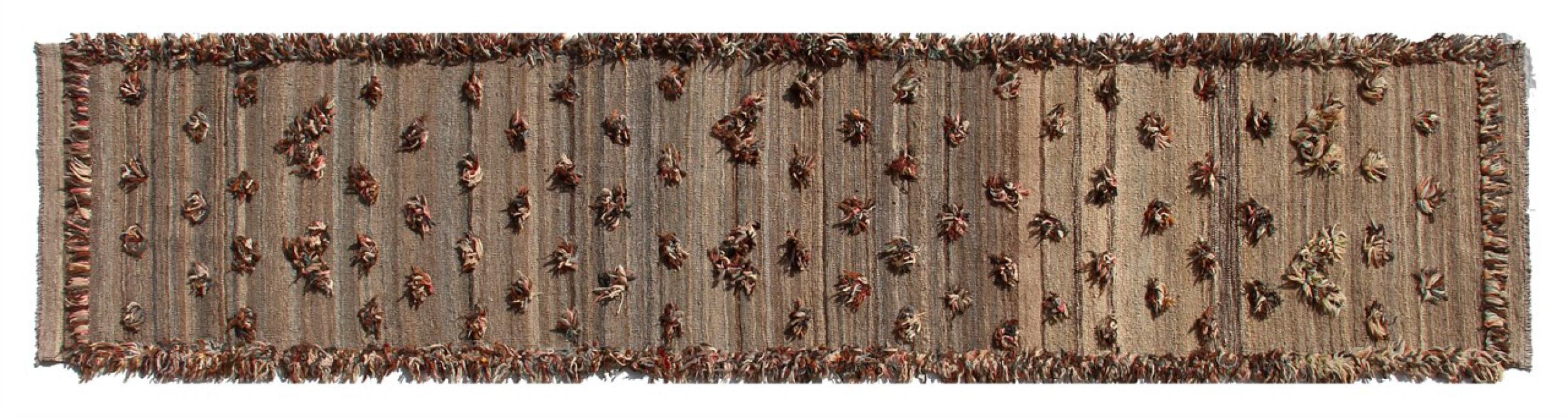 Dette teppet er laget for hånd på vevstolen som en flat veving. Flatweaves er tepper som ikke har haug. Som navnet antyder er disse teppene vevd og ikke knyttet. Dette resulterer i et flatt teppe med en strukturert overflate. Flatvev er ikke så myke og stort sett tynnere enn knyttede tepper. Samtidig er de betydelig mindre komplekse å produsere og kan vanligvis utformes fra begge sider (foran og bak). Mønstrene deres er vanligvis geometriske, noe som skyldes stoffet.