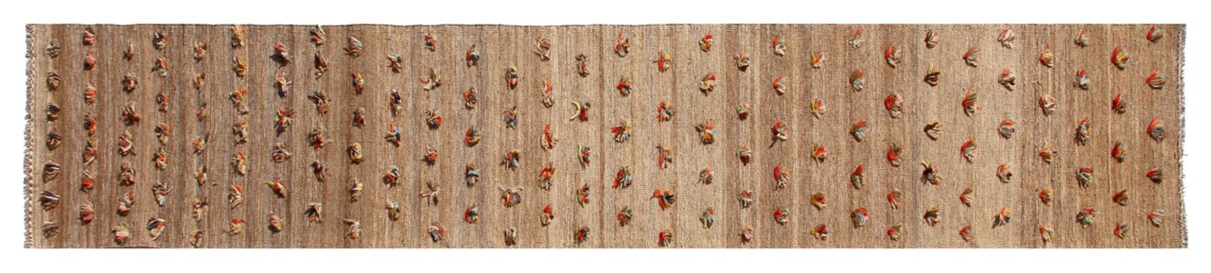 Dette teppet er laget for hånd på vevstolen som en flat veving. Flatweaves er tepper som ikke har haug. Som navnet antyder er disse teppene vevd og ikke knyttet. Dette resulterer i et flatt teppe med en strukturert overflate. Flatvev er ikke så myke og stort sett tynnere enn knyttede tepper. Samtidig er de betydelig mindre komplekse å produsere og kan vanligvis utformes fra begge sider (foran og bak). Mønstrene deres er vanligvis geometriske, noe som skyldes stoffet.