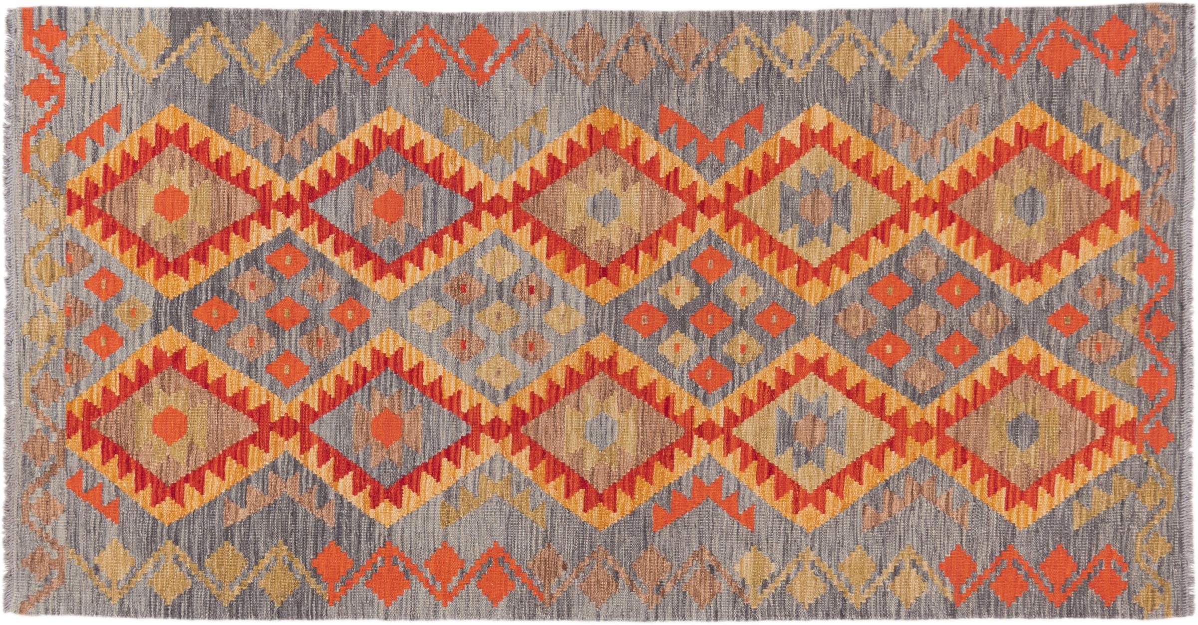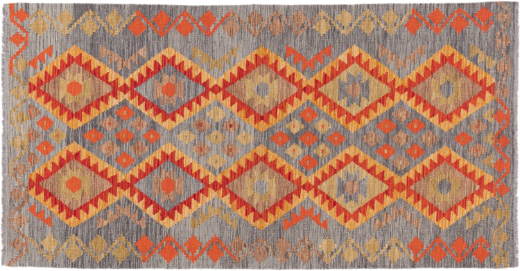 Teppenummer: 2949120048234 Størrelse: 200x104 cm Tykkelse: ca. 3 mm Bearbeiding: Handwoven Søm: Håndspunnet Ull Kjede: Ull Opprinnelse: Afghanistan Alder: Nytt Vekt: ca. 3 kg Også kjent som Kilim, Qilim, Chilim, Afgan, Afghán Antall på lager: Unikt - Kun 1 stk i lager