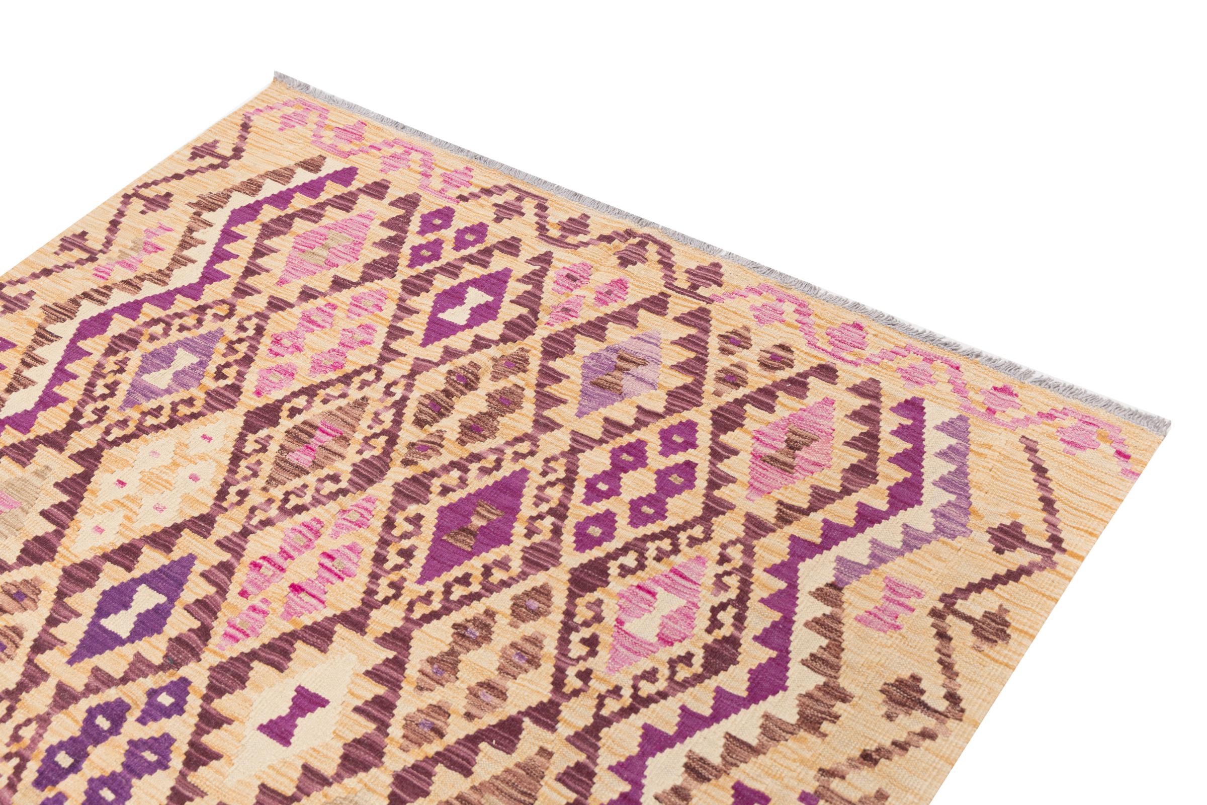 Dette kelim-teppet er veldig spesielt fordi det ikke bare er vevd for hånd, men ullen er også spunnet for hånd. Kilim Heritage-kolleksjonen tilbyr et høyst moderne design i pastellfarger og i kombinasjon med det mest tradisjonelle kunsthåndverket fra Orienten. Stor verdi og helt rimelig. Du vil ikke finne et unikt stykke som dette igjen.