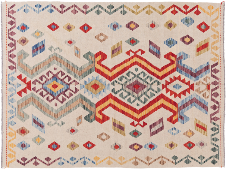 Teppenummer: 2942950046599 Størrelse: 205x153 cm Tykkelse: ca. 3 mm Bearbeiding: Handwoven Søm: Håndspunnet Ull Kjede: Ull Opprinnelse: Afghanistan Alder: Nytt Vekt: ca. 5 kg Også kjent som Kilim, Qilim, Chilim, Afgan, Afghán Antall på lager: Unikt - Kun 1 stk i lager