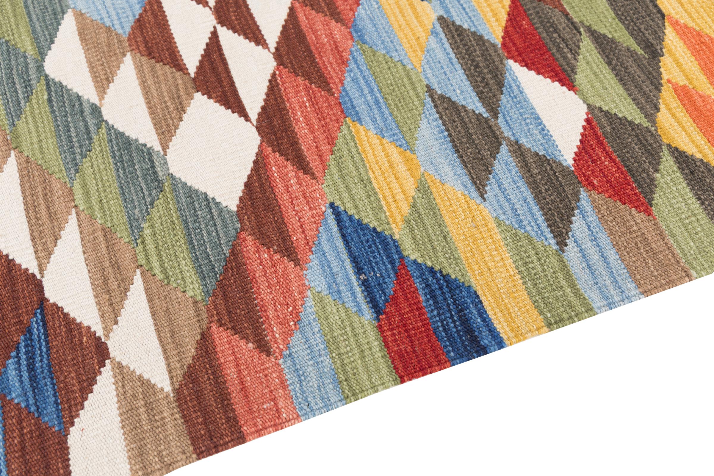 Dette kelim-teppet er veldig spesielt fordi det ikke bare er vevd for hånd, men ullen er også spunnet for hånd. Kilim Heritage-kolleksjonen tilbyr et høyst moderne design i pastellfarger og i kombinasjon med det mest tradisjonelle kunsthåndverket fra Orienten. Stor verdi og helt rimelig. Du vil ikke finne et unikt stykke som dette igjen.