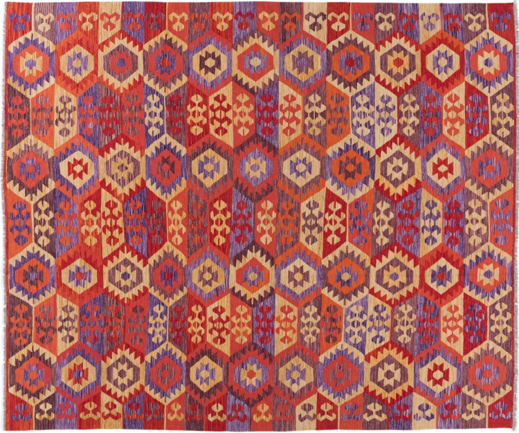 Teppenummer: 2950400047503 Størrelse: 306x252 cm Tykkelse: ca. 3 mm Bearbeiding: Handwoven Søm: Håndspunnet Ull Kjede: Ull Opprinnelse: Afghanistan Alder: Nytt Vekt: ca. 12 kg Også kjent som Kilim, Qilim, Chilim, Afgan, Afghán Antall på lager: Unikt - Kun 1 stk i lager